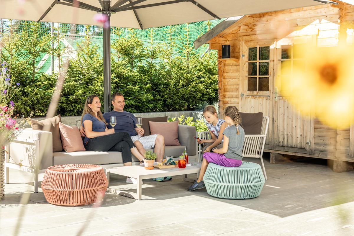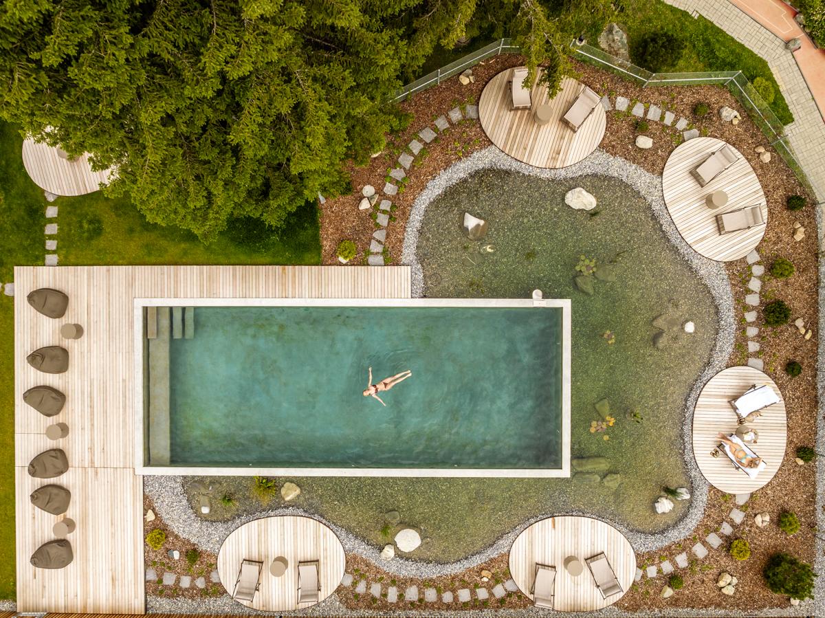 Im Gartenbereich befinden sich eine Minigolfanlage, ein Tennisplatz, ein beheizter aussen Bio-Pool und eine Pool Lounge, während sich die kleinen Gäste auf dem Spielplatz vergnügen können.