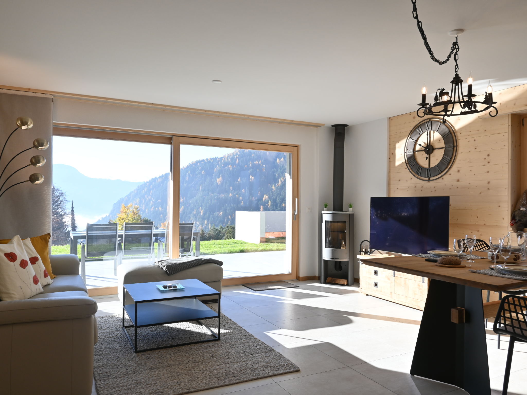 "Clos de Morthey A R 01", apt 3 pièces 82 m2, au rez-de-chaussée, situation sud. Spacieux, aménagement très agréable et moderne: séjour/salle à manger avec 1 divan-lit (140 cm, longueur 200 cm), poêle suédois et TV (câblée). Sortie sur la terrasse, orientée sud. 1 chambre avec 1 lit double (160 cm, longueur 200 cm). 1 chambre avec 1 lit double (160 cm, longueur 200 cm). Coin cuisine (4 plaques vitrocéramiques, grille-pain, bouilloire électrique, micro-ondes, cafetière électrique, Capsules pour machine à café (Nespresso) (NON INCLUSES), appareil à raclette, service à fondue (fondue chinoise, fondue au fromage)). Bain/WC, douche/WC. Grande terrasse 36 m2, situation sud, pelouse. Meubles de terrasse, barbecue, chaises longues. Vue sur les montagnes. A disposition: sèche-cheveux. Internet (Connexion WIFI, gratuit). Place de parking No R 01 (1 Voiture), garage No R 01 (1 Voiture). Veuillez noter: logement non-fumeur.