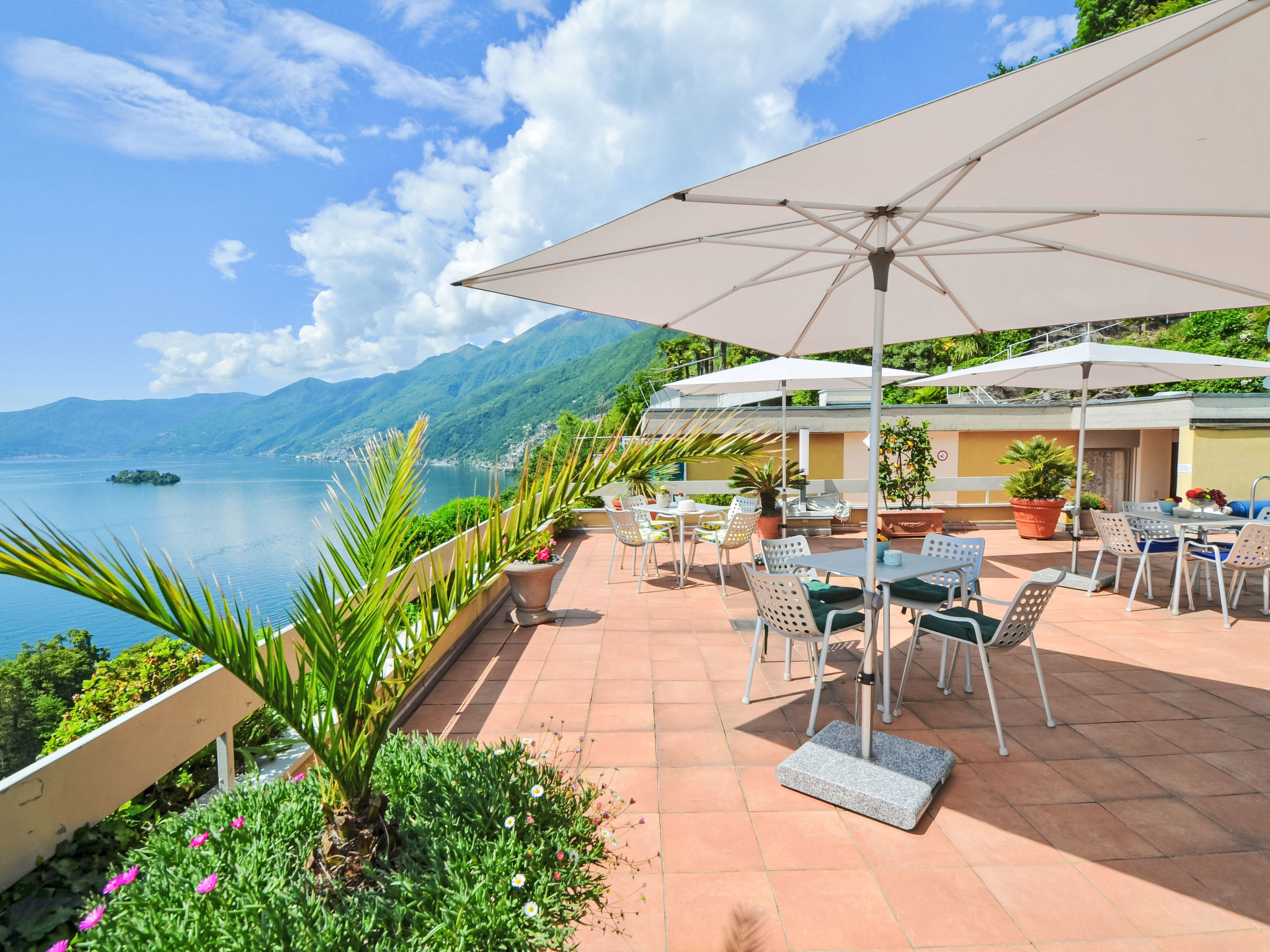 Moscia - Ascona: Belle résidence "Sollevante". En bordure de la localité, à 2.5 km du centre d'Ascona, situation tranquille, ensoleillée, surélevée sur un versant, orientée sud-est. En commun: piscine (7 x 5 m, profondeur 190 cm, disponibilité saisonnière: 01.Mai. - 30.Sep.). Douche extérieure, terrasse. Infrastructures de la Maison: Connexion WIFI, réduit pour bicyclettes, chauffage central. Accès en voiture jusqu'à la maison. Magasin d'alimentation 2.5 km, restaurant 200 m, arrêt de bus "Ascona Moscia Linie 316" 400 m, gare ferroviaire "Locarno SBB" 6 km. Terrain de golf 4 km, chemins de randonnées pédestres depuis la maison 5 m. Attractions à proximité: Madonana del Sasso, Orselina, Locarno-Ascona, Ronco sopra Ascona, Falconeria, Kamelienpark, Piazza Grande. Région de randonnées: Cardada, Monte Bré, Monti di Ronco, Vallemaggia - Valle Verzasca. Veuillez noter: animaux dans le voisinage. Maison avec terrasse avec magnifique vue panoramique sur le Lago Maggiore. Un téléphérique relie les différents niveaux. Parking à proximité (réservation lors de l'arrivée). Nouveau: CHF 10.00/jour Réduction "seniors" de 10% (non cumulable avec d´autres promotions).