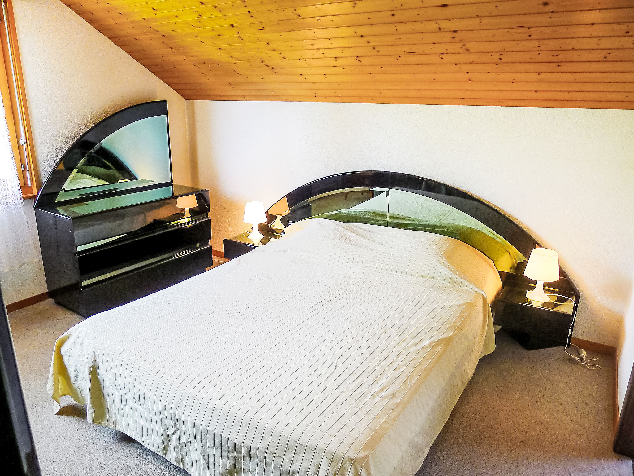 "Grenat 35", apt 3 pièces 70 m2 au 3ème étage, situation sud. Aménagement fonctionnel: séjour/salle à manger avec TV (câblée). Sortie sur le balcon. 1 chambre avec 1 grand-lit et bain/bidet/WC. 1 chambre avec 3 lits. Petite cuisine ouverte (3 plaques de cuisson, four, lave-vaisselle, grille-pain, bouilloire électrique, cafetière électrique, appareil à raclette, service à fondue (fondue au fromage)). Douche/WC. Balcon. Meubles de terrasse. Vue partielle sur les montagnes et les alentours. A disposition: sèche-cheveux. Internet (Connexion WIFI, gratuit). Garage No 35. Veuillez noter: logement non-fumeur. Maximum 1 animal/ chien autorisé.