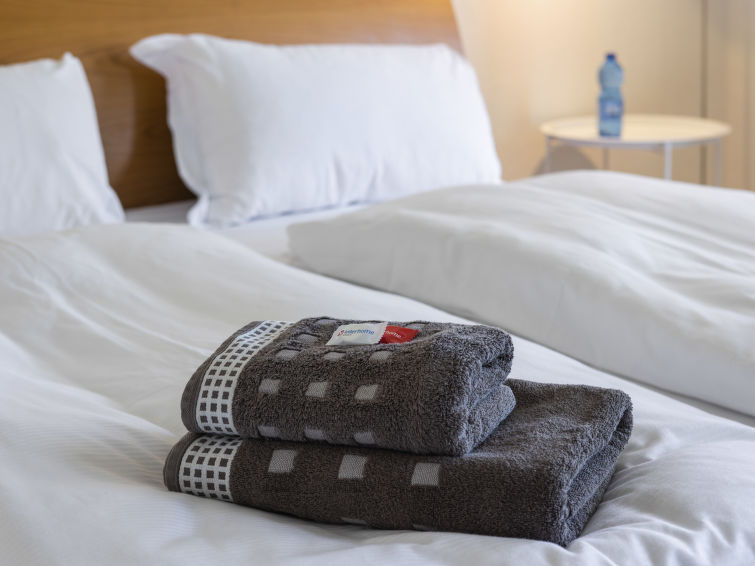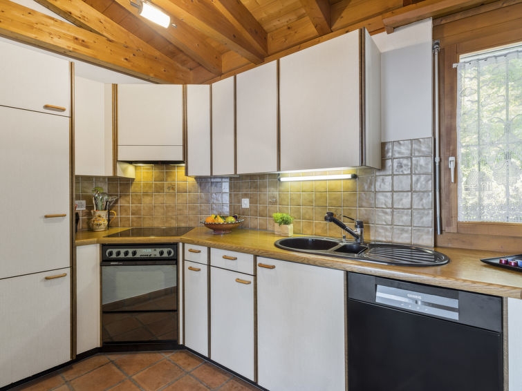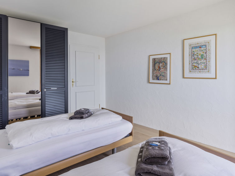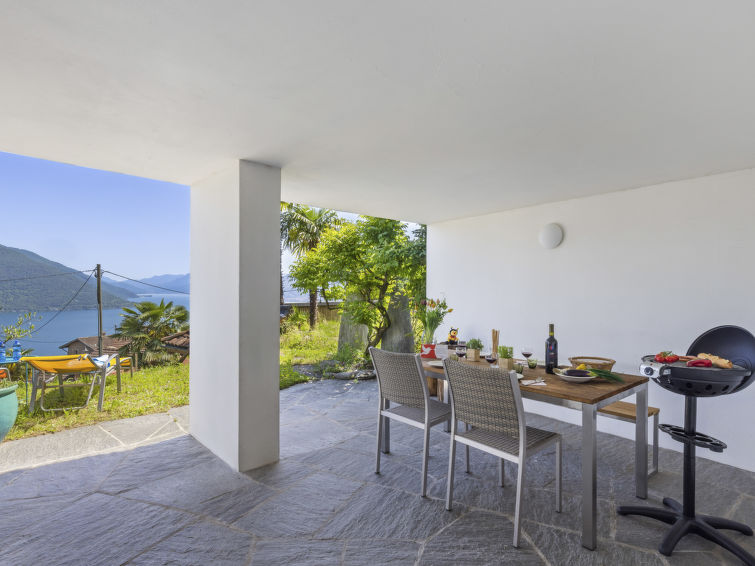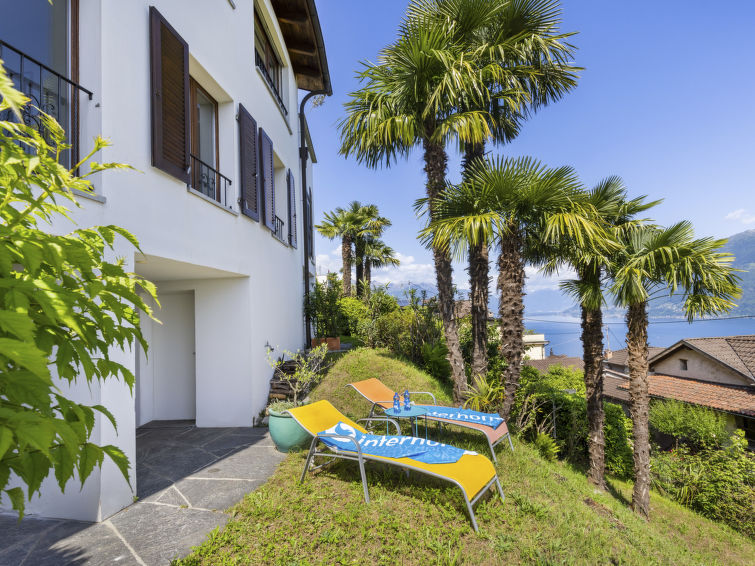 "Porta", maison mitoyenne 3 pièces 80 m2 sur 3 niveaux. Logement idéal pour 4 adultes. Spacieux et clair, aménagement agréable et de bon goût: séjour/salle à manger ouvert avec véranda, porte coulissante avec Télévision numérique et écran plat. Grande cuisine (four, lave-vaisselle, 4 plaques vitrocéramiques, grille-pain, bouilloire électrique, cafetière électrique, Capsules pour machine à café (Nespresso) (NON INCLUSES)). À l'étage inférieur: (escalier en colimaçon) 1 chambre double avec 1 lit double (2 x 90 cm, longueur 200 cm). (escalier en colimaçon) 1 chambre avec 2 lits (90 cm, longueur 200 cm). Bain/douche, WC séparé, double vasque. Chauffage. Sol en parquet, sol en pierres naturelles. Balcon 8 m2, situation sud et situation ouest, grand jardinet 25 m2, situation sud et situation ouest. Mobilier de balcon, barbecue électrique. Très belle vue panoramique sur le lac et les montagnes. A disposition: lave-linge. Internet (Connexion WIFI). Place de parking No AG-211506, largeur 212 cm. Veuillez noter: maison non-fumeur. Entrée privée, sans ascenseur. NL-00006428