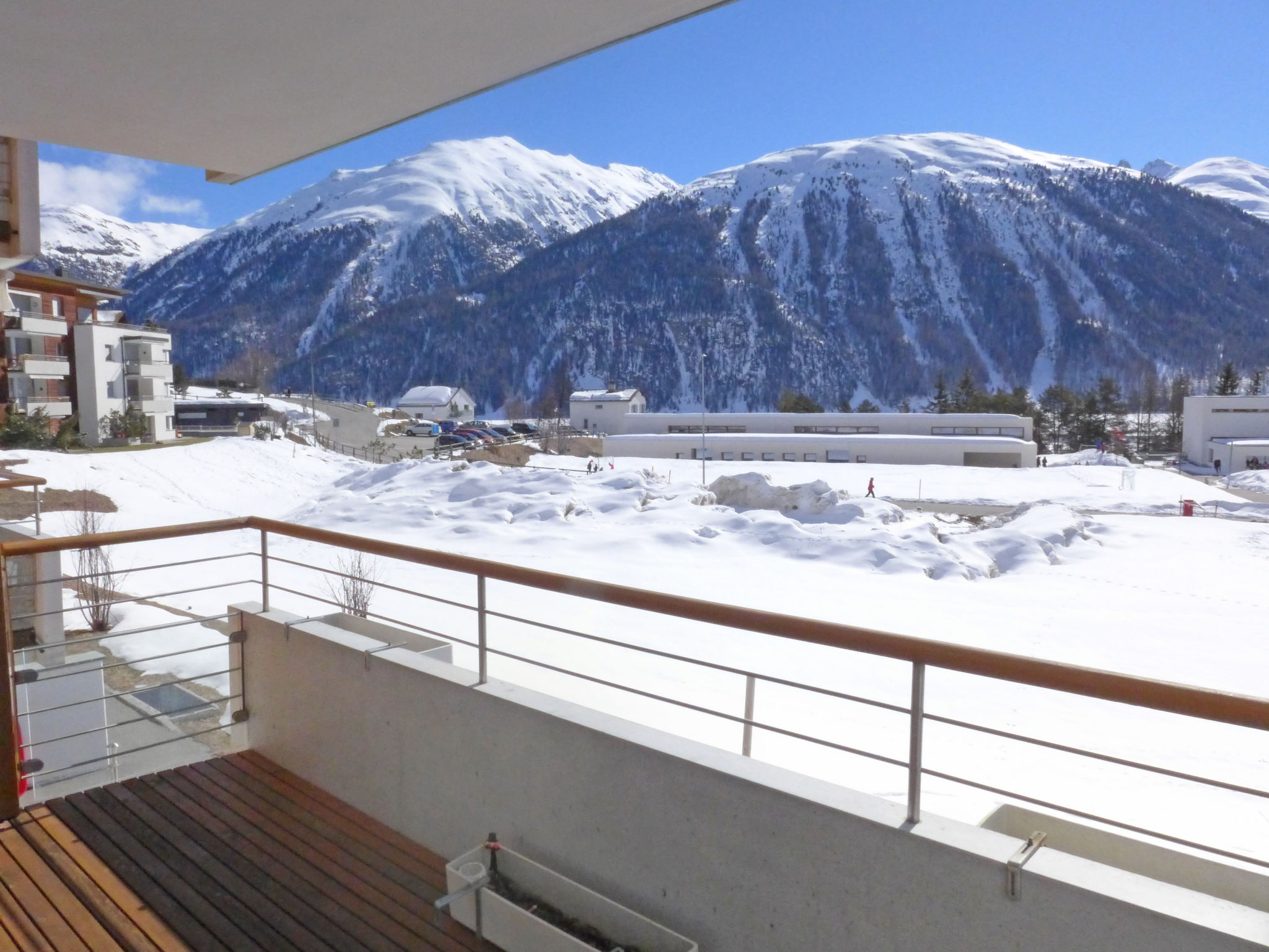 Samedan à 8 km de St. Moritz: Immeuble moderne, confortable "Chesa Sur Puoz", de 3 étages. Dans le quartier de Sur Puoz, situation ensoleillée sur un versant, dans un quartier résidentiel, à 7.5 km du lac. Infrastructures de la Maison: ascenseur, réduit pour bicyclettes, local pour les skis, chauffage central, lave-linge, sèche-linge (en commun, en sus), étendoir à linge. En hiver, merci de prévoir des chaînes, en hiver 4x4 recommandé. Garage en commun près de la maison. Magasins 650 m, supermarché 900 m, restaurant 600 m, boulangerie 800 m, café 650 m, location de bicyclettes 3.5 km, arrêt de bus "Samedan, Chesa Planta" 600 m, gare ferroviaire "Samedan" 800 m, piscine couverte 7 km, centre thermal "Mineralbad & Spa Samedan" 650 m, lac St. Moritzer See 7.5 km. Terrain de golf (18 trous) 1.4 km, ecole de surf 13 km, tennis 1.5 km, tennis couvert 8.7 km, golf miniature 7 km, centre équestre 6.3 km, chemins de randonnées pédestres depuis la maison 500 m, piste cyclable 1 km, téléphérique 3.8 km, téléski 850 m, location de ski 750 m. École de ski 3.8 km, école de ski d'enfants 3.8 km, piste de luge 3.6 km, ski de fond 1.4 km, patinoire 1.5 km, jeux pour enfants 800 m. Attractions à proximité: Chesa Planta in Samedan 650 m, Segantini Museum in St. Moritz 9.5 km, Nietzsche Haus in Sils-Maria 17 km, Olympic Bob Run St. Moritz 5.6 km, Kirche St. Maria in Pontresina 7.6 km. Les domaines skiables de renommée sont facilement accessibles: Corviglia - Piz Nair 3.8 km, Corvatsch - Furtschellas 14 km, Diavolezza - Lagalb 18 km. Les lacs connus sont facilement accessibles: St. Moritzer See 7.5 km, Silvaplana See 13 km, Silser See 17 km. Région de randonnées: Corviglia - Piz Nair, Muottas Muragl, Val Bever & Val Rosegg. Veuillez noter: Déchargement et chargement des bagages à la location de vacances.
