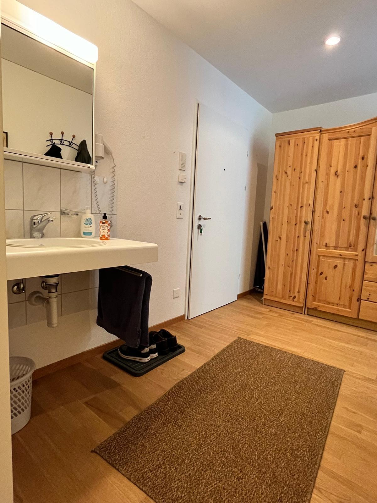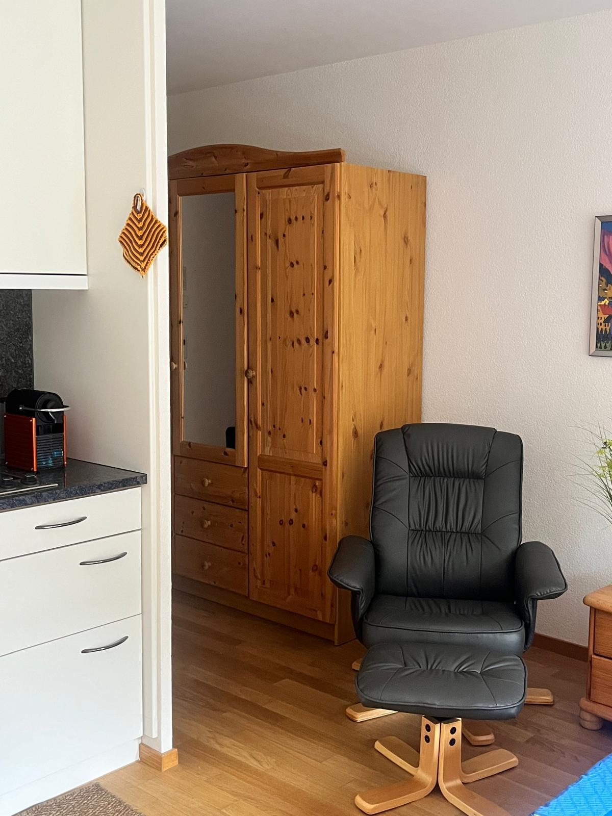 Studio (ca. 32qm) au 1er étage dans maison de plusieurs appartements; garage; balcon vers le lac; usage en commun du local pour les skis et de la machine á laver (aprés arrangement); coin-cuisine avec réfrigérateur, micro-ondes; salon avec un lit double de milieu; douche/toilette; serviettes éponges, duvet nordique, télévision, WiFi, 1 sac á ordures (bleu). Animaux domestiques ne sont pas permis. Nettoyage intermédiaire payant possible!