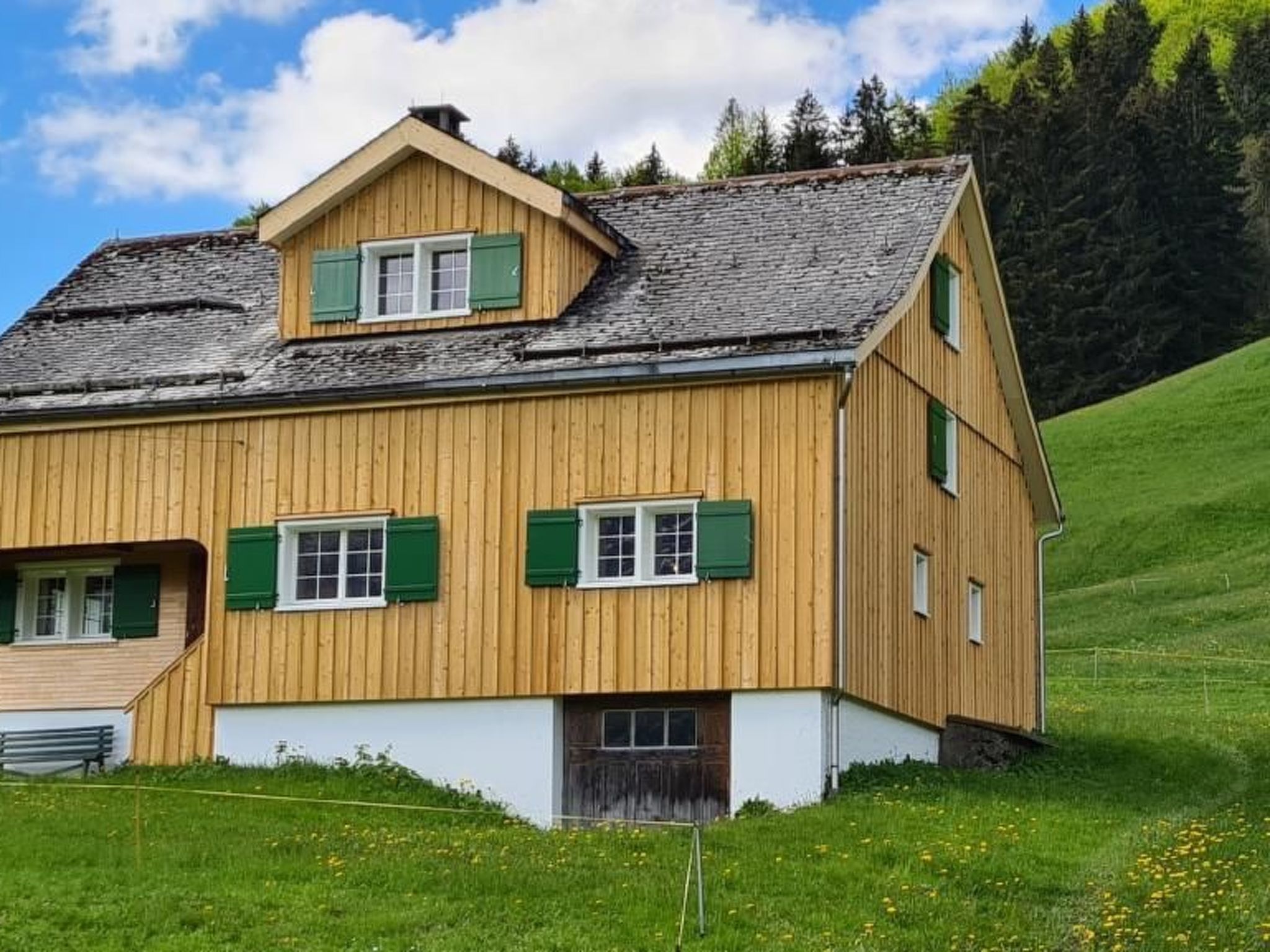 The detached holiday home is located in the middle of nature above Nesslau with a wonderful view of the Churfirsten and Toggenburg. Perfect for relaxing and enjoying with family and friends.