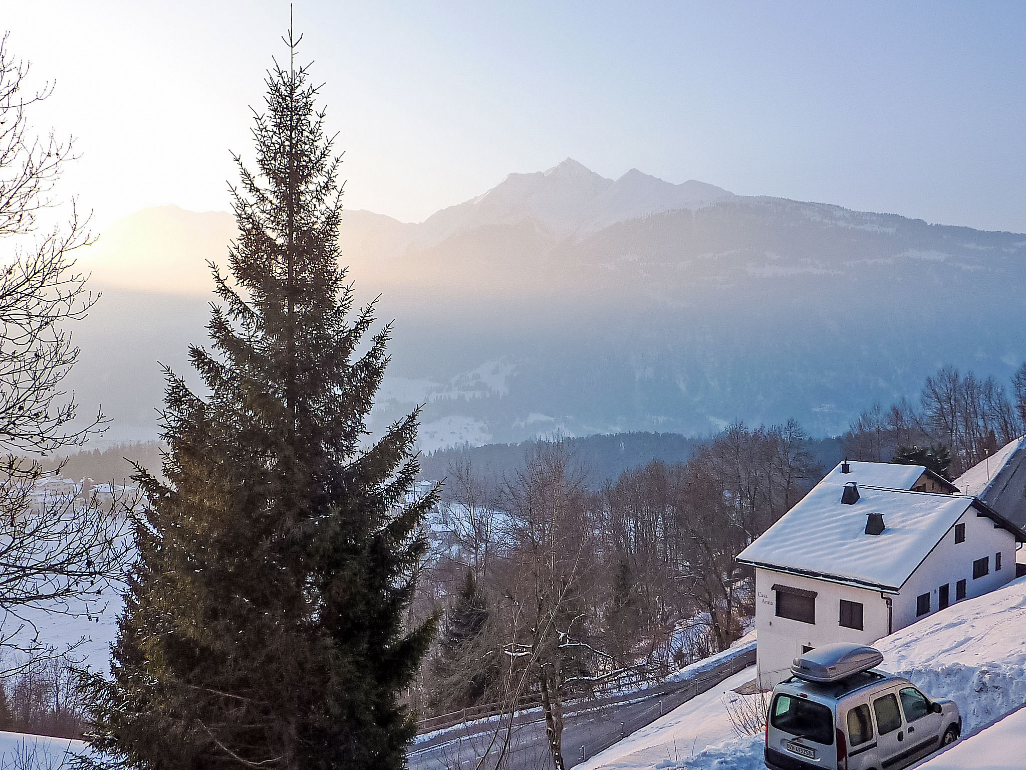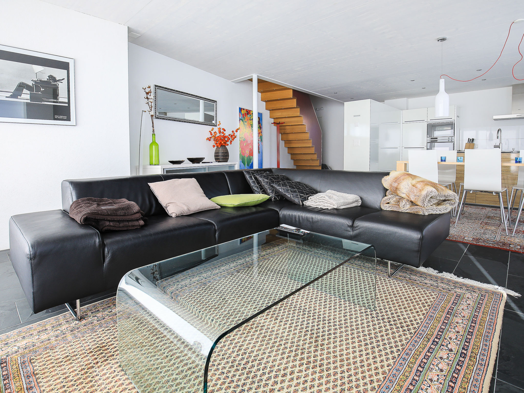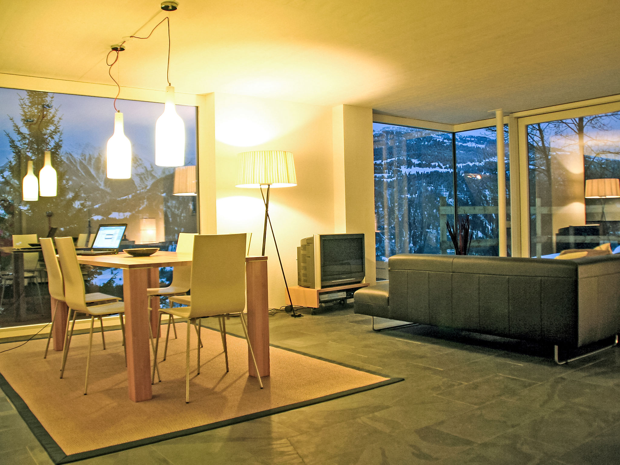 Appartement sur 2 niveaux 4 pièces 115 m2 sur 2 niveaux, à l'étage supérieur. Aménagement confortable et moderne: séjour/salle à manger avec TV (câblée) et écran plat. Sortie sur le jardinet. Cuisine ouverte (four, lave-vaisselle, 4 plaques vitrocéramiques, congélateur). À l'étage supérieur: 1 chambre avec 1 lit double et douche/WC. 1 chambre avec 1 lit double. 1 chambre avec 1 lit. Bain/WC. Chauffage par le sol. Jardinet couvert. Meubles de terrasse, barbecue. Belle vue sur les montagnes, la vallée et la localité. A disposition: Internet (Connexion WIFI, gratuit). Place de parking près de la maison. Veuillez noter: non recommandé pour des enfants en bas âge. Logement non-fumeur. 55408