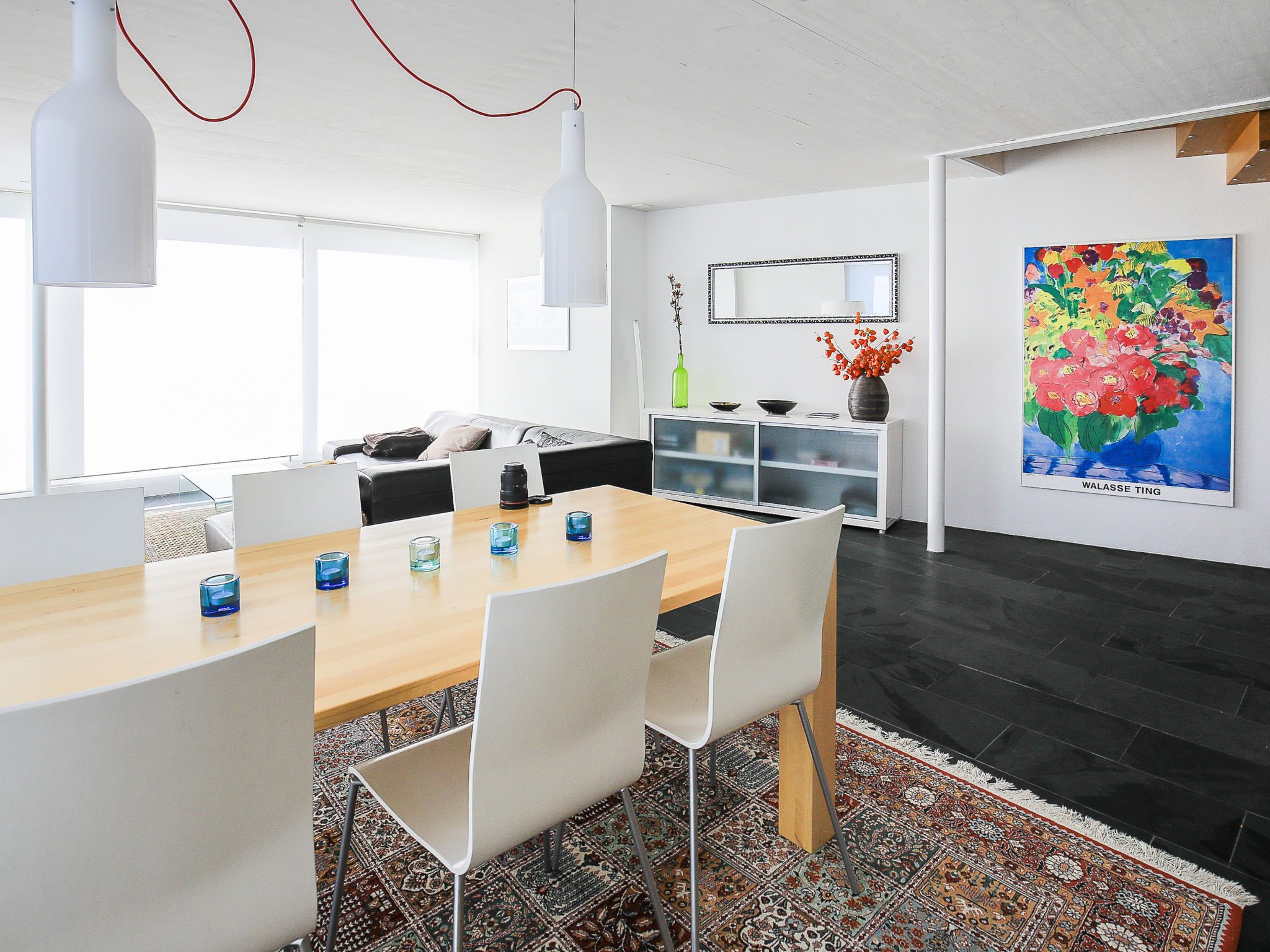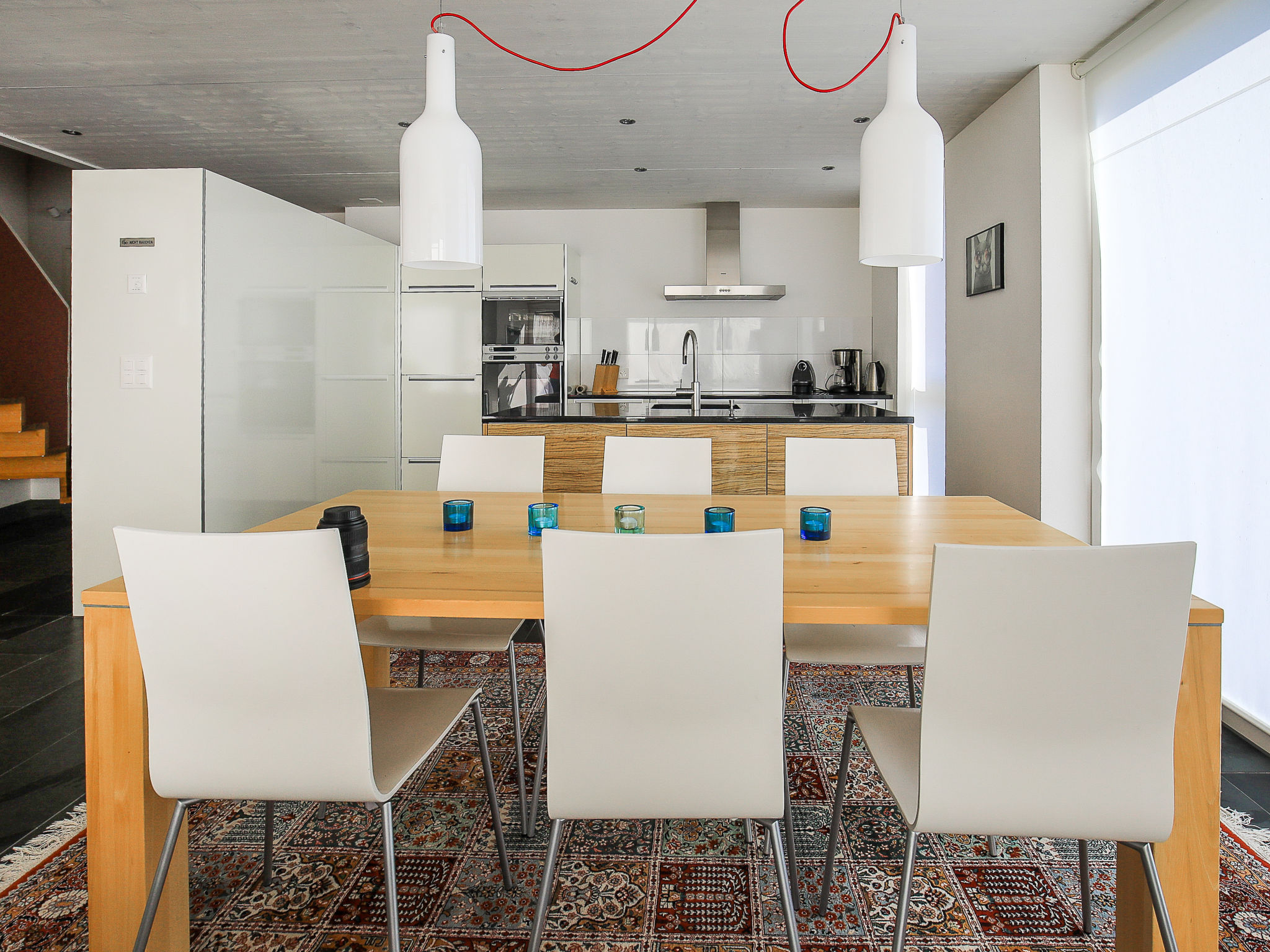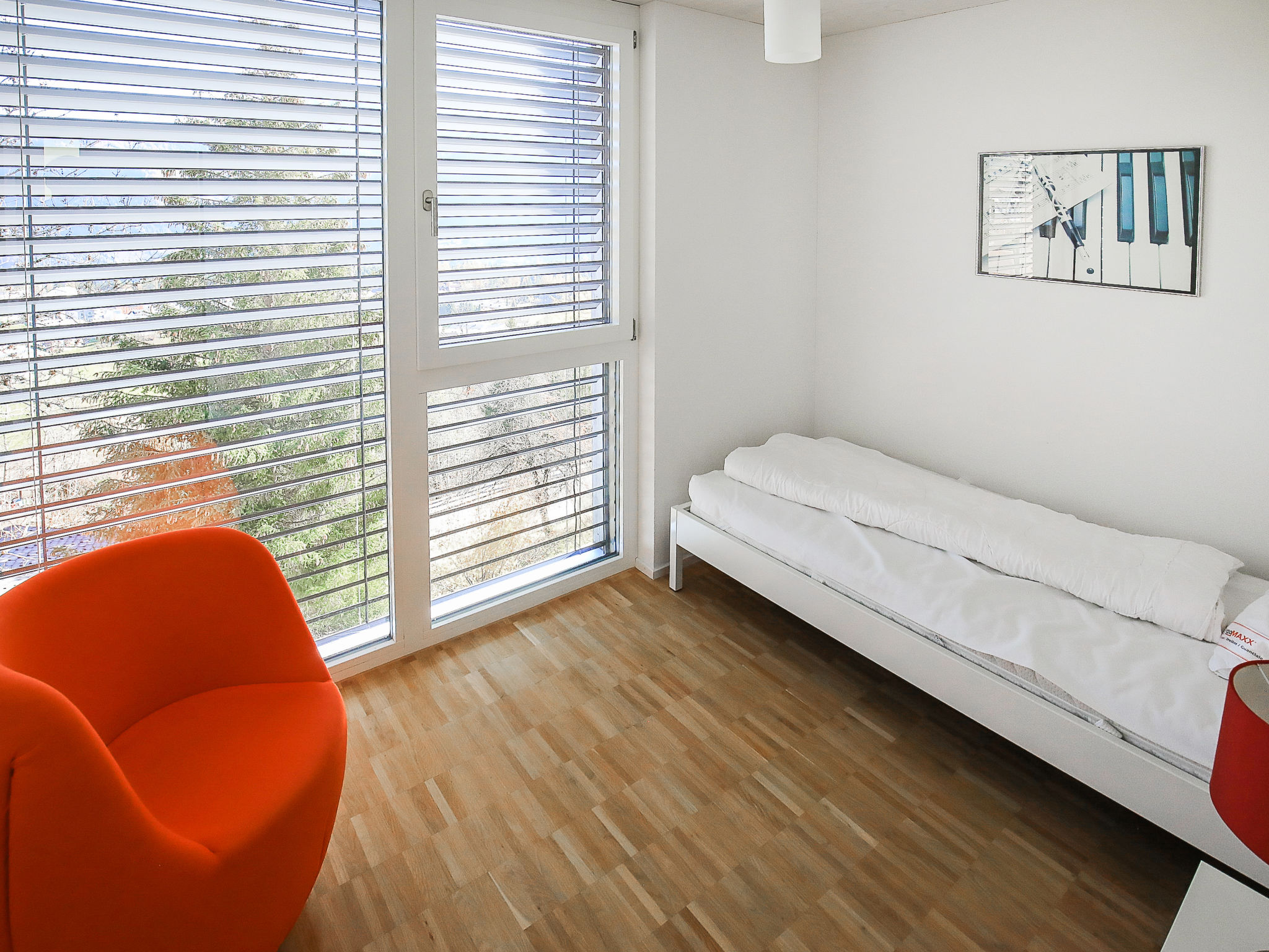 Appartement sur 2 niveaux 4 pièces 115 m2 sur 2 niveaux, à l'étage supérieur. Aménagement confortable et moderne: séjour/salle à manger avec TV (câblée) et écran plat. Sortie sur le jardinet. Cuisine ouverte (four, lave-vaisselle, 4 plaques vitrocéramiques, congélateur). À l'étage supérieur: 1 chambre avec 1 lit double et douche/WC. 1 chambre avec 1 lit double. 1 chambre avec 1 lit. Bain/WC. Chauffage par le sol. Jardinet couvert. Meubles de terrasse, barbecue. Belle vue sur les montagnes, la vallée et la localité. A disposition: Internet (Connexion WIFI, gratuit). Place de parking près de la maison. Veuillez noter: non recommandé pour des enfants en bas âge. Logement non-fumeur. 55408