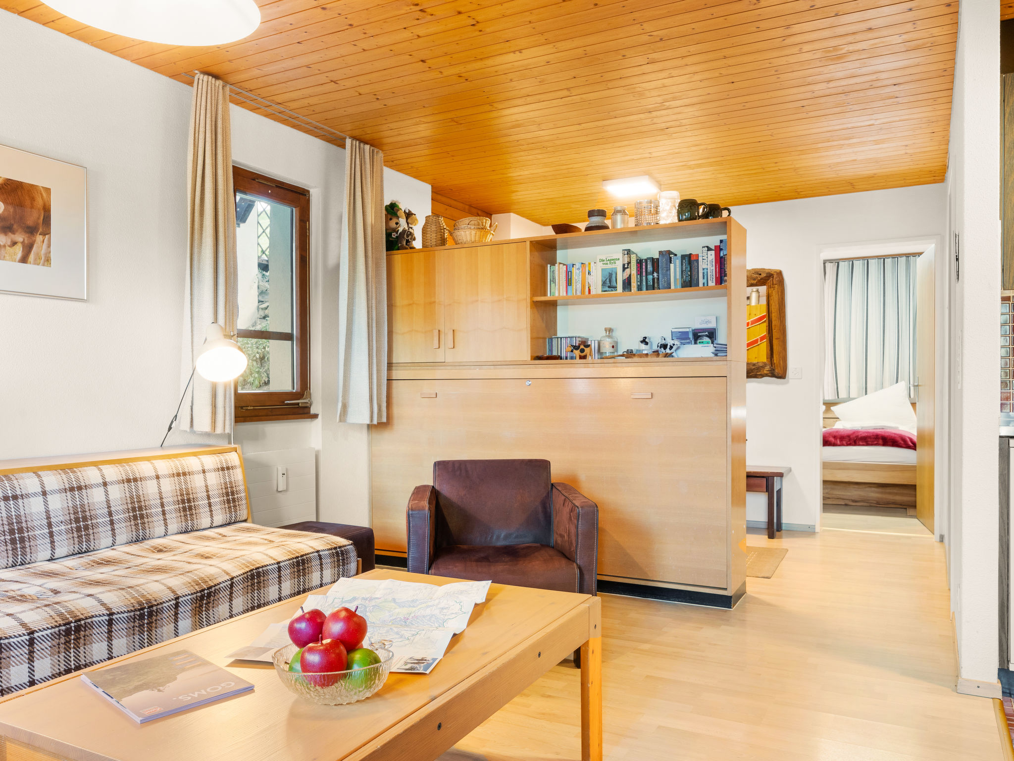 "Aragon E112", apt 2 pièces 48 m2, au rez-de-chaussée. Aménagement fonctionnel et plaisant: séjour/salle à manger avec TV (câblée) (écran plat). Sortie sur le jardinet. 1 chambre double. Cuisine ouverte (3 plaques de cuisson, four) avec table pour les repas. Bain/WC. Jardinet. Meubles de terrasse. Belle vue sur les montagnes et les alentours. A disposition: lit bébé (en sus). Internet (Connexion WIFI, gratuit). Garage No 37. Veuillez noter: logement non-fumeur. Maximum 1 animal/ chien autorisé.