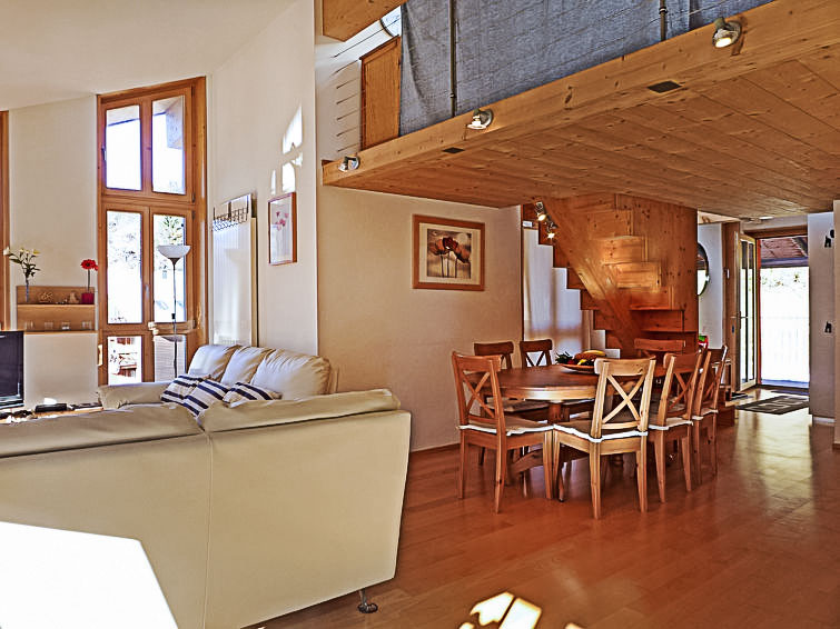 "Schweizerheim Apt.5", appartement sur 2 niveaux 2 pièces 70 m2 sur 2 niveaux. Spacieux et clair, aménagement confortable et de bon goût: séjour/salle à manger avec table pour les repas, TV (câblée) et DVD. 1 chambre avec 2 lits (90 cm, longueur 190 cm). Cuisine ouverte (four, lave-vaisselle, 4 plaques vitrocéramiques, grille-pain, bouilloire électrique, micro-ondes, cafetière électrique, Capsules pour machine à café (Nespresso) (NON INCLUSES), service à fondue (fondue au fromage)). Bain/WC. À l'étage supérieur: galerie ouverte avec 3 lits (90 cm, longueur 190 cm). Balcon. Superbe vue sur les montagnes et la vallée. A disposition: lave-linge, sèche-linge, sèche-cheveux. Internet (Connexion WIFI, gratuit). Veuillez noter: logement non-fumeur. Au lieu d'une chambre fermée, des espaces de couchage sont situés dans une zone ouverte (galerie, alcôve...).