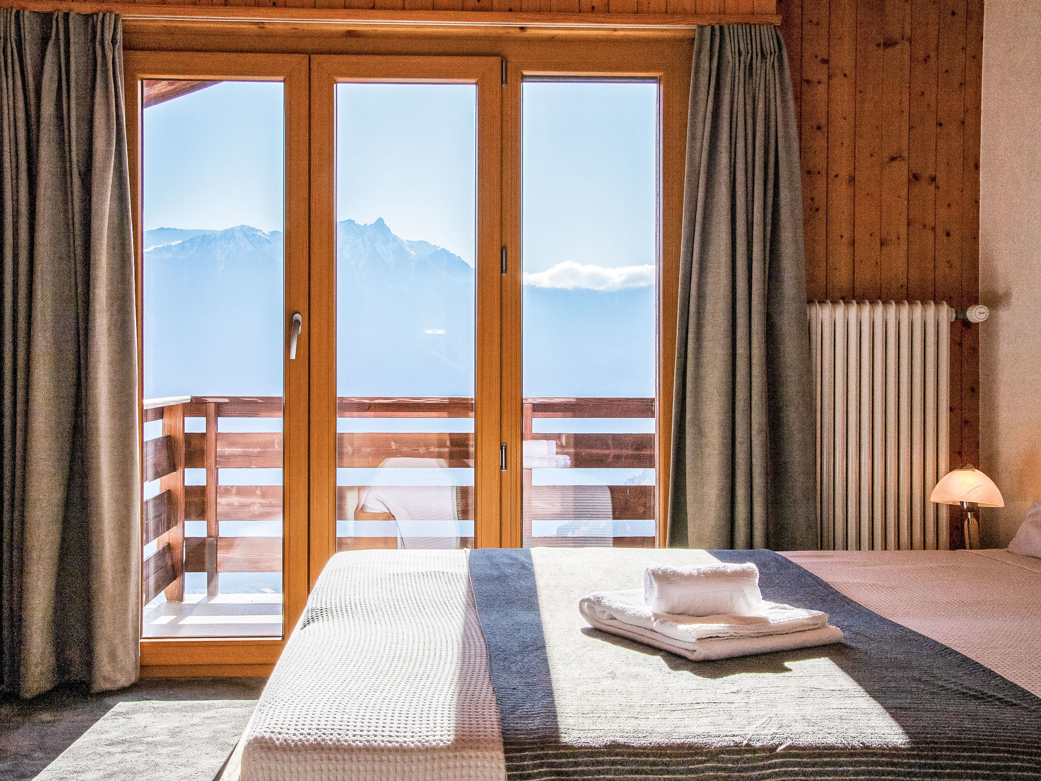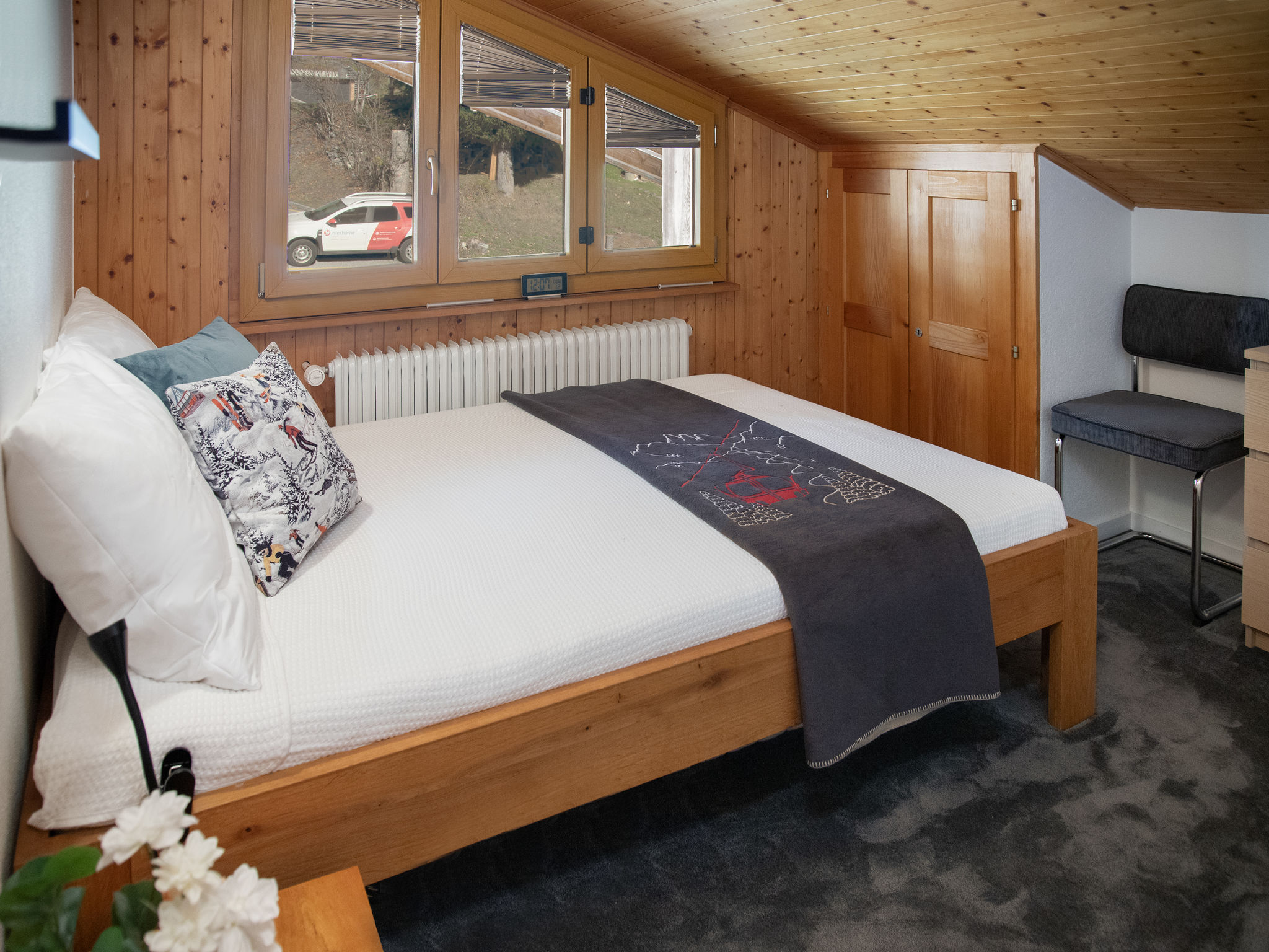 "Plein Soleil B 19", apt 4 pièces 90 m2 au 3ème étage, situation sud-est. Spacieux, mansardé, rénové en 2024, aménagement confortable et agréable: entrée. Grand séjour/salle à manger avec poêle suédois et TV (câblée). Sortie sur le balcon, orientée sud-est. Cuisine (4 plaques à induction, bouilloire électrique, cafetière électrique, Capsules pour machine à café (nespresso) (NON INCLUSES), appareil à raclette, service à fondue (fondue au fromage)). Sortie sur le balcon, orientée nord-est. Bain/WC. À l'étage supérieur: 1 grande chambre avec 1 lit double (2 x 90 cm, longueur 200 cm). Sortie sur le balcon, orientée sud-est. 1 chambre avec 1 lit (90 cm, longueur 200 cm), 1 x 1 lits superposés (90 cm, longueur 200 cm). 1 chambre avec 1 grand-lit (1 x 140 cm, longueur 200 cm). Petite galerie avec TV (câblée). Douche/WC. A disposition: Internet (Connexion WIFI, gratuit). Veuillez noter: logement non-fumeur.