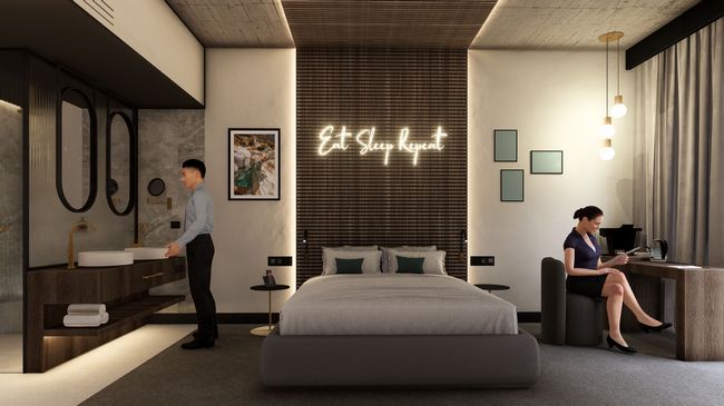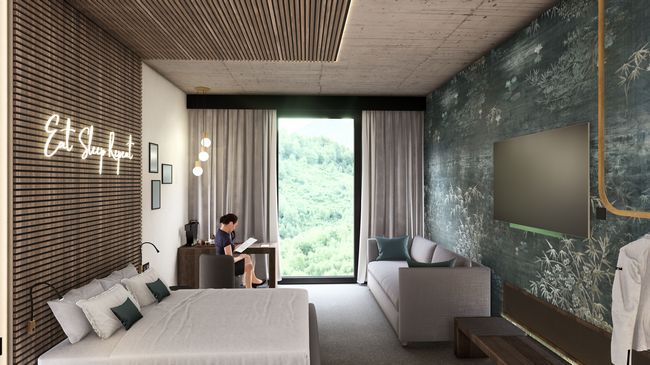 L'hôtel dispose de 77 chambres modernes dans les catégories standard, confort et supérieure, certaines avec balcon. Les 3 chambres familiales avec terrasse ont un accès direct à l'aire de jeux extérieure.