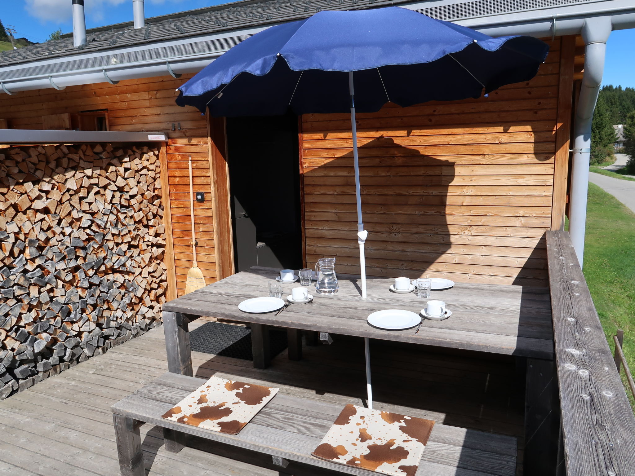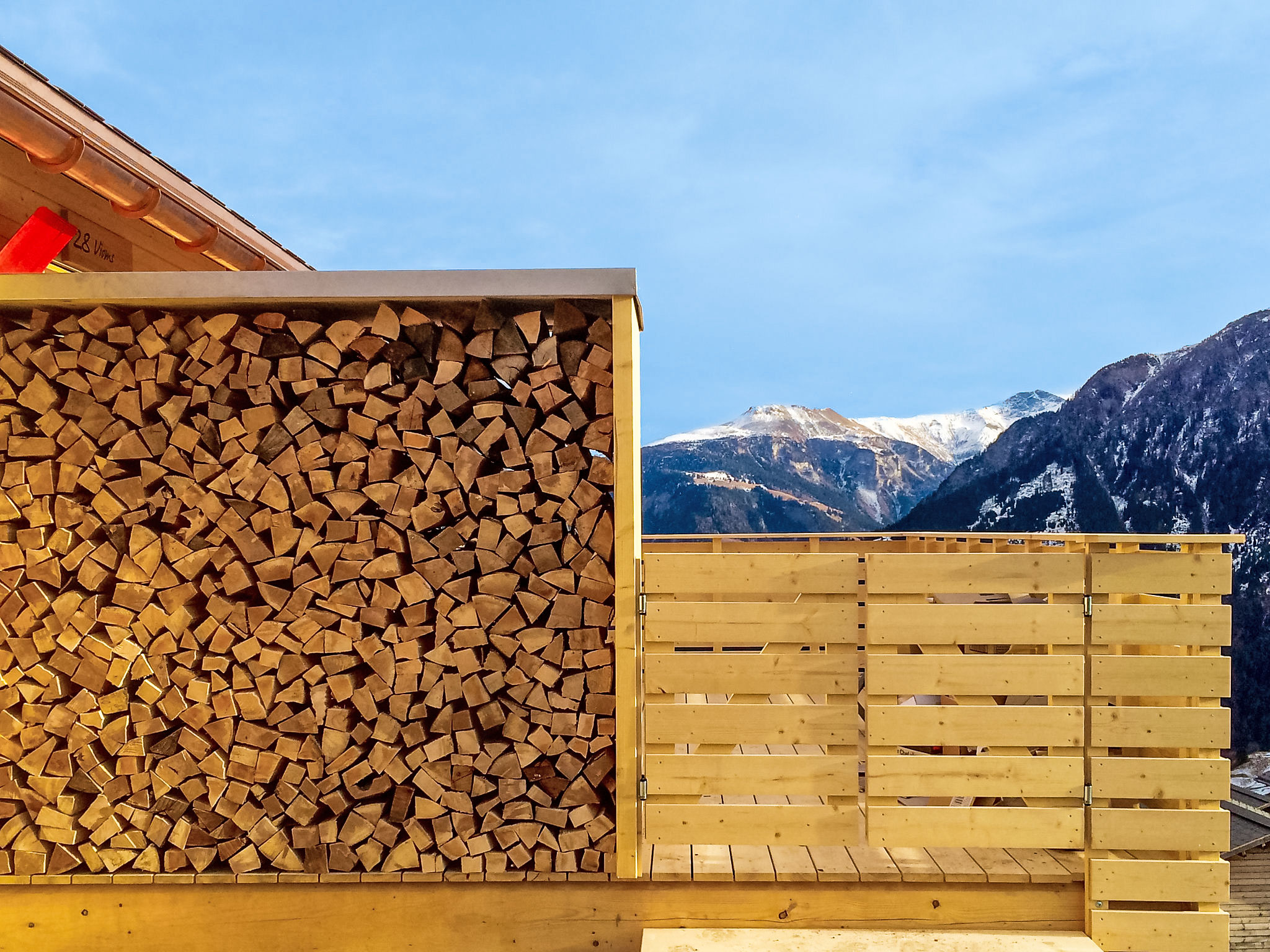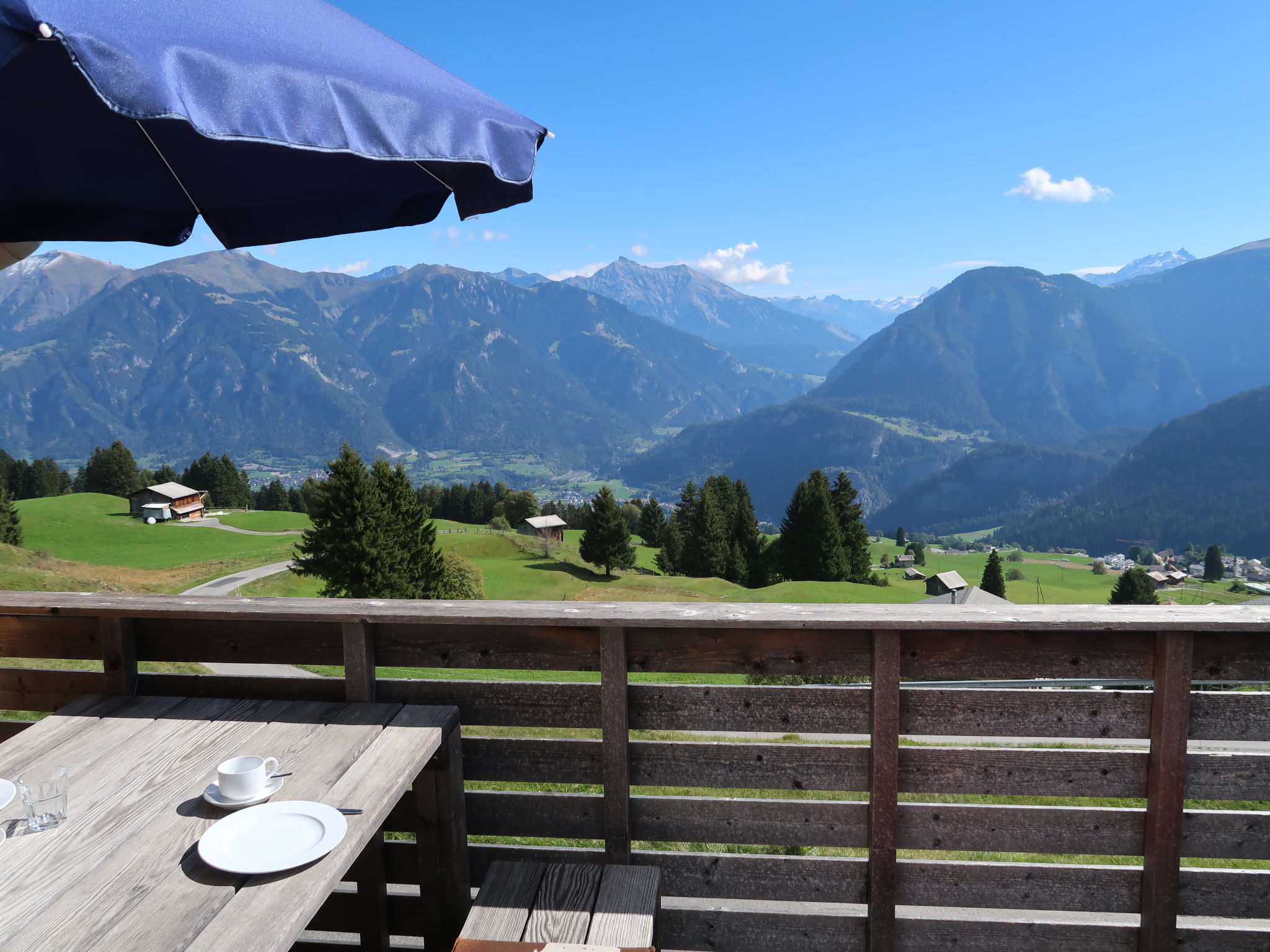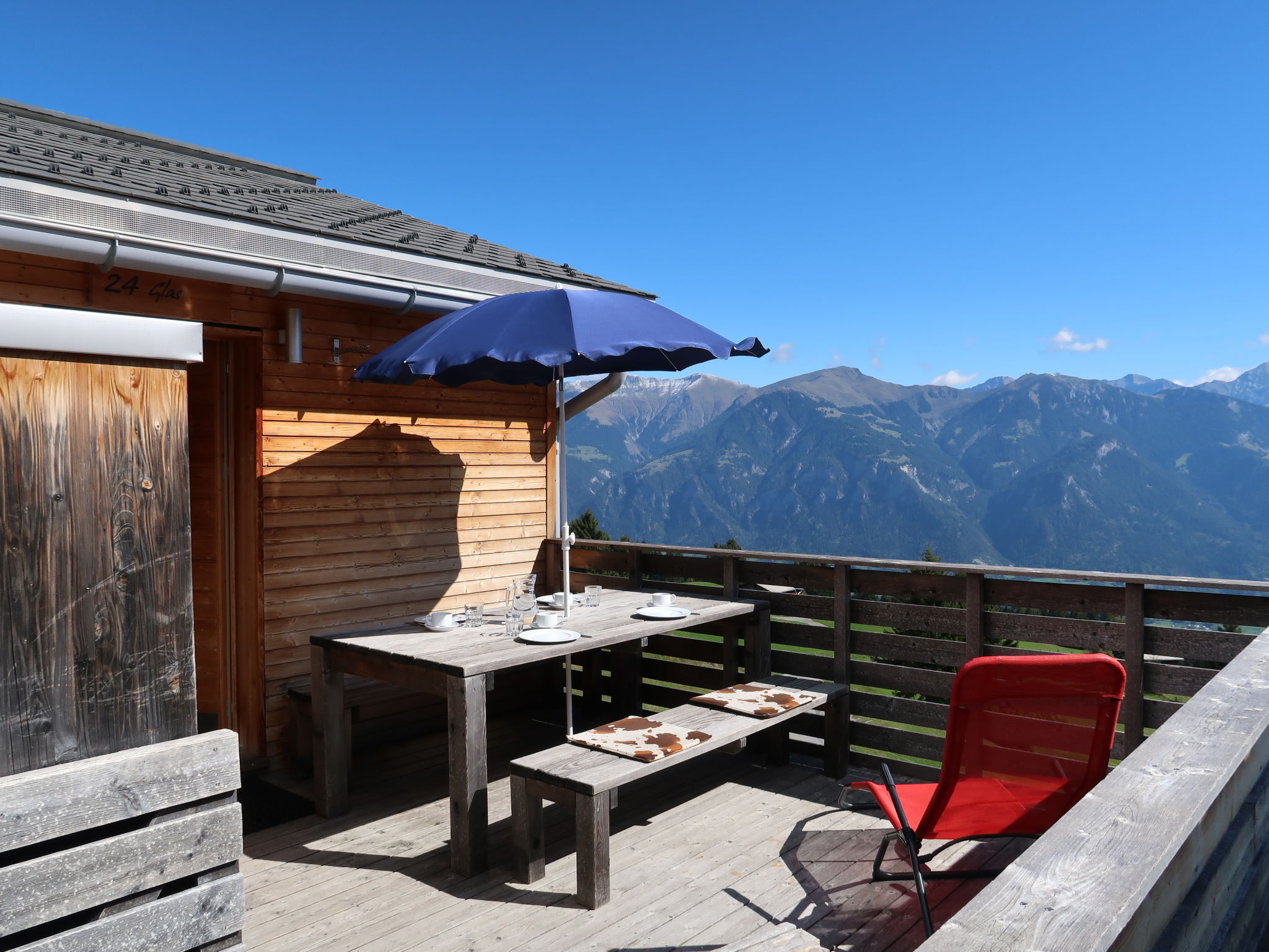 "Maiensäss Superior", chalet 3 pièces 58 m2, situation sud-est. Aménagement confortable et plaisant: séjour/salle à manger avec 1 divan-lit double (140 cm, longueur 200 cm), poêle suédois et TV (satellite) (écran plat), radio. Sortie sur la terrasse. 1 chambre double. 1 chambre avec 2 lits. Cuisine ouverte (four, lave-vaisselle, 4 plaques vitrocéramiques, bouilloire électrique, cafetière électrique, Capsules pour machine à café (Nespresso) (NON INCLUSES)). Douche, WC séparé. Chauffage électrique. Terrasse, situation sud-est. Meubles de terrasse. Très belle vue sur les montagnes, la vallée et les alentours. A disposition: coffre-fort, chaise haute pour enfant, lit bébé (en sus). Internet (Connexion WIFI, gratuit). Place de parking près de la maison. Adapté(e) aux familles. Maximum 2 animaux/ chiens autorisés. Bois de chauffage (selon besoin / en supplément).