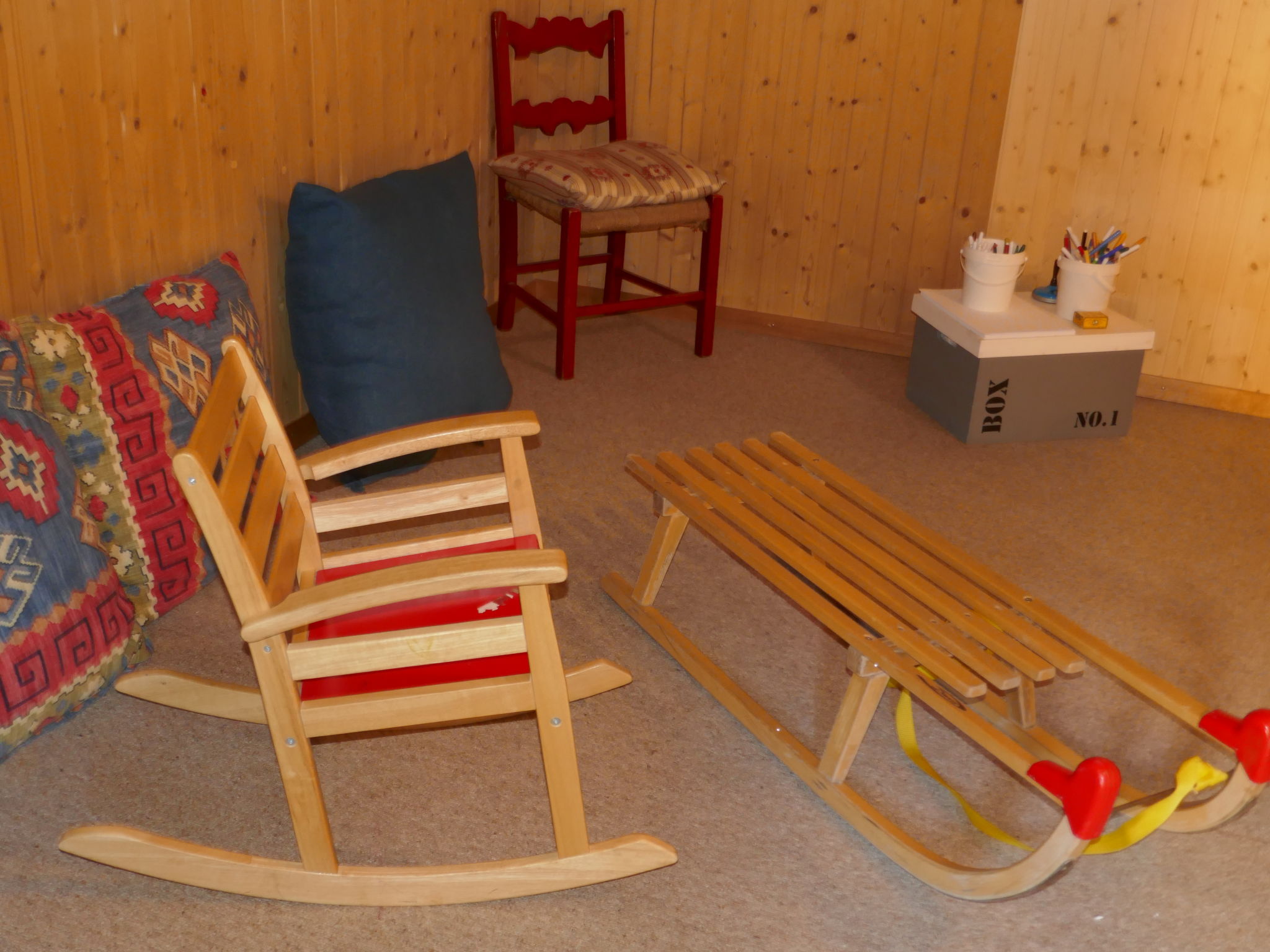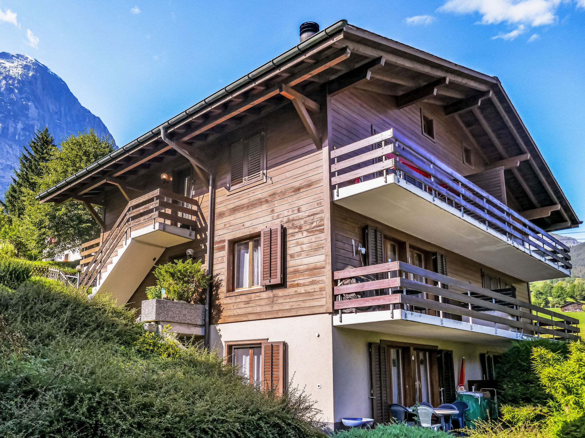 Immeuble simple, individuel "Nordwestwand", de 3 étages. Dans le quartier de Zu Trogen, à 2.1 km du centre, situation tranquille sur un versant, à 200 m du domaine skiable, dans une impasse. Infrastructures de la Maison: local pour les skis, chauffage central. Accès en voiture jusqu'à la maison par un chemin raide. En hiver, merci de prévoir des chaînes. Sentier en escalier (25 marches) jusqu'à la maison. Place de parking près de la maison. Magasin d'alimentation 1 km, centre commercial 2.1 km, restaurant 300 m, location de bicyclettes 900 m, arrêt de bus "Rothenegg" 1.3 km, gare ferroviaire "Grund" 800 m, piscine 900 m, piscine couverte 2.1 km. Terrain de golf (9 trous) 2 km, tennis 2.3 km, golf miniature 2.2 km, centre sportif 2.1 km, chemins de randonnées pédestres depuis la maison 10 m, train de montagne 600 m, télécabine 800 m, pistes de ski 200 m. Arrêt du ski-bus 100 m, ski de fond 800 m, jeux pour enfants 2.1 km. Les lacs connus sont facilement accessibles: Thuner-/Brienzersee 18 km. Veuillez noter: voiture recommandée, sans ascenseur. En cas de bonnes conditions d'enneigement, accès à ski jusqu'à la maison.