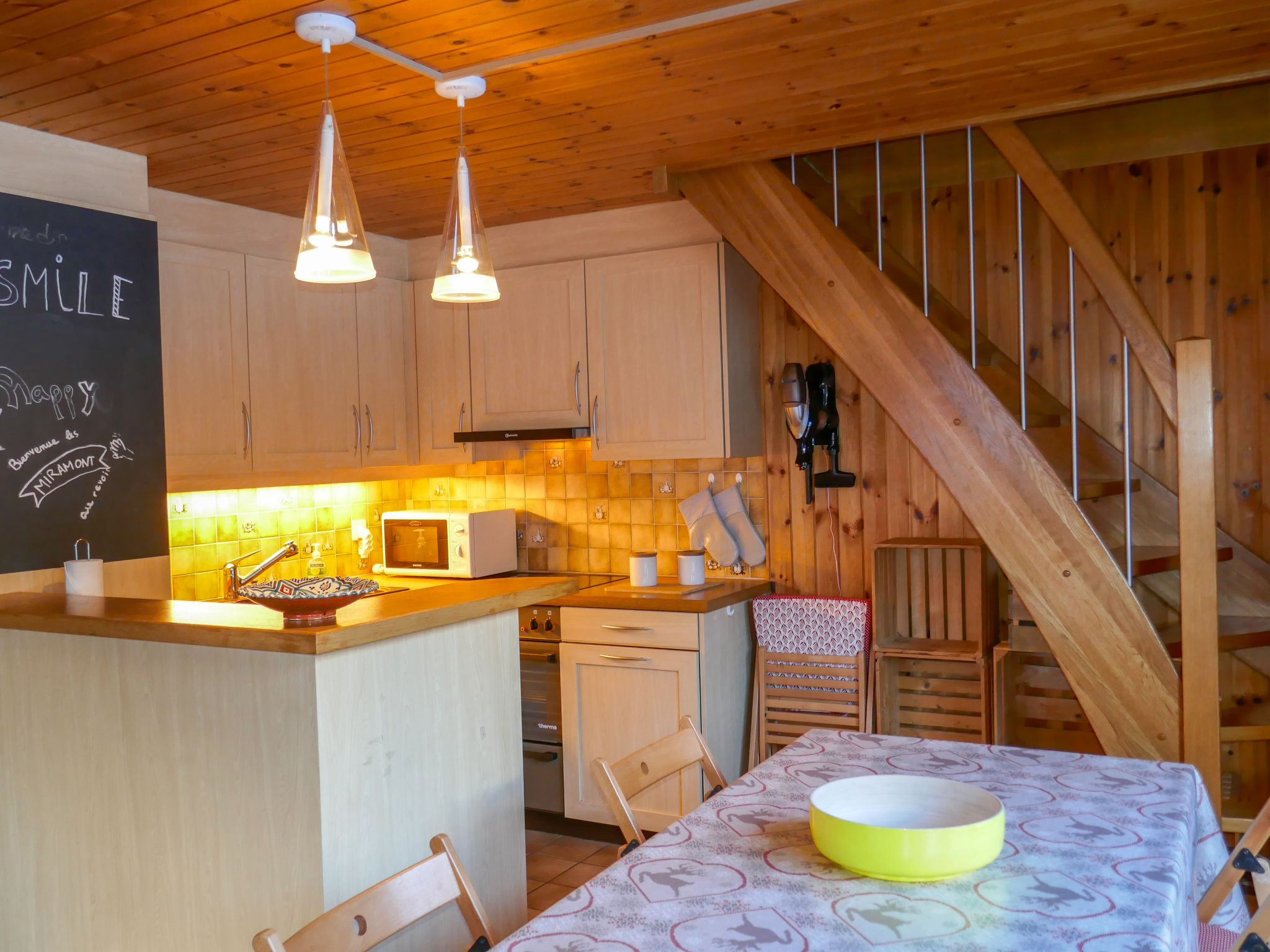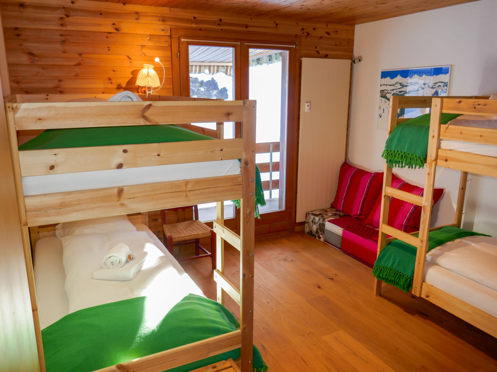 "Réan", apt 3 pièces 50 m2 sur 2 niveaux, sous le toit. Logement idéal pour 2 adultes + 2 enfants. Clair, partiellement mansardé, partiellement rénové en 2025, aménagement fonctionnel et plaisant: séjour/salle à manger ouvert avec poêle suédois, table pour les repas et TV (câblée). Sortie sur le balcon. 1 chambre avec 1 lit double (160 cm, longueur 200 cm). Sortie sur le balcon. 1 chambre d'enfants, 2 lits superposés (90 cm, longueur 200 cm). Sortie sur le balcon. Cuisine ouverte (4 plaques de cuisson, four, lave-vaisselle, 4 plaques vitrocéramiques, grille-pain, bouilloire électrique, micro-ondes, cafetière électrique, Capsules pour machine à café (Nespresso) (NON INCLUSES), appareil à raclette, service à fondue (fondue au fromage)). Douche/WC. À l'étage supérieur: (escalier raide) salle de jeux mansardée, ouverte. Balcon, situation sud balcon, situation nord. Mobilier de balcon. Superbe vue panoramique sur la vallée et la localité. A disposition: Internet (Connexion WIFI, gratuit). Place de parking No Réan près de la maison. Veuillez noter: logement non-fumeur. Entrée privée.
