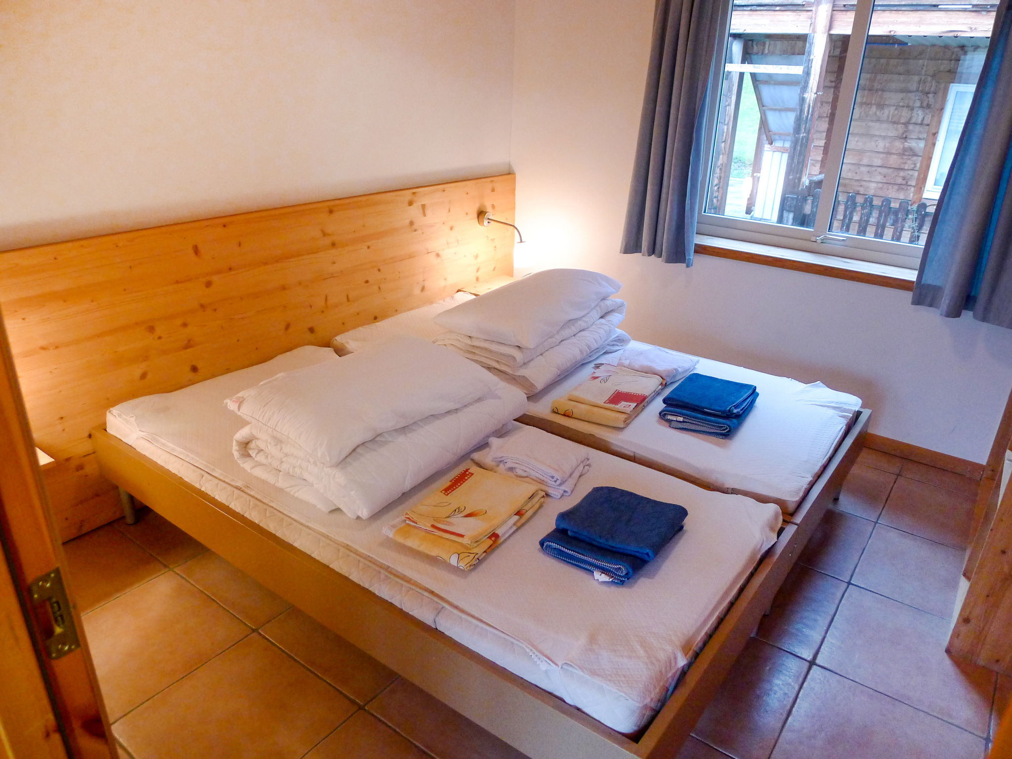 Apt 3 pièces 50 m2 au 1er étage. Aménagement fonctionnel et plaisant: séjour/salle à manger avec TV (câblée) (écran plat). Sortie sur le balcon. 1 chambre double. 1 chambre avec 2 lits. Petite cuisine ouverte (4 plaques de cuisson, lave-vaisselle, congélateur). Bain/WC. Balcon, couvert. Mobilier de balcon. Belle vue panoramique sur les montagnes, les alentours et la localité. A disposition: Internet (Connexion WIFI, gratuit). Place de parking No I3 à 100 m. Veuillez noter: logement non-fumeur. Maximum 1 animal/ chien autorisé.