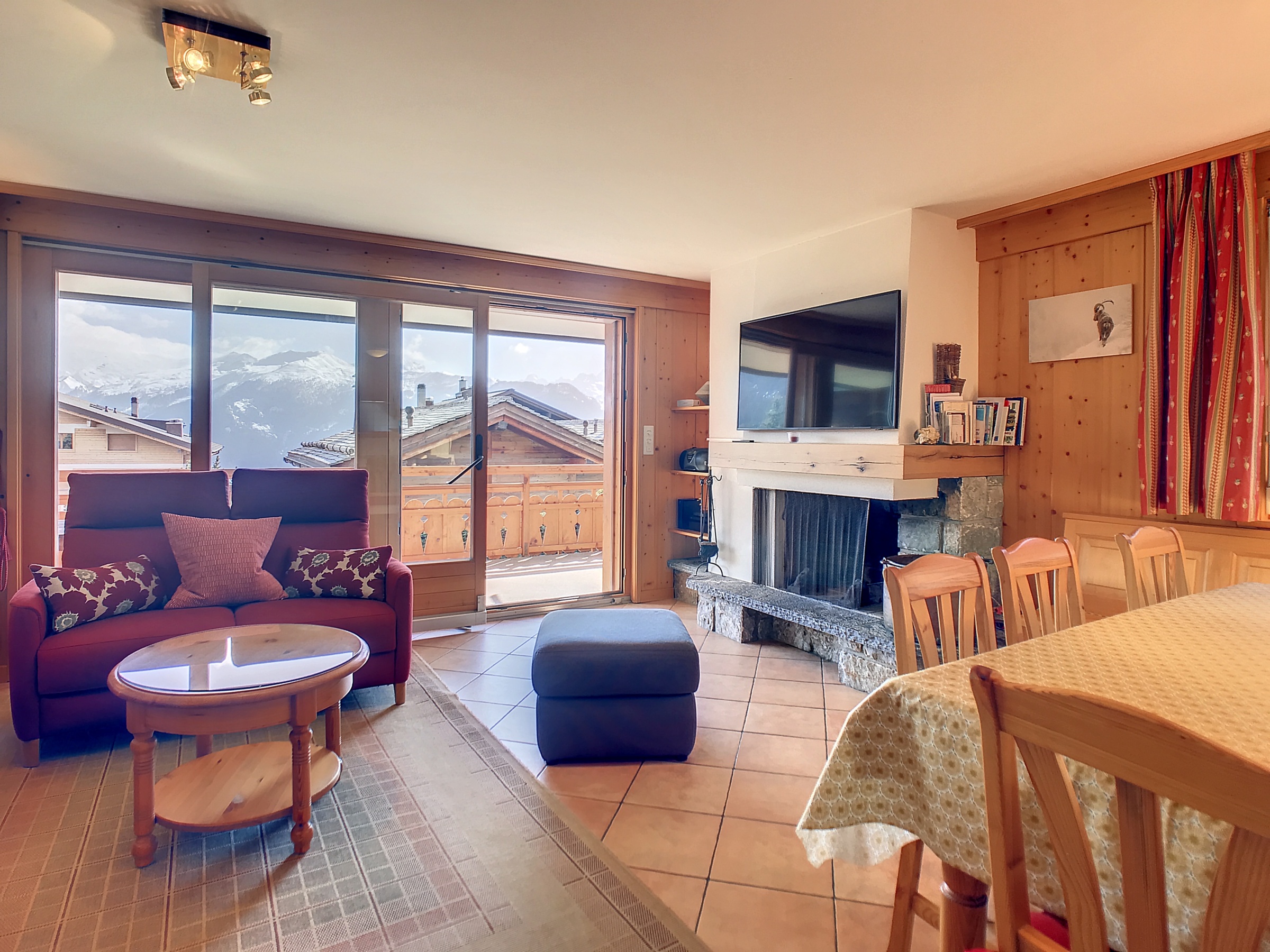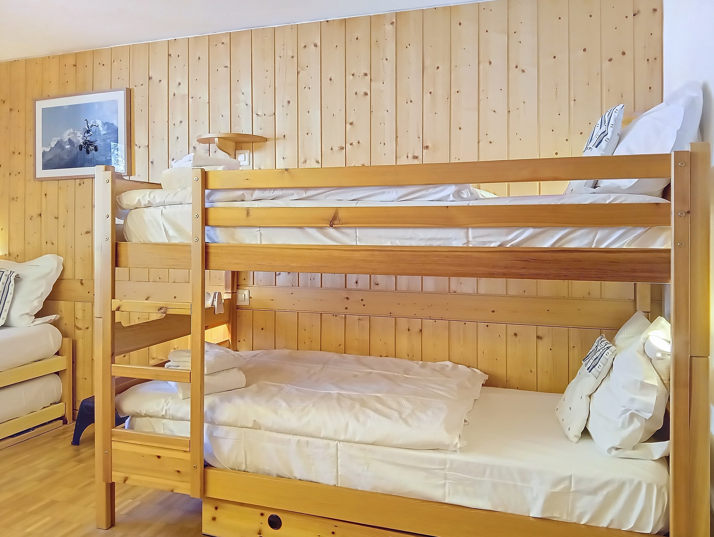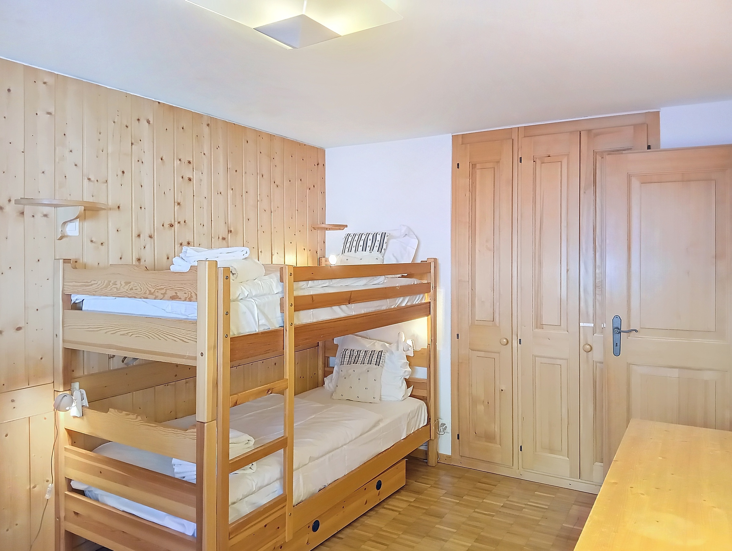 L’appartement se compose d’un grand salon avec cheminée, TV, WiFi et accès direct au balcon orienté sud-ouest, ainsi que d’une cuisine ouverte entièrement équipée. Il dispose également d’une chambre avec lit double et salle de bain attenante avec baignoire et WC, d’une chambre avec 2 lits superposés et 2 lits gigognes, et d’une autre chambre avec 2 lits simples ou transformable en 1 lit double. Une salle de bain supplémentaire est disponible avec douche à l'italienne, ainsi qu’un WC séparé.