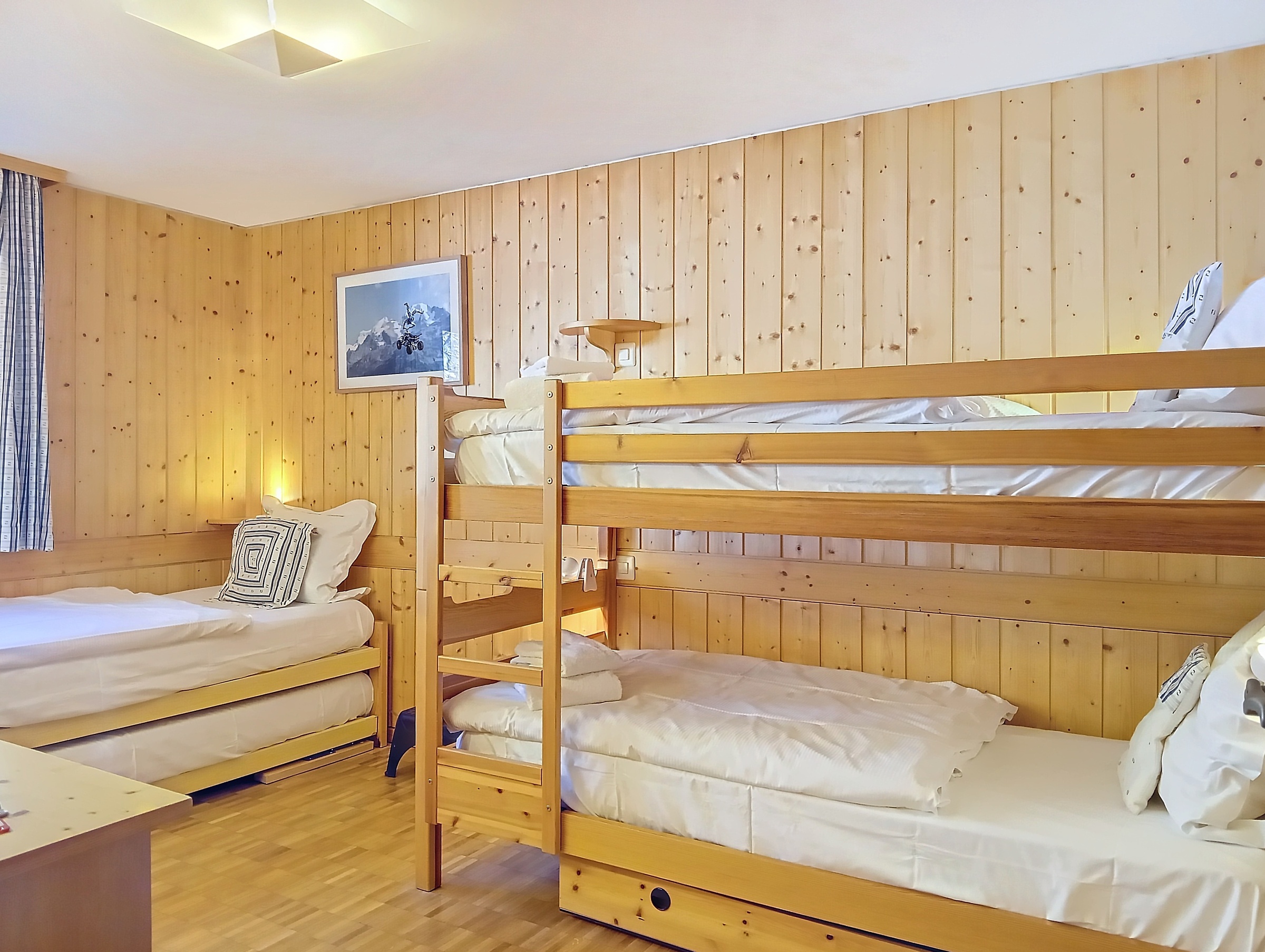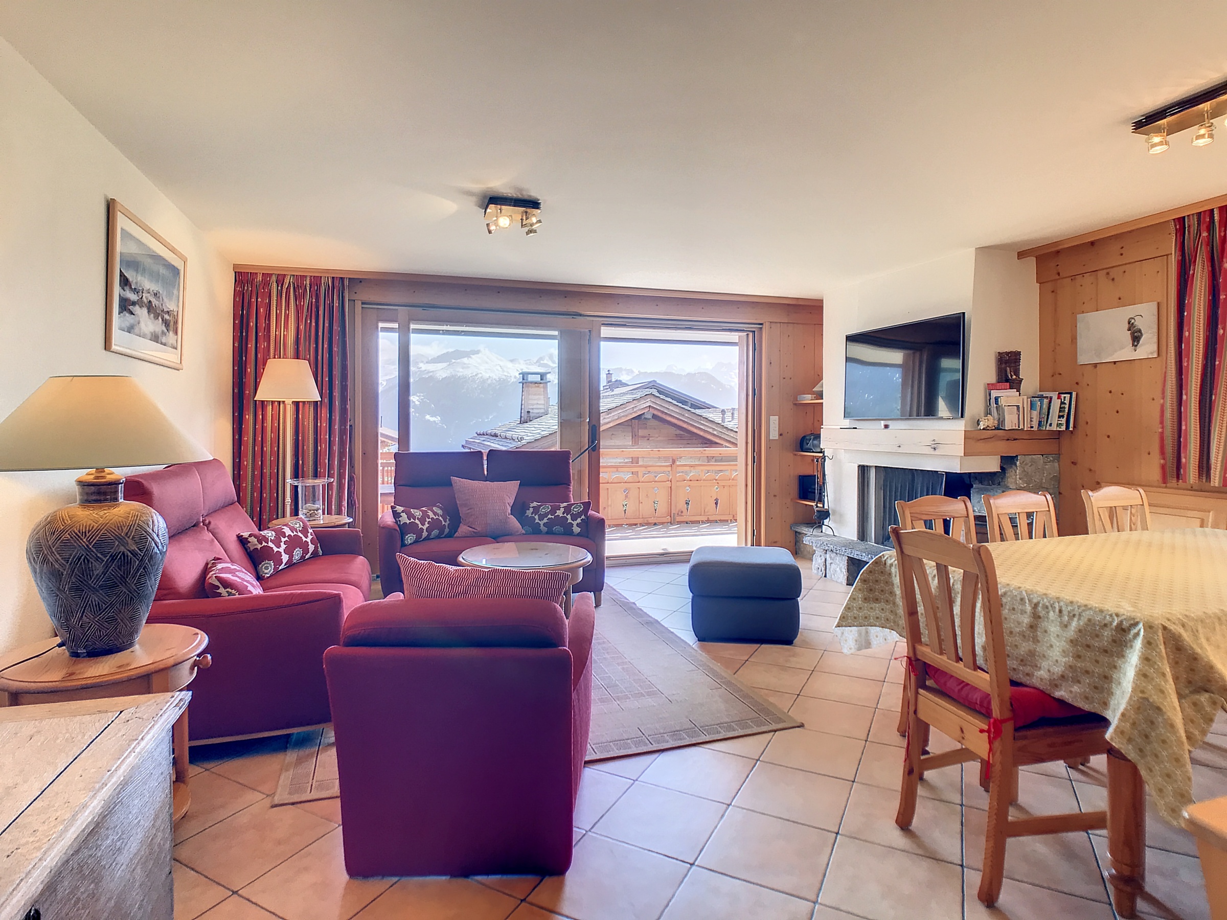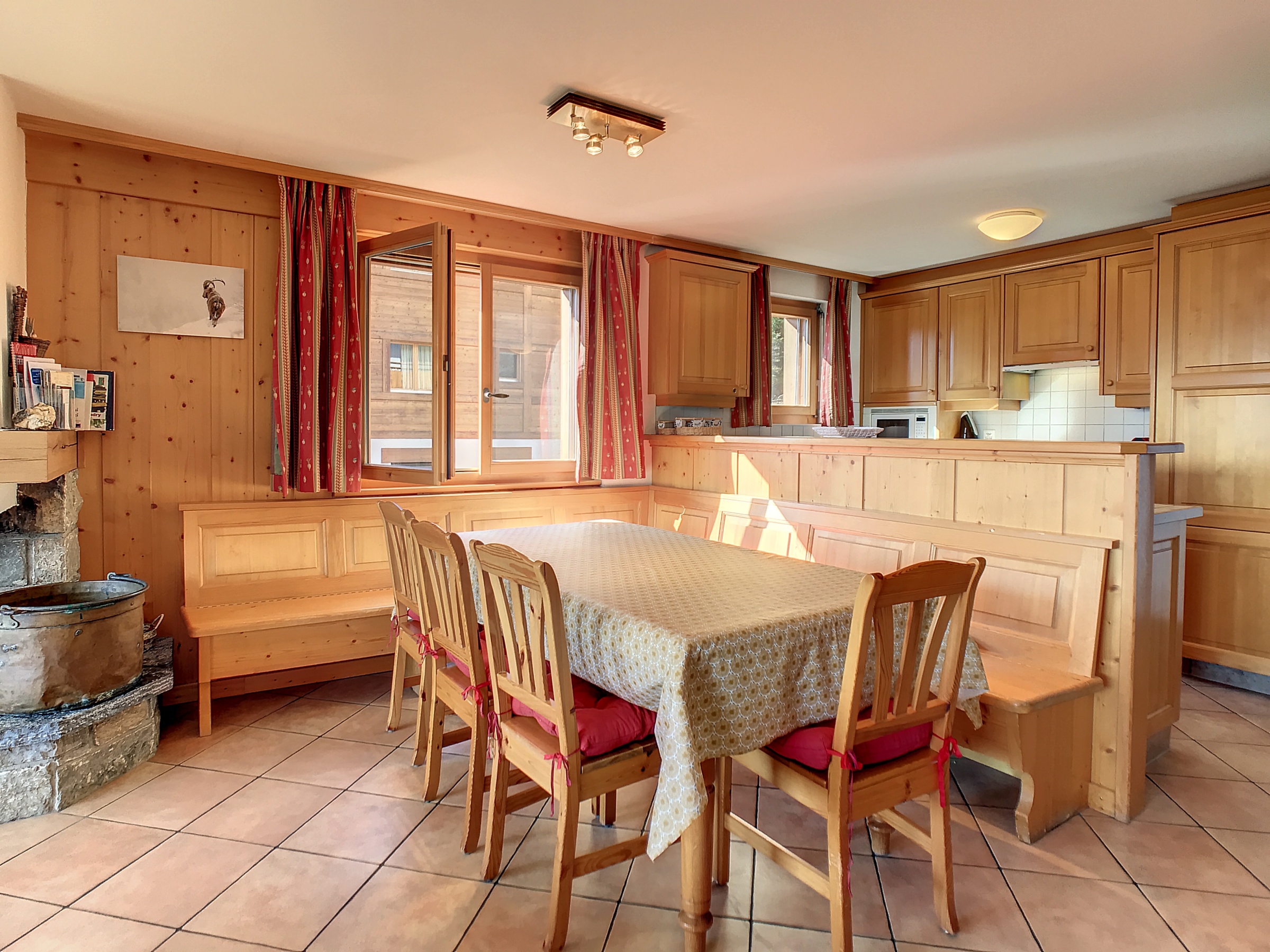 L’appartement se compose d’un grand salon avec cheminée, TV, WiFi et accès direct au balcon orienté sud-ouest, ainsi que d’une cuisine ouverte entièrement équipée. Il dispose également d’une chambre avec lit double et salle de bain attenante avec baignoire et WC, d’une chambre avec 2 lits superposés et 2 lits gigognes, et d’une autre chambre avec 2 lits simples ou transformable en 1 lit double. Une salle de bain supplémentaire est disponible avec douche à l'italienne, ainsi qu’un WC séparé.