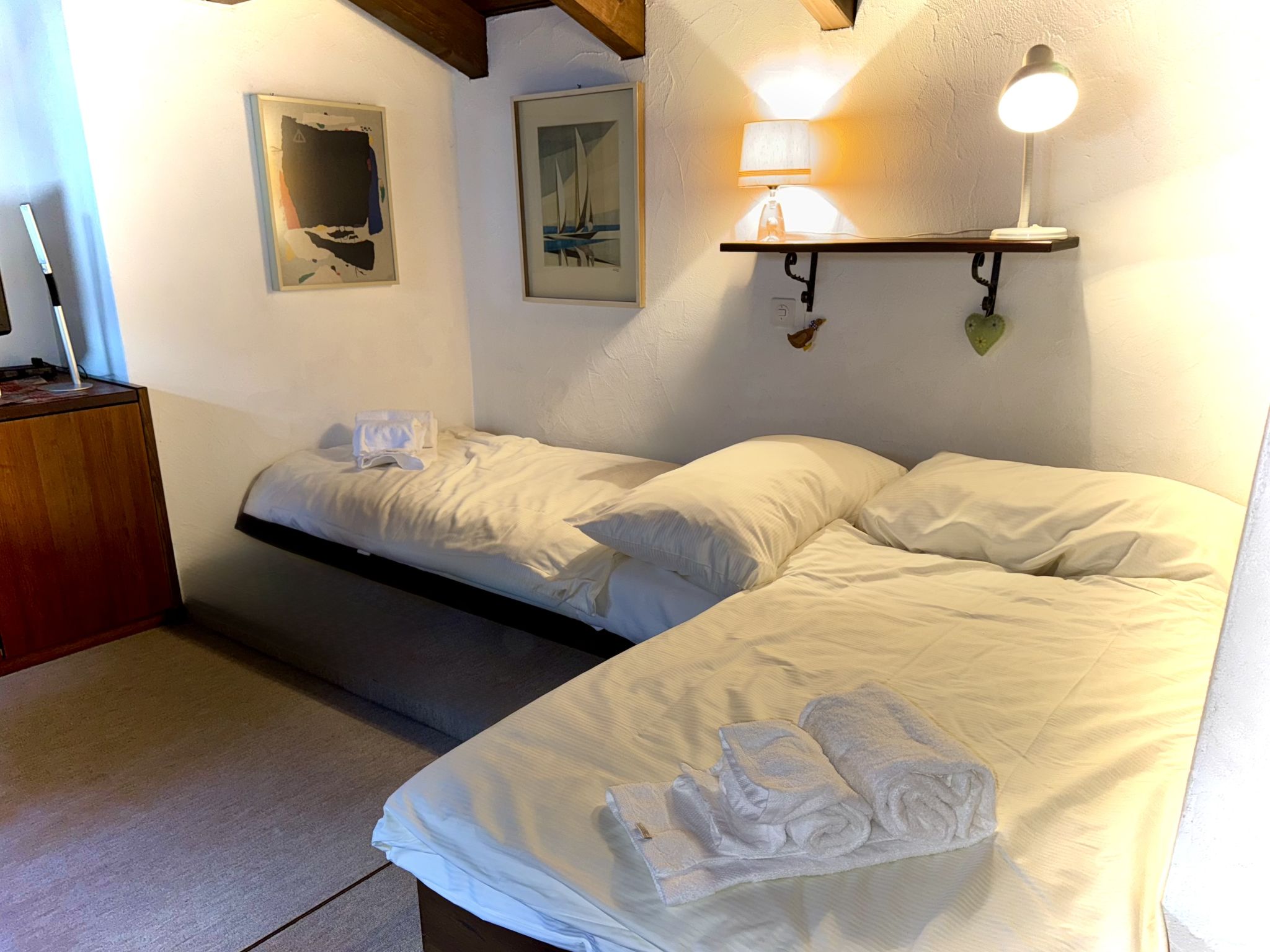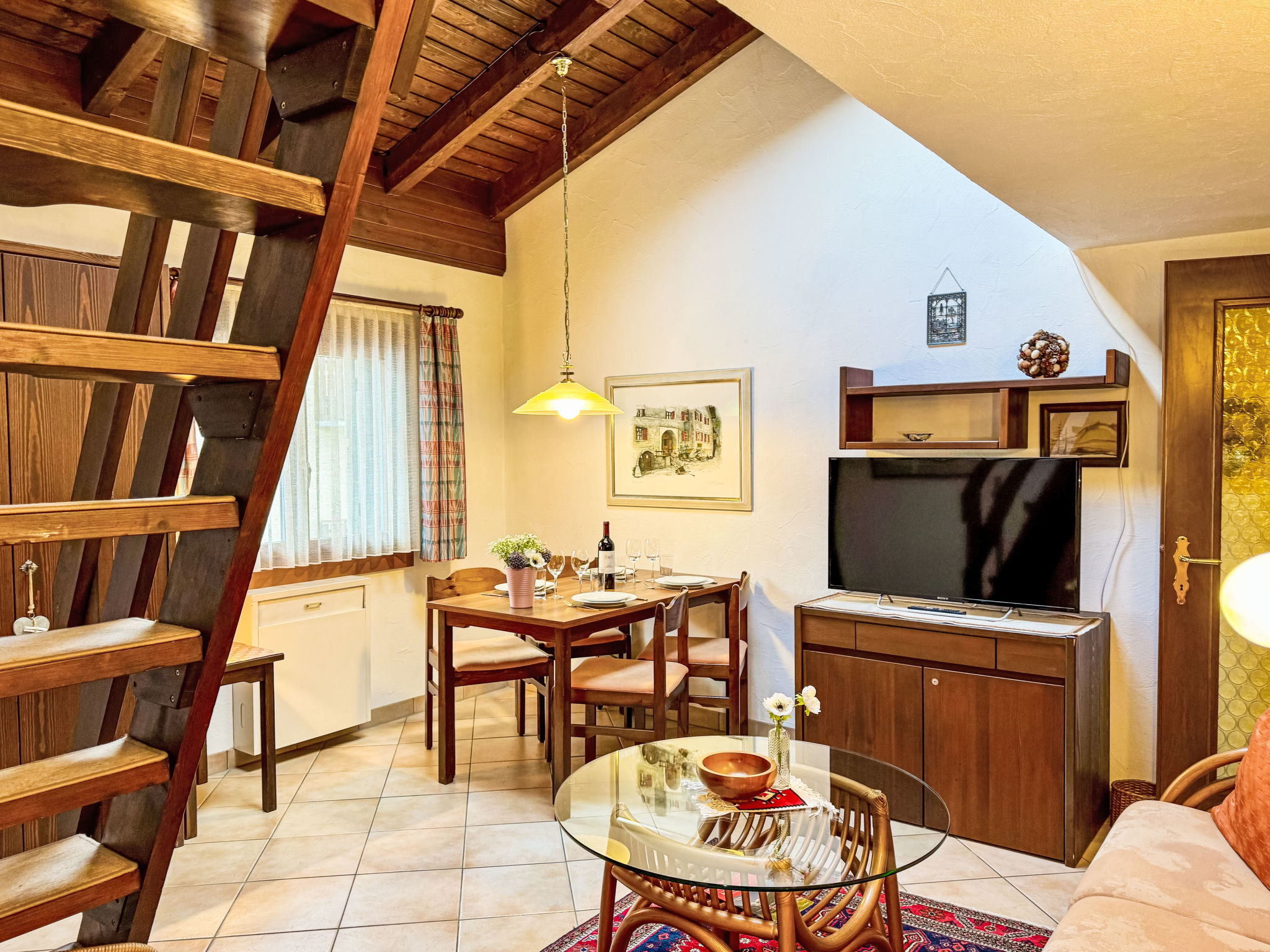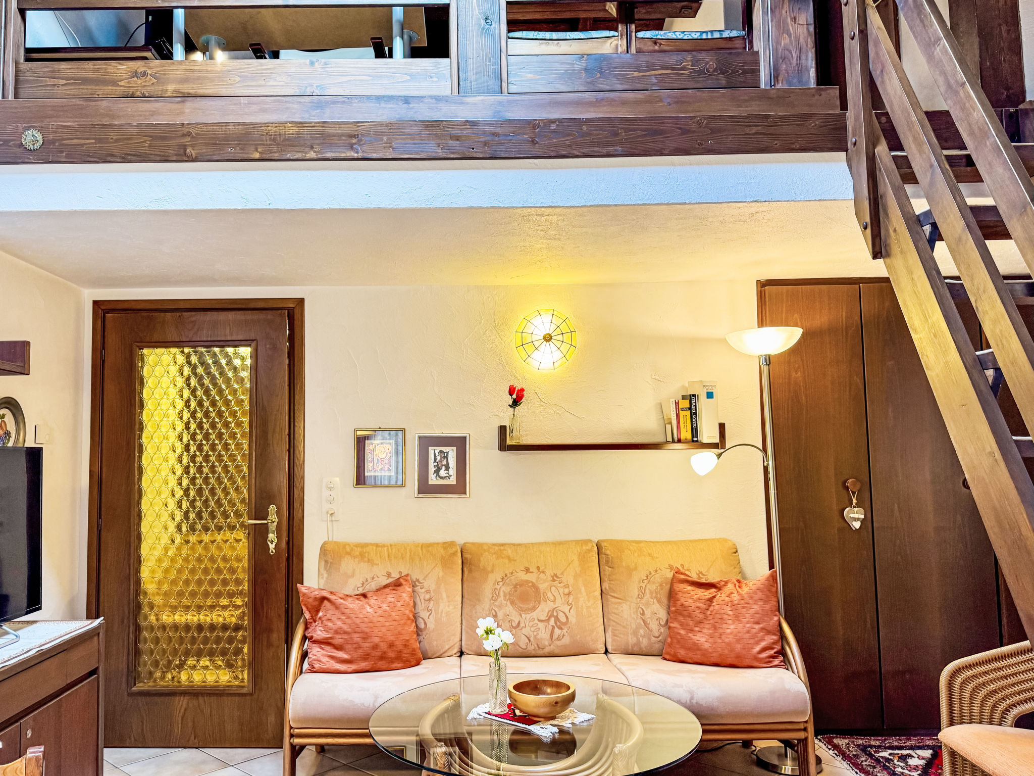 "Residenza Chesa Margun 15-4", apt 2 pièces 47 m2 sur 2 niveaux, sous le toit, situation nord. Aménagement plaisant: séjour/salle à manger avec TV (câblée) (écran plat). 1 chambre double avec 1 lit double. Petite cuisine (4 plaques de cuisson, four, lave-vaisselle, grille-pain, bouilloire électrique, cafetière électrique, Capsules pour machine à café (Nespresso) (NON INCLUSES)). Bain/WC. À l'étage supérieur: (escalier raide) galerie mansardée, ouverte, hauteur plafond 150 - 170 cm avec 2 lits et TV (câblée) (écran plat). Vue latérale sur les montagnes et les alentours. A disposition: Internet (Connexion WIFI, gratuit). Garage, hauteur 203 cm, largeur 290 cm. Borne de recharge électrique. Veuillez noter: non recommandé pour des enfants en bas âge. Logement non-fumeur.