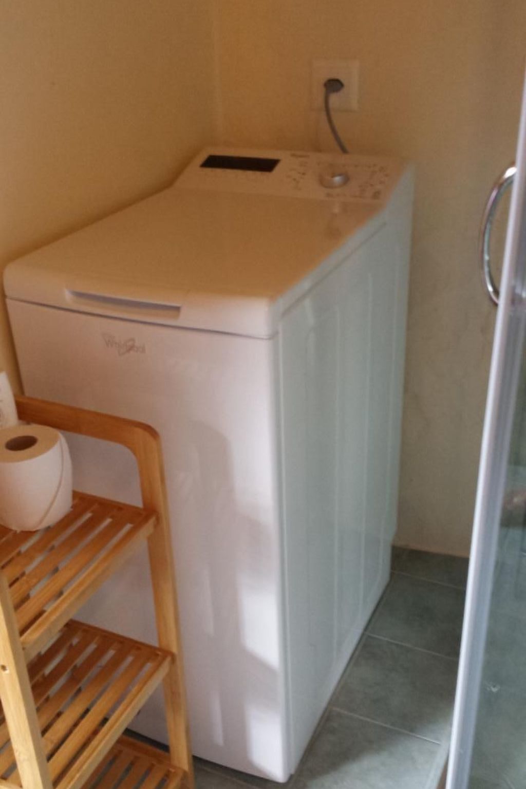 La grande terrasse à l'entrée de la maison est meublée (table, chaises, chaises longues, banc en granit, parasol et barbecue sur roues). Nous utilisons des produits écologiques pour nettoyer l'espace.