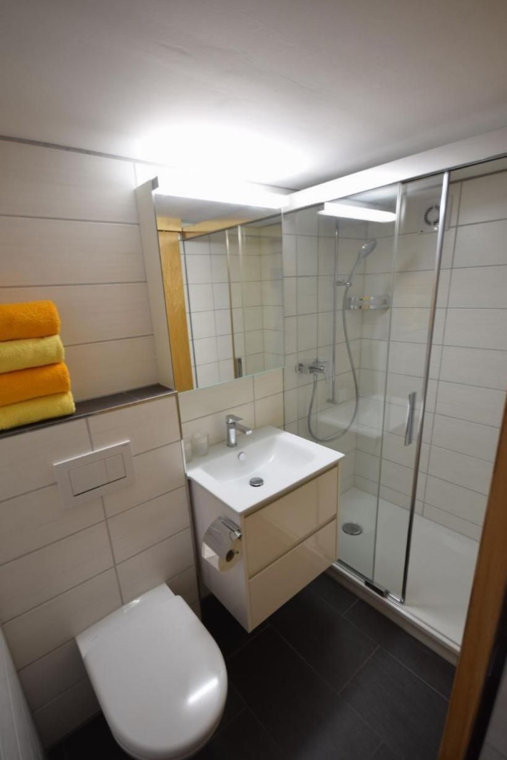 The small, cosy studio has a combined living room and bedroom, equipped with a large box-spring bed, Swisscom TV and free WiFi, a small, well-equipped kitchenette for self-catering and a bathroom with WC and shower. The tasteful and comfortable furnishings invite you to linger and relax.
