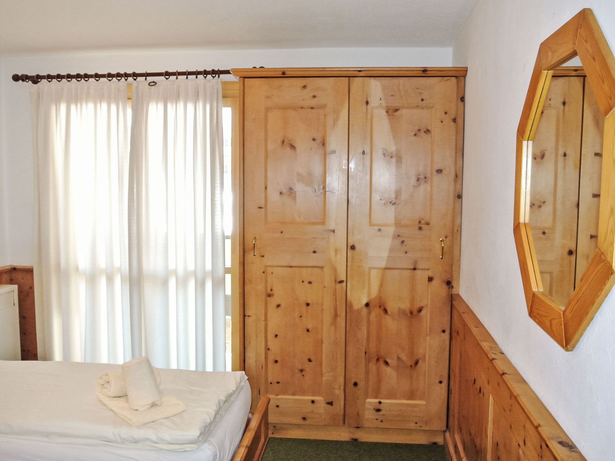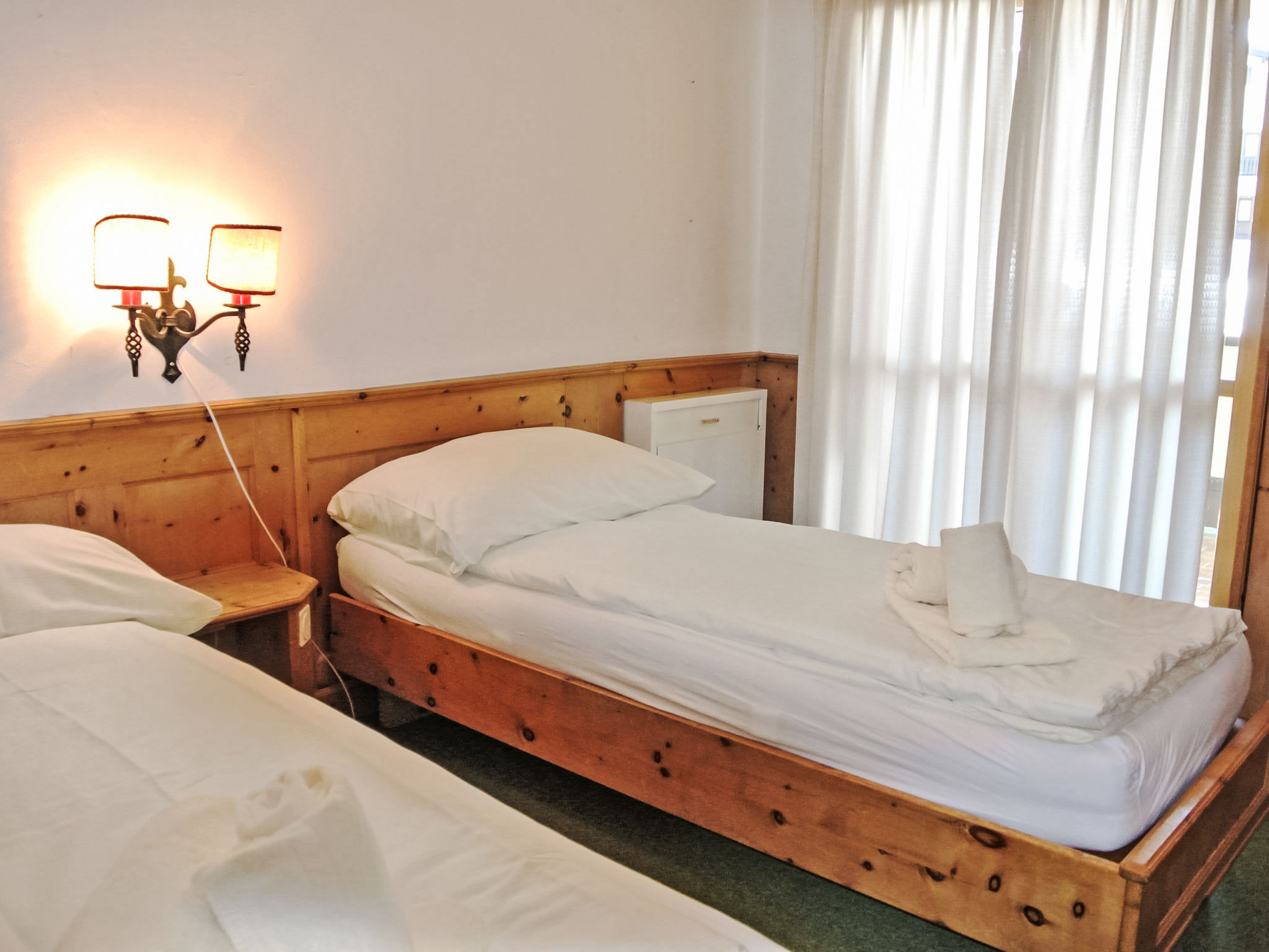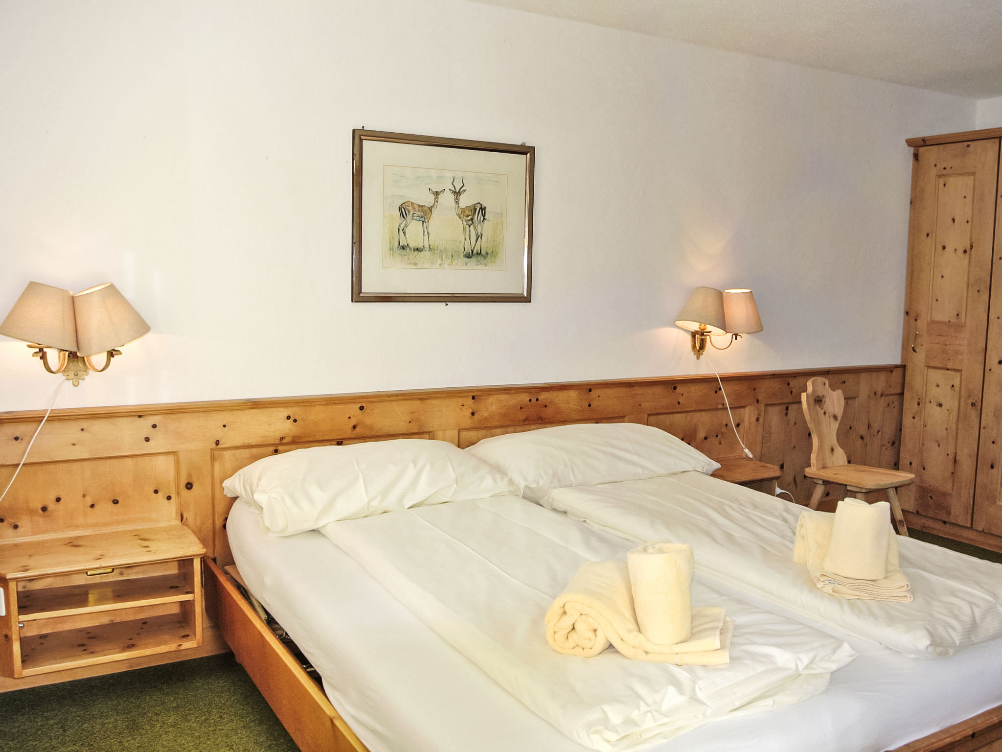 "Residenza Chesa Margun 34-8", apt 3 pièces 84 m2 au 1er étage. Clair, complètement rénové en 2024, aménagement de bon goût et de style: séjour/salle à manger avec 1 divan-lit double, Télévision numérique et écran plat. Sortie sur le balcon, orientée sud. 1 chambre avec 2 lits (100 cm, longueur 200 cm). Sortie sur le balcon. 1 chambre double avec Dressing. Sortie sur le balcon. (four, lave-vaisselle, 4 plaques à induction, grille-pain, bouilloire électrique, cafetière électrique). Bain/WC, douche/WC. Chauffage électrique. Balcon, situation sud. Mobilier de balcon. Vue sur les montagnes et la localité. A disposition: Internet (Connexion WIFI, gratuit). Garage, hauteur 200 cm, largeur 290 cm. Veuillez noter: adapté(e) aux familles. Logement non-fumeur. Maximum 1 animal/ chien autorisé.