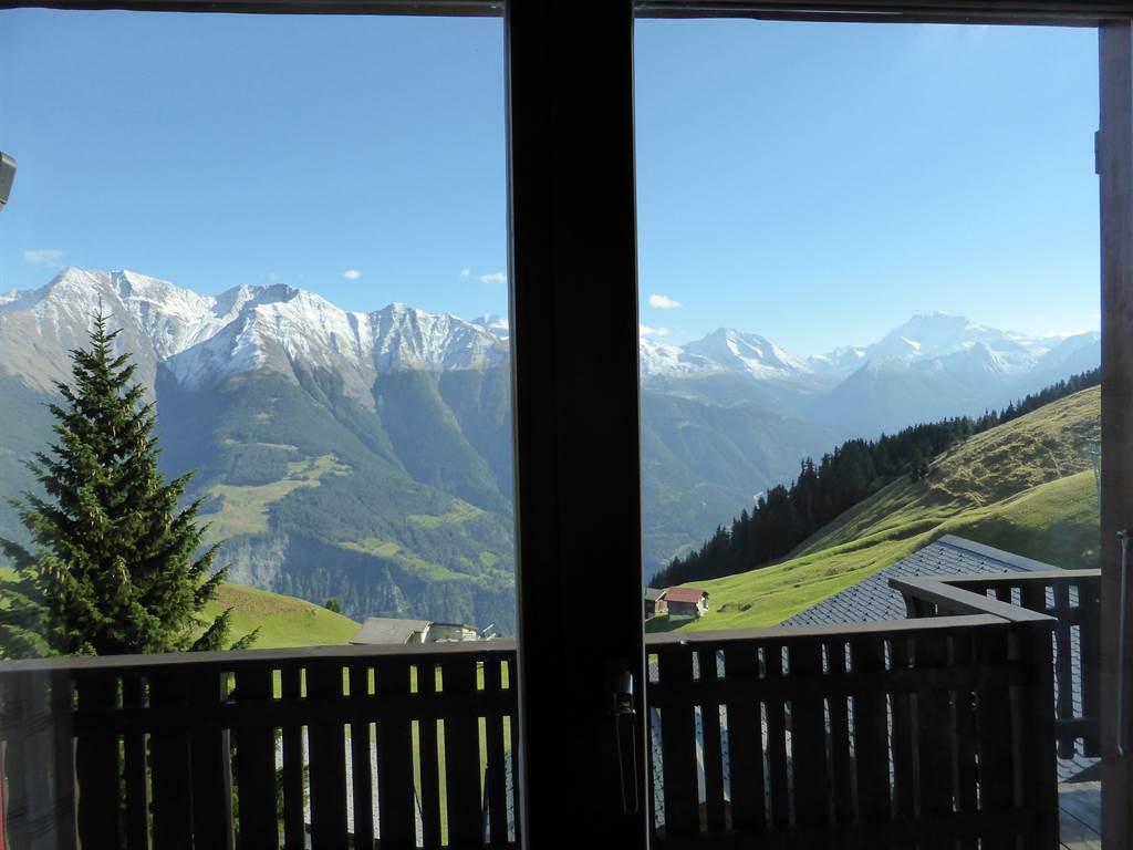 Bienvenue au Chalet Lällenkeenig premier étage. On a une belle vue aux montagnes.