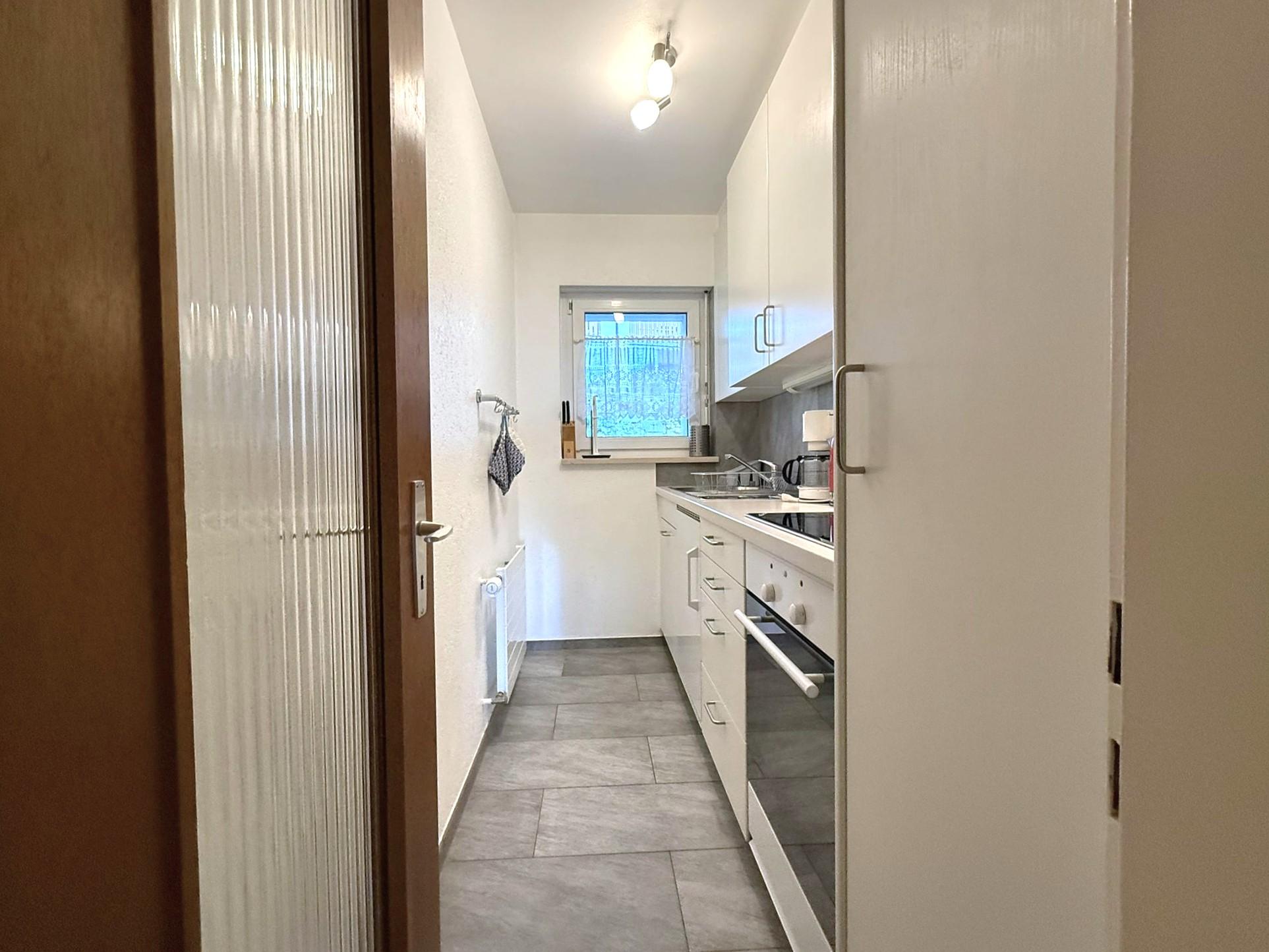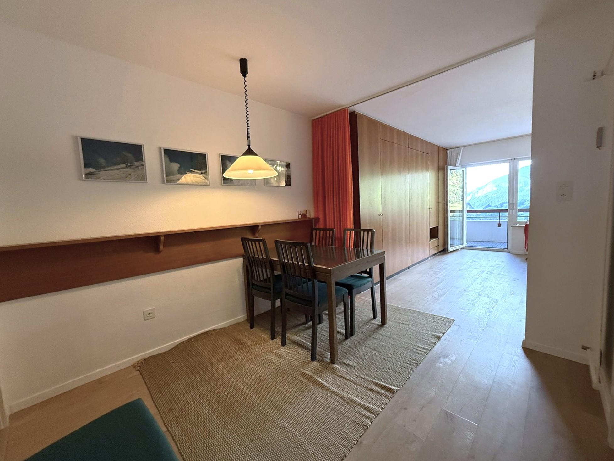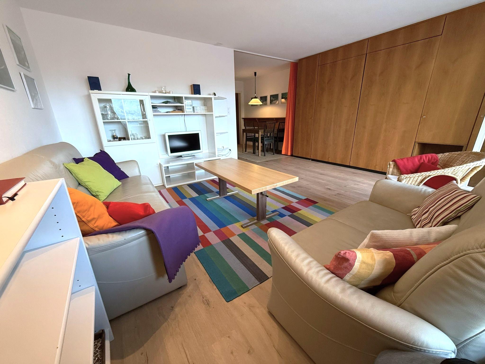 Appartement 2 pièces: séjour/salle à manger avec 2 lits, cuisine, 1 chambre à trois lits, bain/WC, balcon, TV, radio. Garage inclus. Appartement non fumeur.