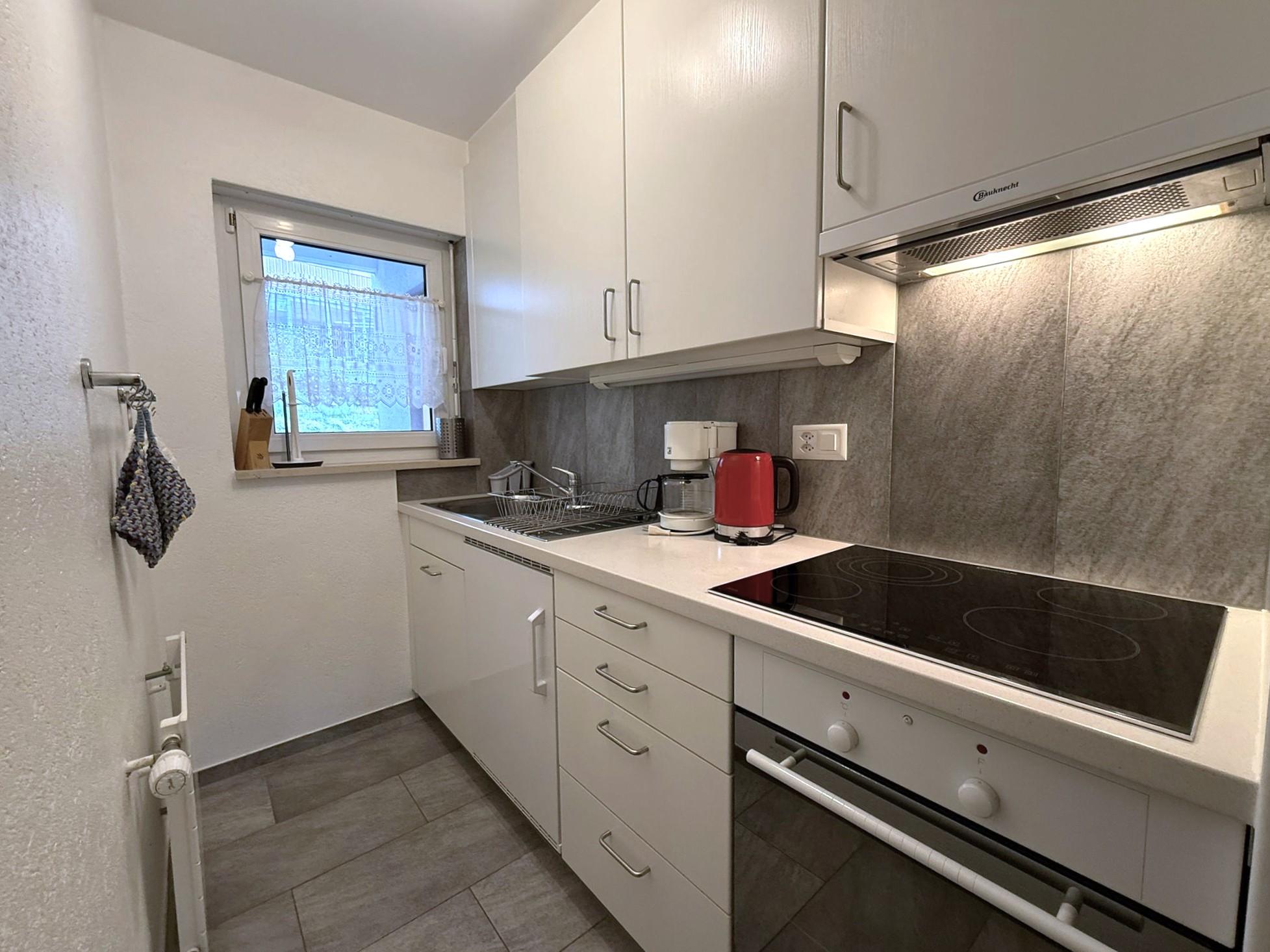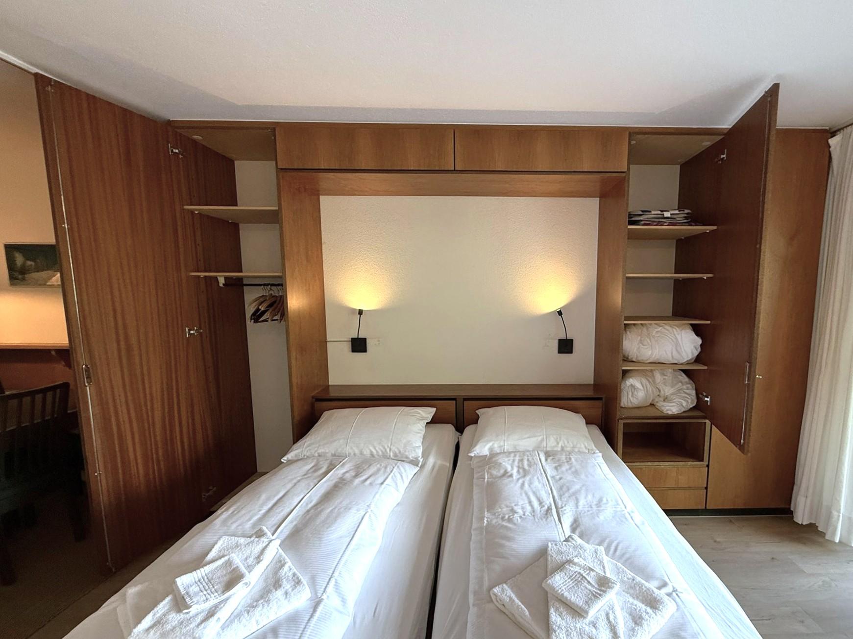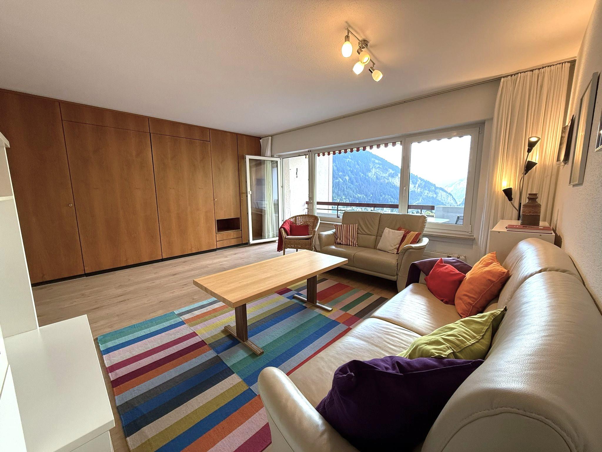 Appartement 2 pièces: séjour/salle à manger avec 2 lits, cuisine, 1 chambre à trois lits, bain/WC, balcon, TV, radio. Garage inclus. Appartement non fumeur.