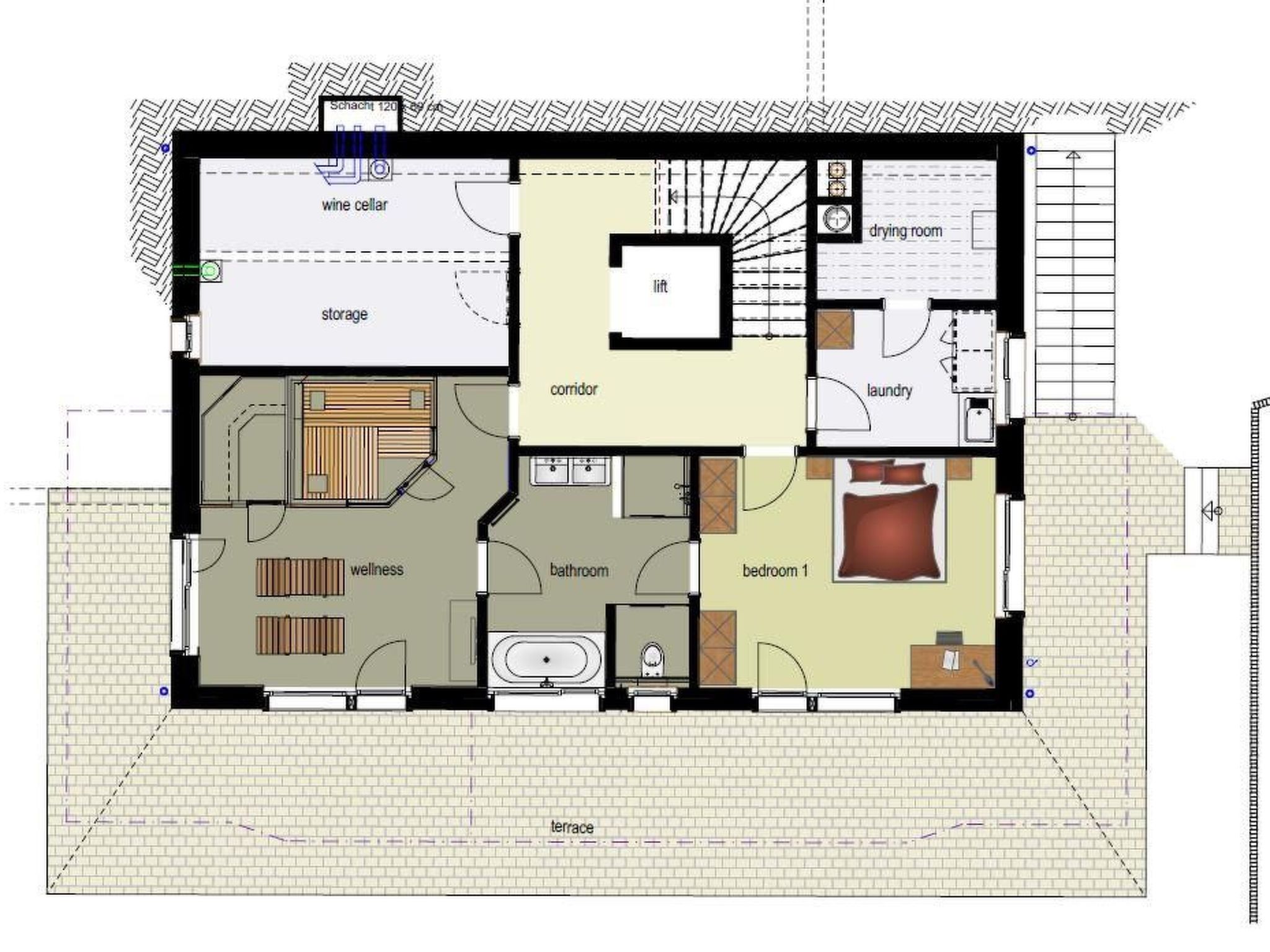 The 350m2 luxury chalet has everything you need for a relaxing holiday: five bedrooms with double bed, each with en-suite bathroom, and a lounge with sofa bed for two additional guests. The modern and well-equipped kitchen opens onto an exclusive dining/living area with fireplace. The SPA area with sauna and steam bath is on the ground floor. The terrace and balcony offer stunning views of the Eiger North Face.