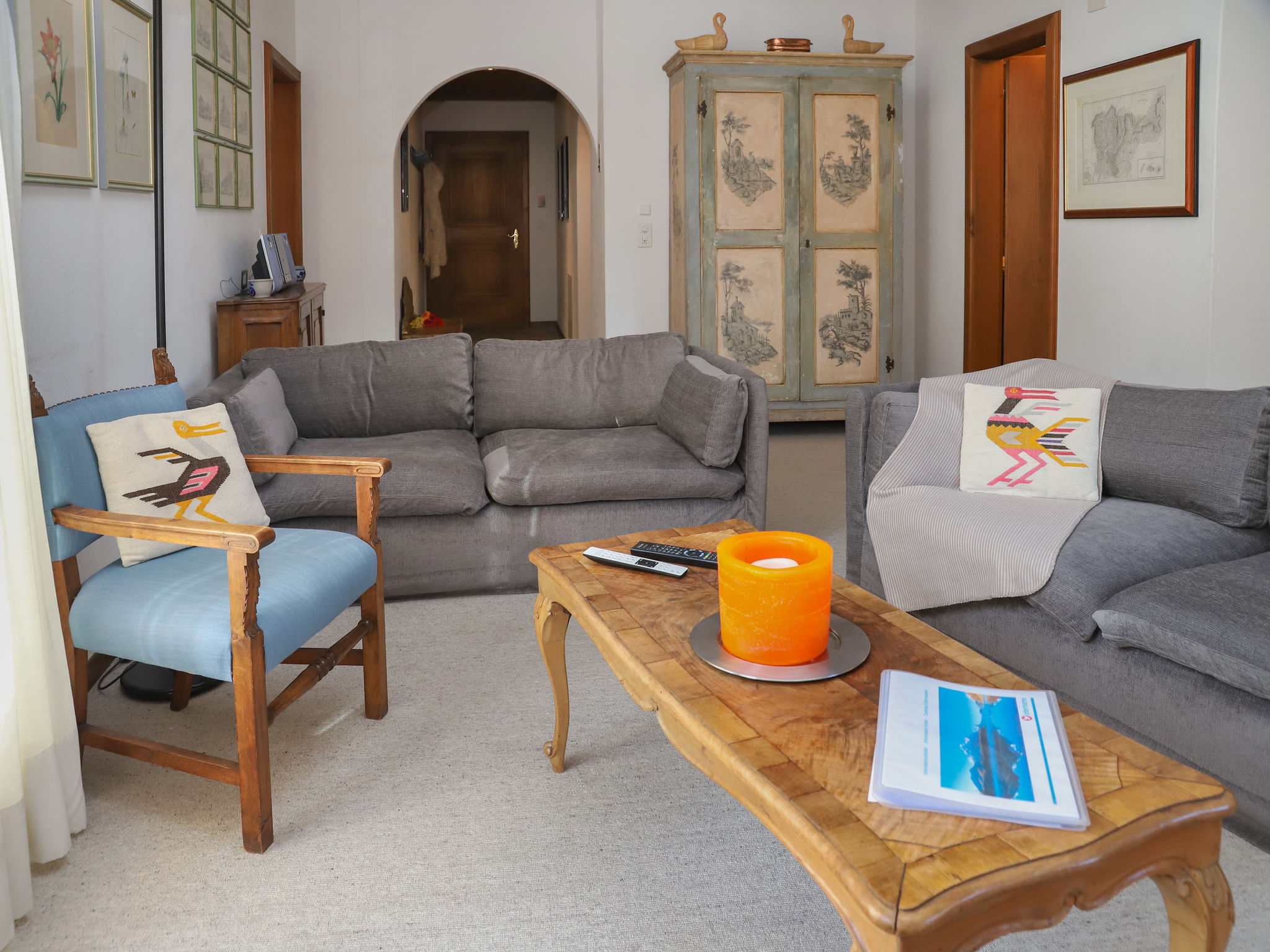 "Chesa Prasüra 10", apt 3 pièces 80 m2, sous le toit. Aménagement très confortable et plaisant: séjour/salle à manger avec cheminée, TV et radio. Sortie sur le balcon, orientée sud. 1 chambre avec 1 lit double (1 x 160 cm, longueur 200 cm). 1 chambre avec 2 lits (85 cm, longueur 180 cm), 1 x 2 lits superposés (85 cm, longueur 180 cm), bain/WC. Cuisine (4 plaques de cuisson, four, lave-vaisselle, grille-pain, bouilloire électrique, cafetière électrique, Capsules pour machine à café (Nespresso) (NON INCLUSES), appareil à raclette, service à fondue (fondue chinoise)). Bain/WC. Petit balcon. Meubles de terrasse. Vue partielle sur la localité. A disposition: sèche-cheveux. Internet (Connexion WIFI, gratuit). Garage No 68, hauteur 230 cm, largeur 220 cm. Veuillez noter: adapté(e) aux familles. Logement non-fumeur. Maximum 1 animal/ chien autorisé. Sans ascenseur.