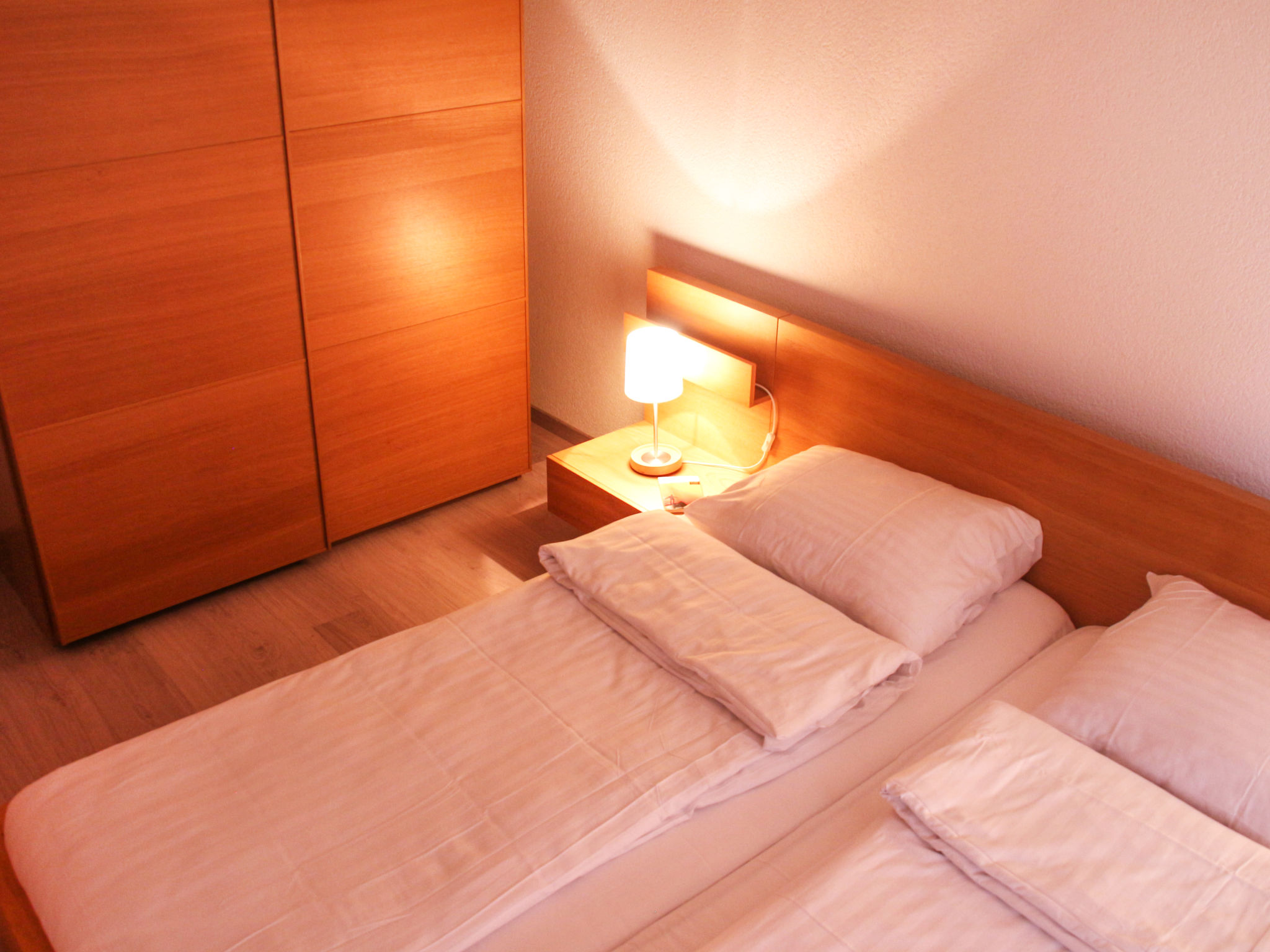 "Andromède 6", apt 2 pièces 53 m2. Aménagement confortable et plaisant: séjour/salle à manger avec 1 divan-lit double et TV (câblée) (écran plat), chaîne stéréo. Sortie sur le balcon. 1 chambre avec 1 lit double. Cuisine ouverte (four, lave-vaisselle, 4 plaques vitrocéramiques, micro-ondes, cafetière électrique, Capsules pour machine à café (Nespresso) (NON INCLUSES), service à fondue (fondue au fromage)). Douche/WC. Balcon. Mobilier de balcon. Belle vue sur les montagnes et les alentours. A disposition: sèche-cheveux. Internet (Connexion WIFI, gratuit). Veuillez noter: logement non-fumeur. Maximum 2 animaux/ chiens autorisés.