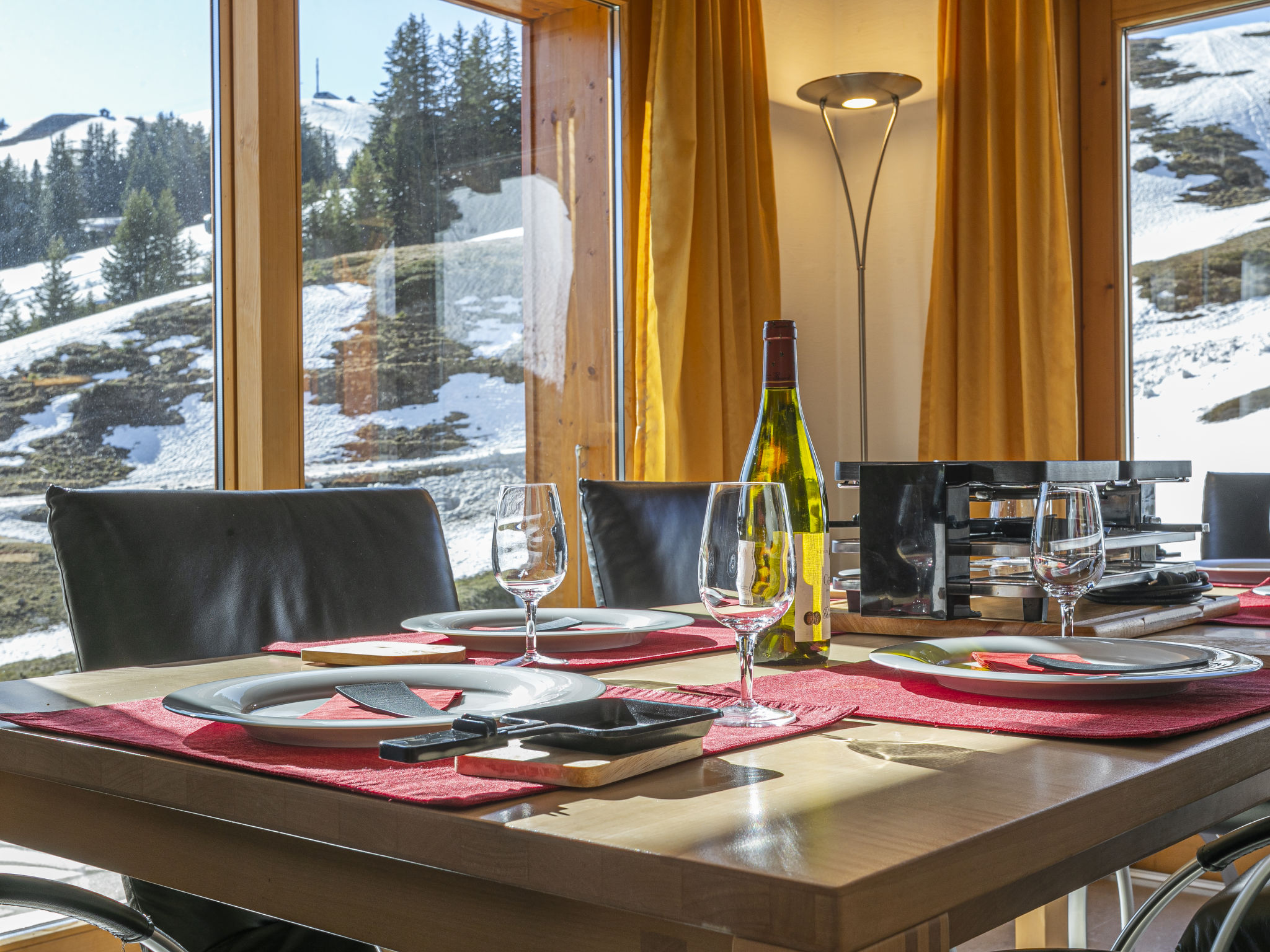"Martens", chalet 4 pièces 150 m2 sur 2 niveaux, situation sud-ouest. Aménagement luxueux et de bon goût: séjour/salle à manger avec baie vitrée avec cheminée et TV. Sortie sur la terrasse. 1 chambre avec 1 lit double (160 cm, longueur 200 cm), bain/WC. Sortie sur la terrasse. Cuisine ouverte (four, lave-vaisselle, 4 plaques vitrocéramiques, grille-pain, bouilloire électrique, micro-ondes, cafetière électrique, Capsules pour machine à café (Nespresso) (NON INCLUSES), appareil à raclette, service à fondue (fondue chinoise, fondue au fromage)). WC séparé. À l'étage supérieur: 1 chambre avec 1 lit double (160 cm, longueur 200 cm). 1 chambre avec 1 lit double (160 cm, longueur 200 cm). Galerie. Douche/WC. Très belle vue sur les montagnes, les pistes de ski, les alentours et la localité. A disposition: sèche-cheveux. Internet (Connexion WIFI, gratuit). Veuillez noter: logement non-fumeur. en hiver la route d'accès au chalet est fermée en raison de la neige. Multipass inclus en été.