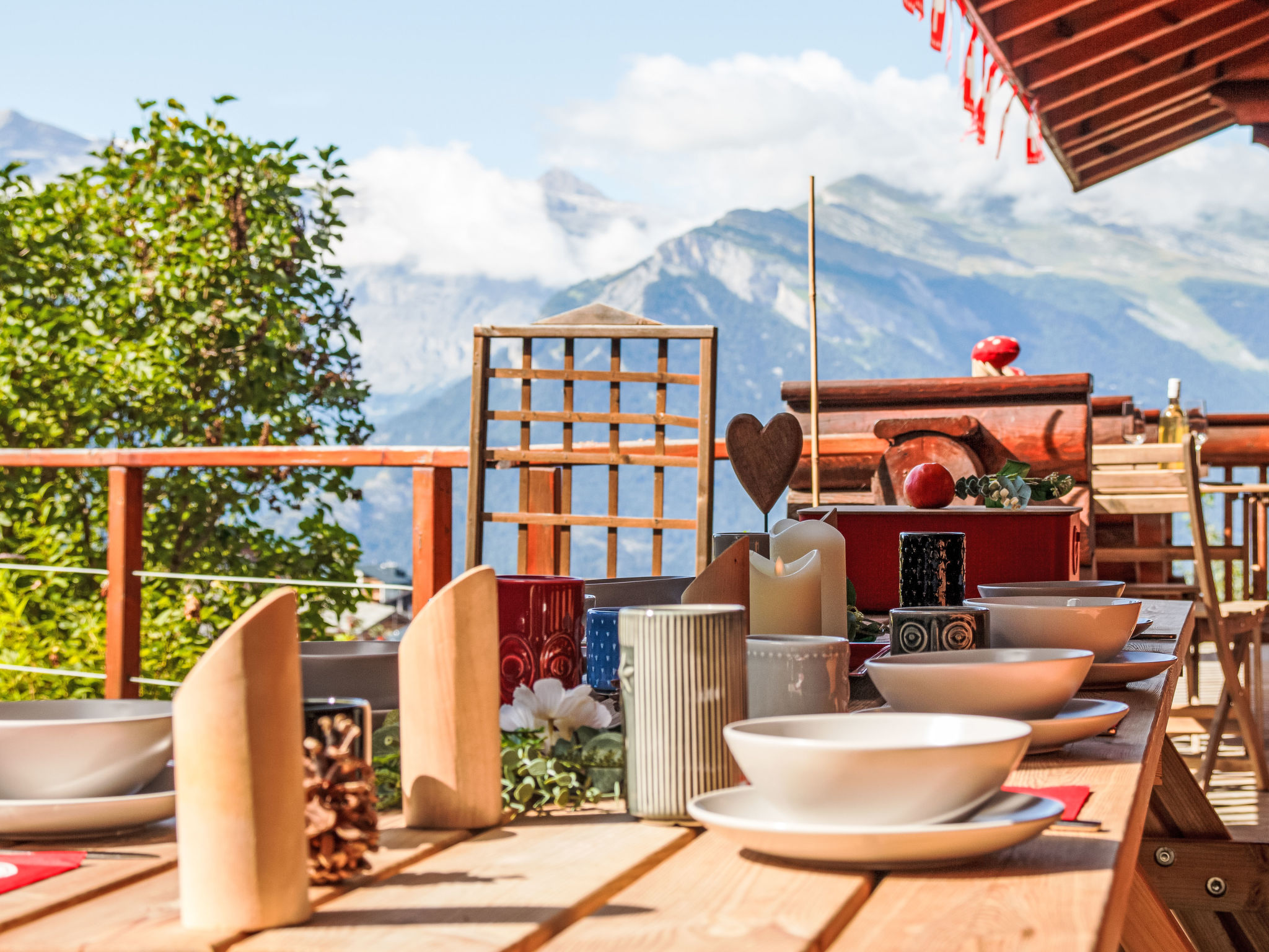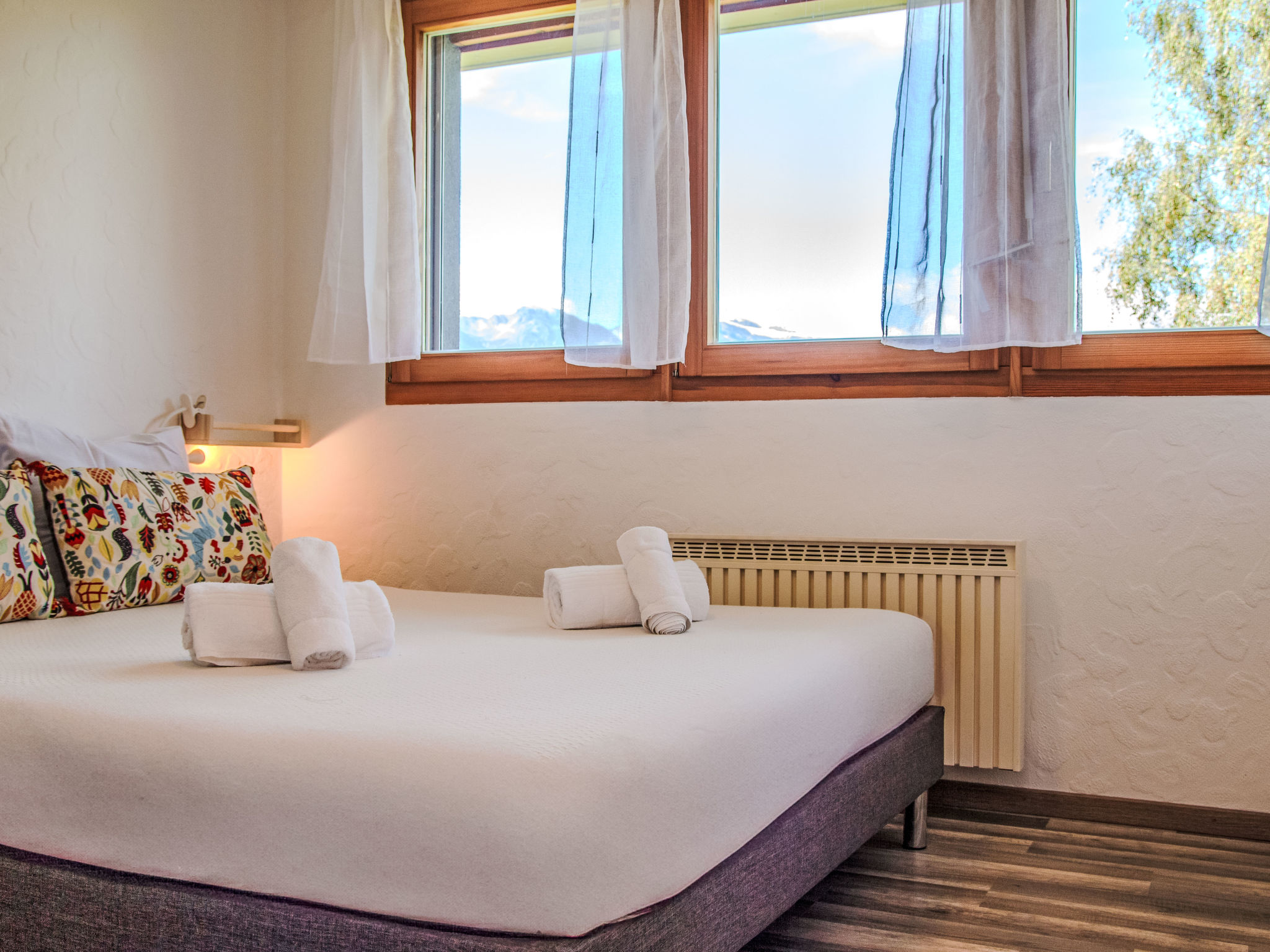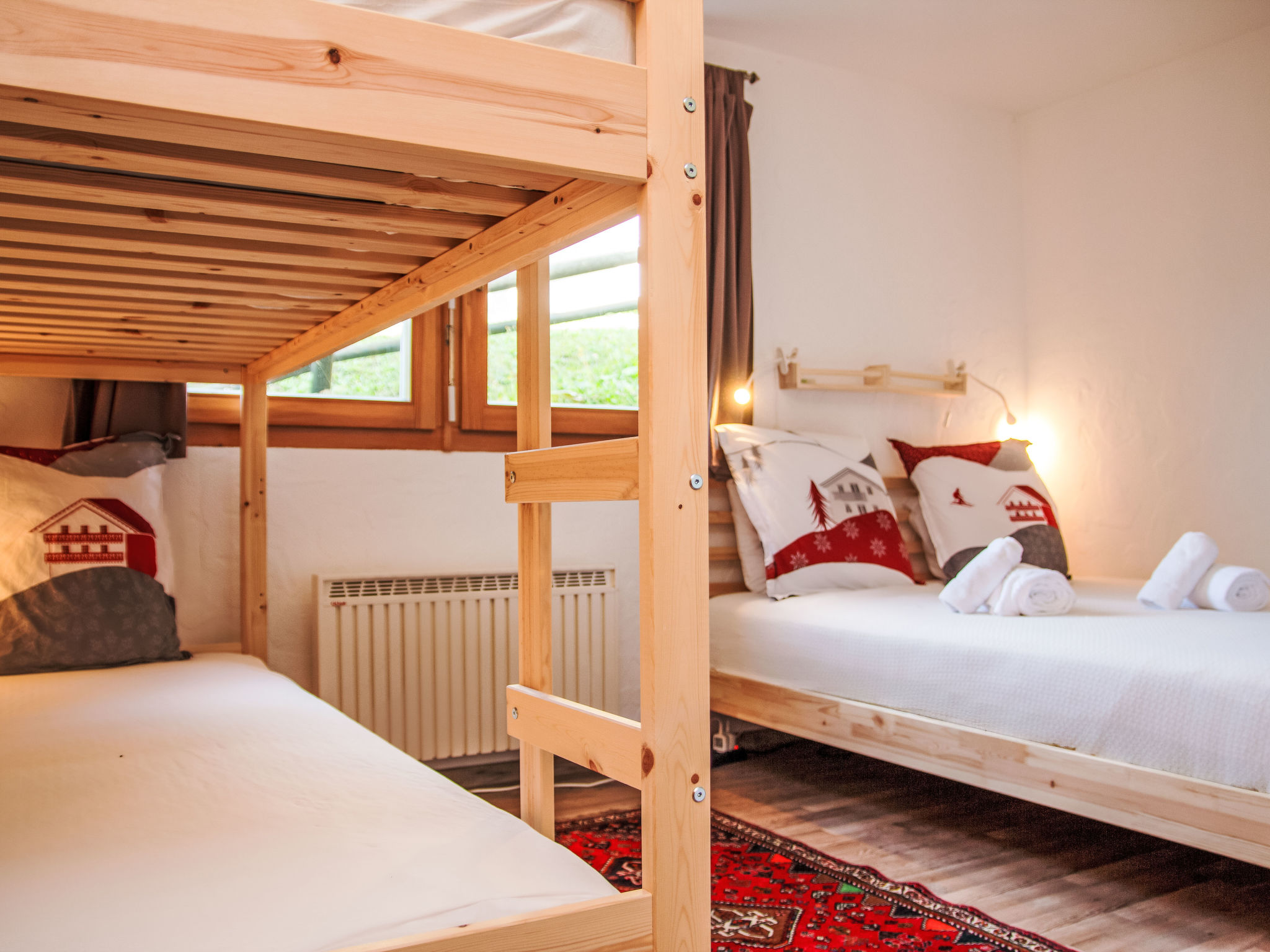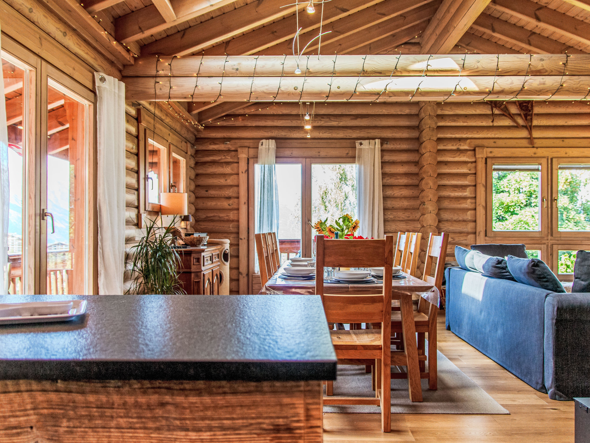 "Chalet Sept", chalet 5 pièces 150 m2 sur 2 niveaux, situation nord. Logement idéal pour 6 adultes + 2 enfants. Rénové en 2023, aménagement confortable et de bon goût: entrée avec douche/WC. Grand séjour/salle à manger avec poêle suédois et TV (câblée). Sortie sur la terrasse. Cuisine ouverte (four, lave-vaisselle, 4 plaques à induction, grille-pain, bouilloire électrique, congélateur, cafetière électrique, appareil à raclette, service à fondue (fondue au fromage)). Chauffage électrique. À l'étage inférieur: 1 chambre avec 1 x 2 lits superposés, 1 grand-lit. 1 chambre avec 1 grand-lit. 1 chambre avec 1 grand-lit avec bain/WC. Terrasse. Meubles de terrasse, barbecue, chaises longues (2). Très belle vue sur les montagnes. A disposition: lave-linge, sèche-linge, chaise haute pour enfant, lit bébé, sèche-cheveux. Internet (Connexion WIFI, gratuit). Place de parking (2 Voitures). Veuillez noter: logement non-fumeur. Maximum 1 animal/ chien autorisé.