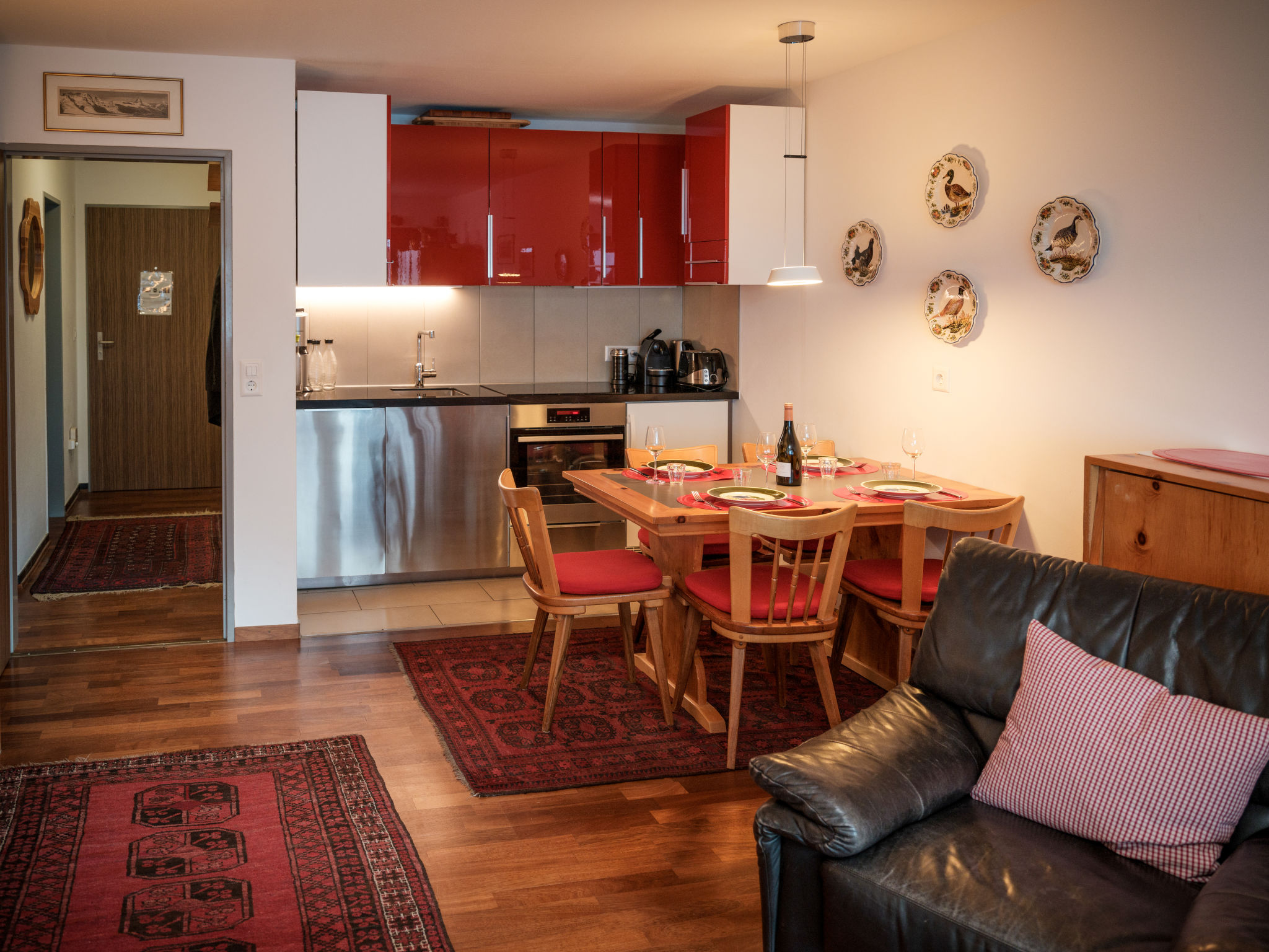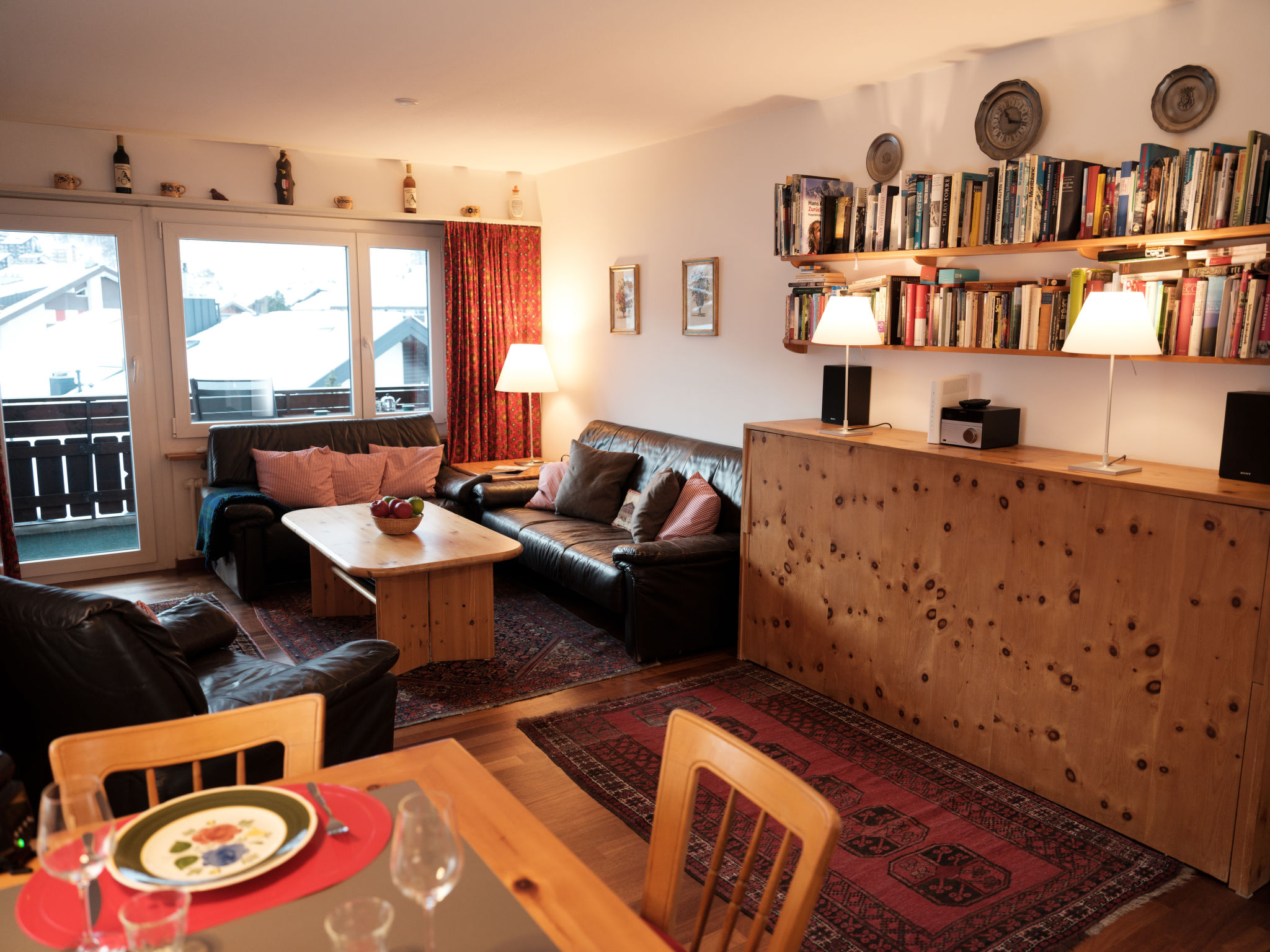 "Primavista", apt 2 pièces 76 m2 au 3ème étage. Aménagement confortable et agréable: séjour avec TV. Sortie sur le balcon, orientée sud. 1 chambre avec 1 lit double (1 x 180 cm, longueur 200 cm). Cuisine ouverte (four, lave-vaisselle, 4 plaques vitrocéramiques, grille-pain, bouilloire électrique, congélateur, cafetière électrique). Douche/WC. Chauffage. Grand balcon, situation sud. Mobilier de balcon. Très belle vue sur le cervin. A disposition: Internet (Connexion WIFI). Veuillez noter: logement non-fumeur.