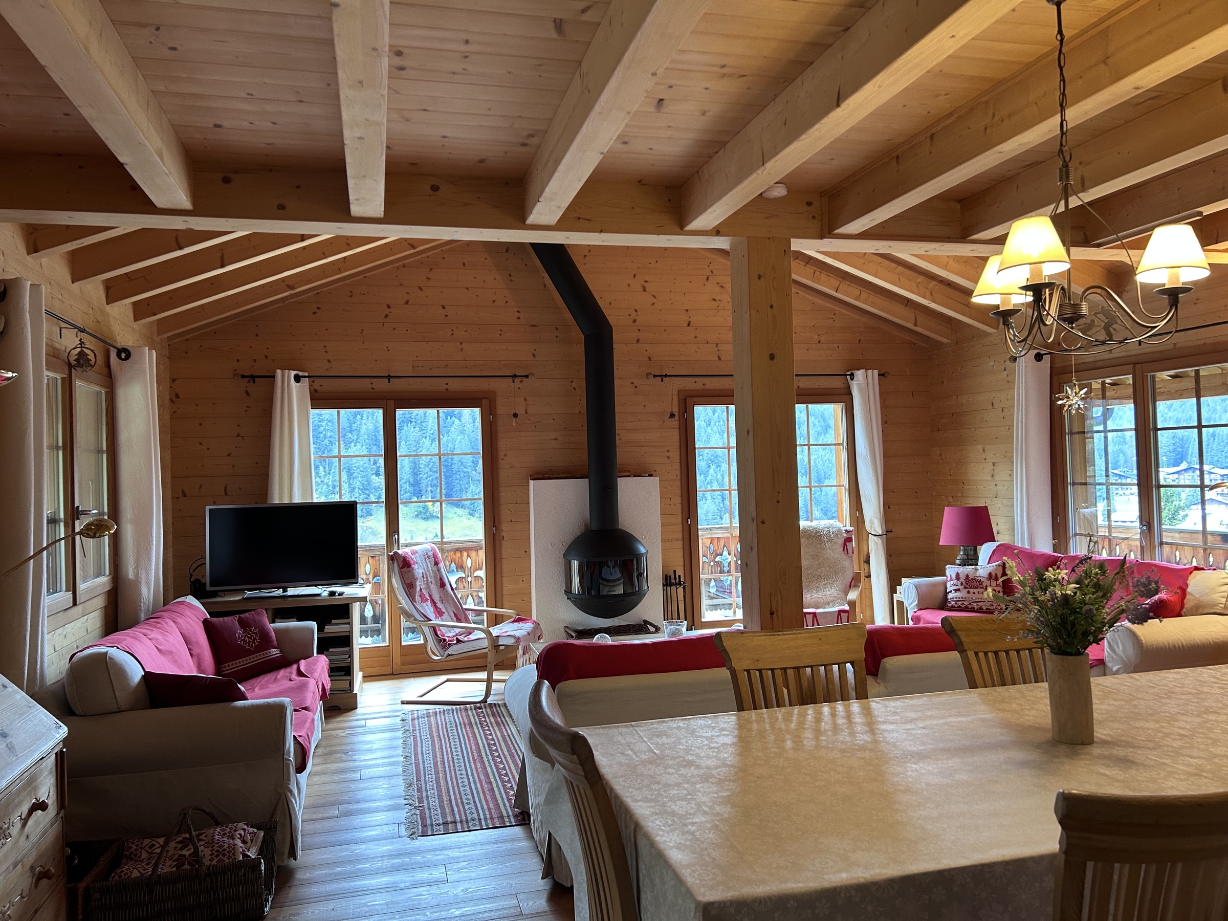 Chalet indépendant sur 3 étages - abri voiture (2 places) - Wifi - Buanderie Animaux interdits 1er étage : Entrée - 2 chambres - Salle de bain avec baignoire, douche et WC - Balcon Rez-supérieur : - Grand séjour avec télévision - Cuisine avec lave-vaisselle - WC - Grand balcon Rez : - 2 chambres - Salle de bain avec douche, WC - Grande terrasse Sud- Disposition des lits : - 1 chambre à 1 lit pour 2 personnes = 2 - 2 chambres à 2 lits 2 matelas pour 1 personne = 4 - 1 chambre à 2 lits 2 matelas pour 1 personne et 1 lit à étage pour 2 personnes= 4 Veuillez noter que l’accès au chalet se fait par une pente raide ; l’utilisation de pneus neige et/ou chaînes à neige est vivement recommandée.