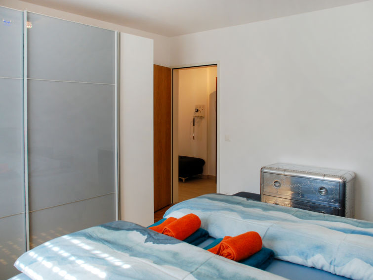 "Saleggi Apt. 20", apt 3 pièces 78 m2 au 4ème étage, situation sud-ouest. Spacieux et clair, aménagement confortable et moderne: grand séjour/salle à manger ouvert avec table pour les repas et TV (câblée) (écran plat), radio et lecteur CD. Sortie sur le balcon. 1 chambre double avec 1 lit double (2 x 90 cm, longueur 200 cm). 1 chambre avec 1 lit double (2 x 90 cm, longueur 200 cm). Grande cuisine ouverte (four, lave-vaisselle, 4 plaques vitrocéramiques, grille-pain, bouilloire électrique, cafetière électrique, Capsules pour machine à café (Delizio) (NON INCLUSES), service à fondue (fondue au fromage)). Douche/WC. Grand balcon 12 m2, situation sud et situation ouest. Mobilier de balcon. Très belle vue panoramique sur les montagnes et les alentours. A disposition: fer à repasser, chaise haute pour enfant, lit bébé jusqu'à 3 ans (en sus), sèche-cheveux. Internet (Connexion WIFI). Place de parking No 22 (couvert) près de la maison. Veuillez noter: logement non-fumeur. Maximum 2 animaux/ chiens autorisés. Extincteur. NL-00004318