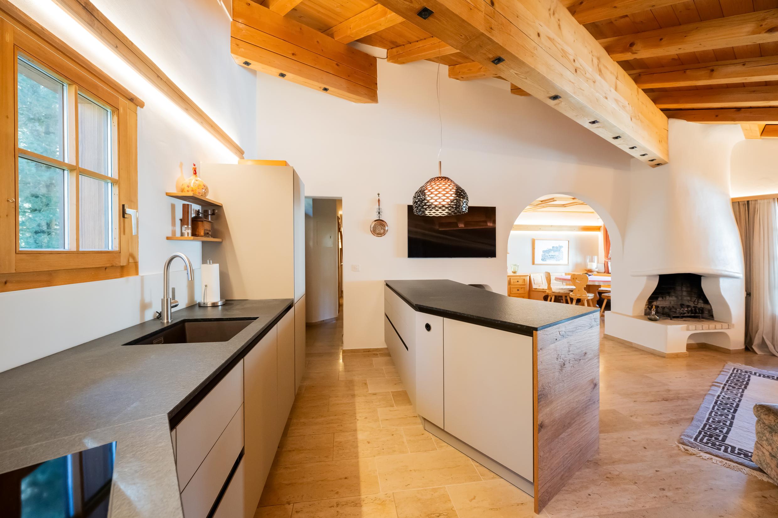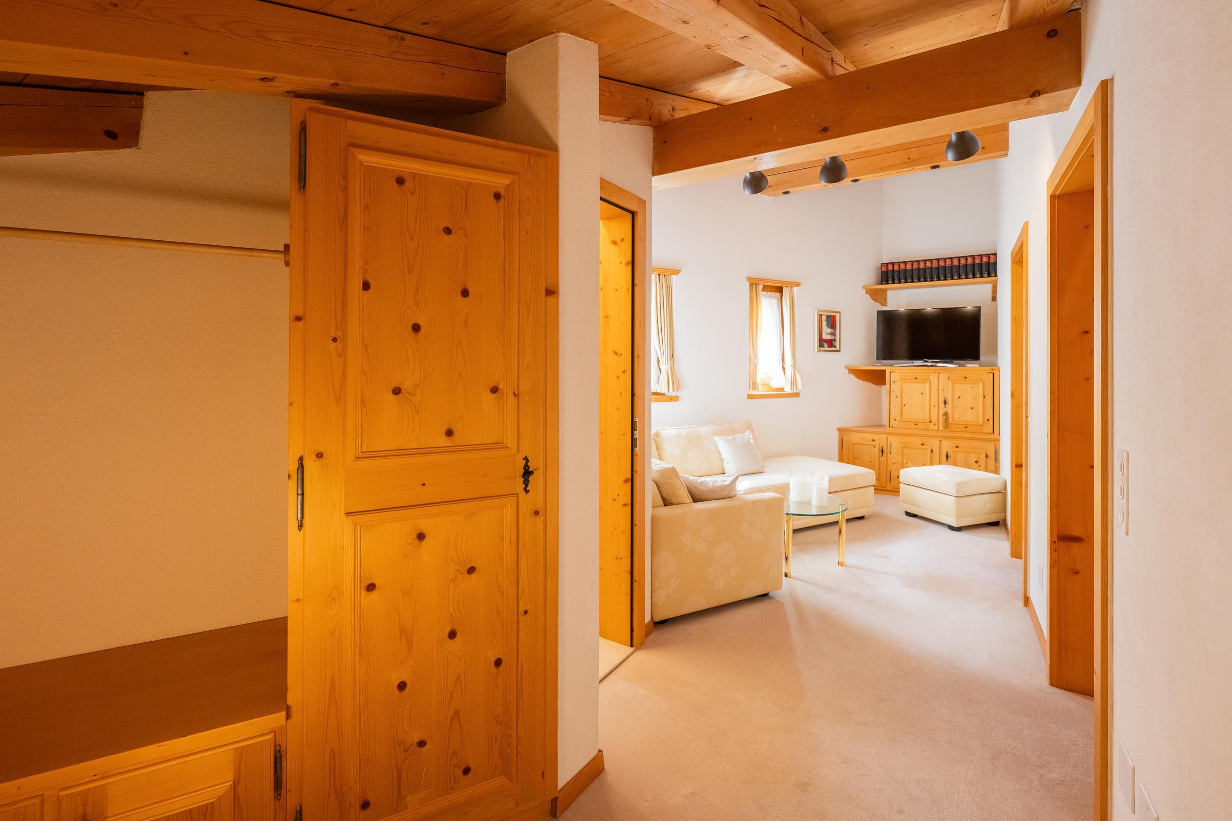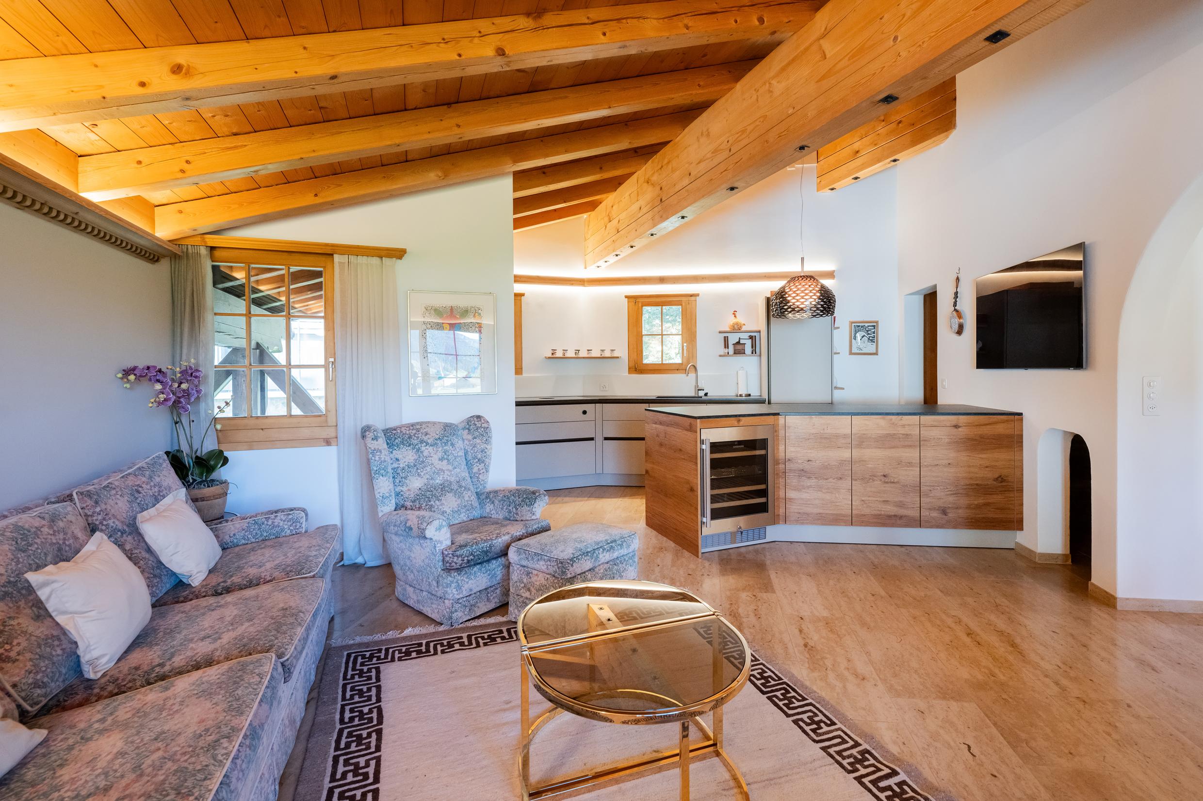 Appartement de 6 ½ pièces sur 2 étages au premier étage d'une maison de 3 familles ; idéal pour max. 7 personnes (env. 230m²) ; 2 places de parking dans un abri ; situation calme au milieu de la zone de détente Bünda (piste de ski de fond, téléski Bünda, chemin de randonnée d'hiver) accessible en quelques pas, idéal pour les familles ; 3 magnifiques balcons avec meubles de balcon ; 1 étage OG : nouvelle cuisine ouverte spacieuse (2023) avec cuisinière vitrocéramique (induction), hotte aspirante Bora, tous les appareils de cuisine nécessaires, lave-vaisselle, four, steamer Komi, réfrigérateur avec compartiment congélateur, bouilloire électrique, grille-pain, machine à café Nespresso ; Salon avec cheminée, TV, réfrigérateur à vin, coin salon spacieux avec canapé et fauteuils, salle à manger confortable avec banquette ; 2 chambres à coucher avec chacune 1 lit double (2 matelas) ; douche moderne avec WC et lavabo (2022) ; salle de bain avec WC, lavabo, baignoire ; 2ème étage avec ascenseur. Etage : séjour avec canapé, TV, WiFi, 1 chambre à coucher avec 1 lit double (2 matelas), 1 chambre à coucher avec 1 lit français ; salle de bain/WC ; 1 chambre à coucher avec 1 salle de bain/WC ; duvent nordique, linge de lit et de toilette, linges de cuisine ; appartement non-fumeur ; animaux domestiques ne sont pas autorisés !