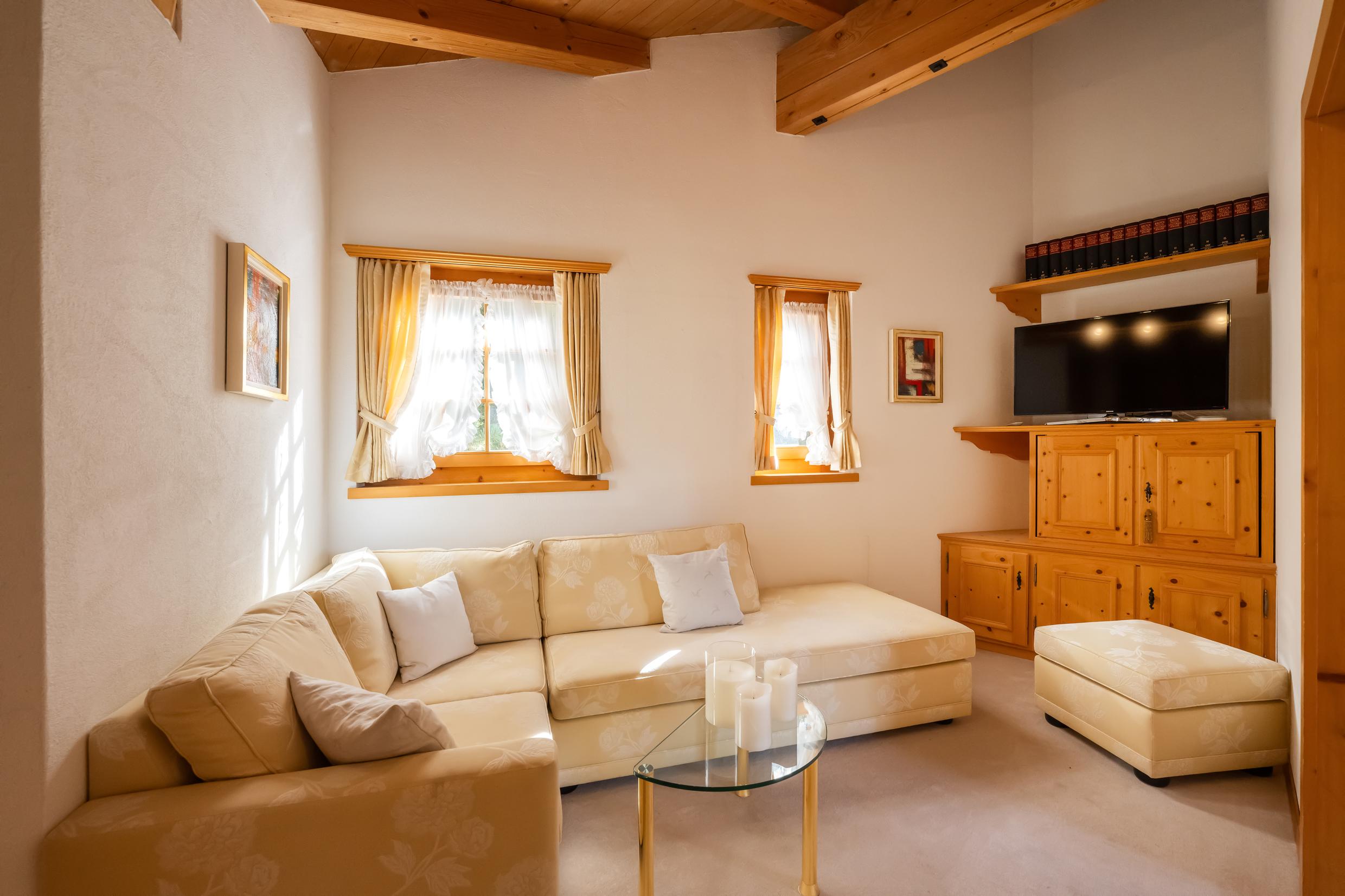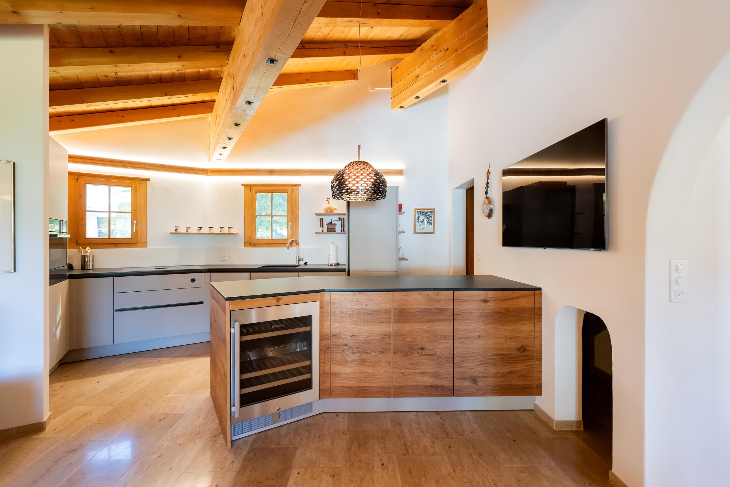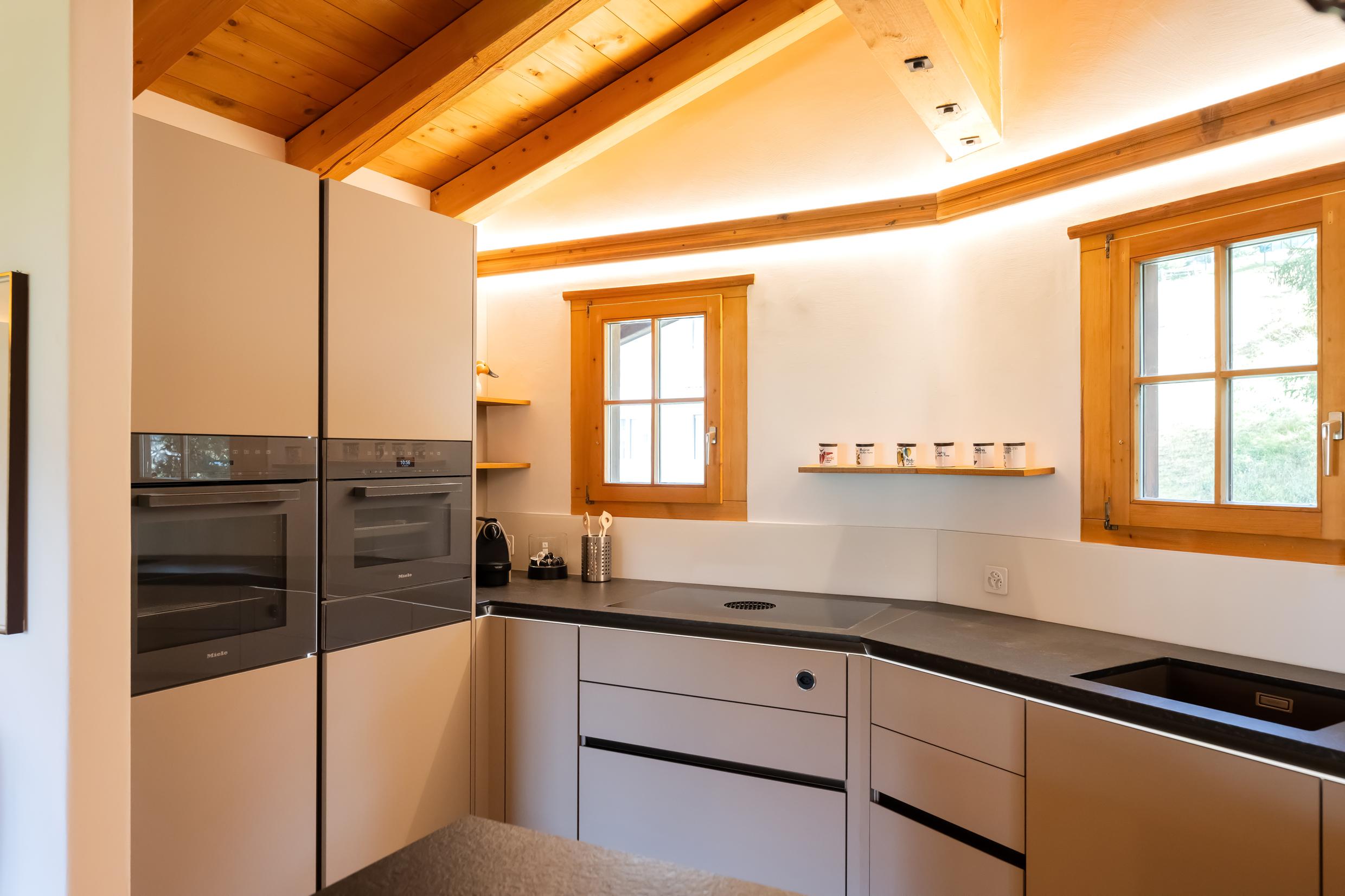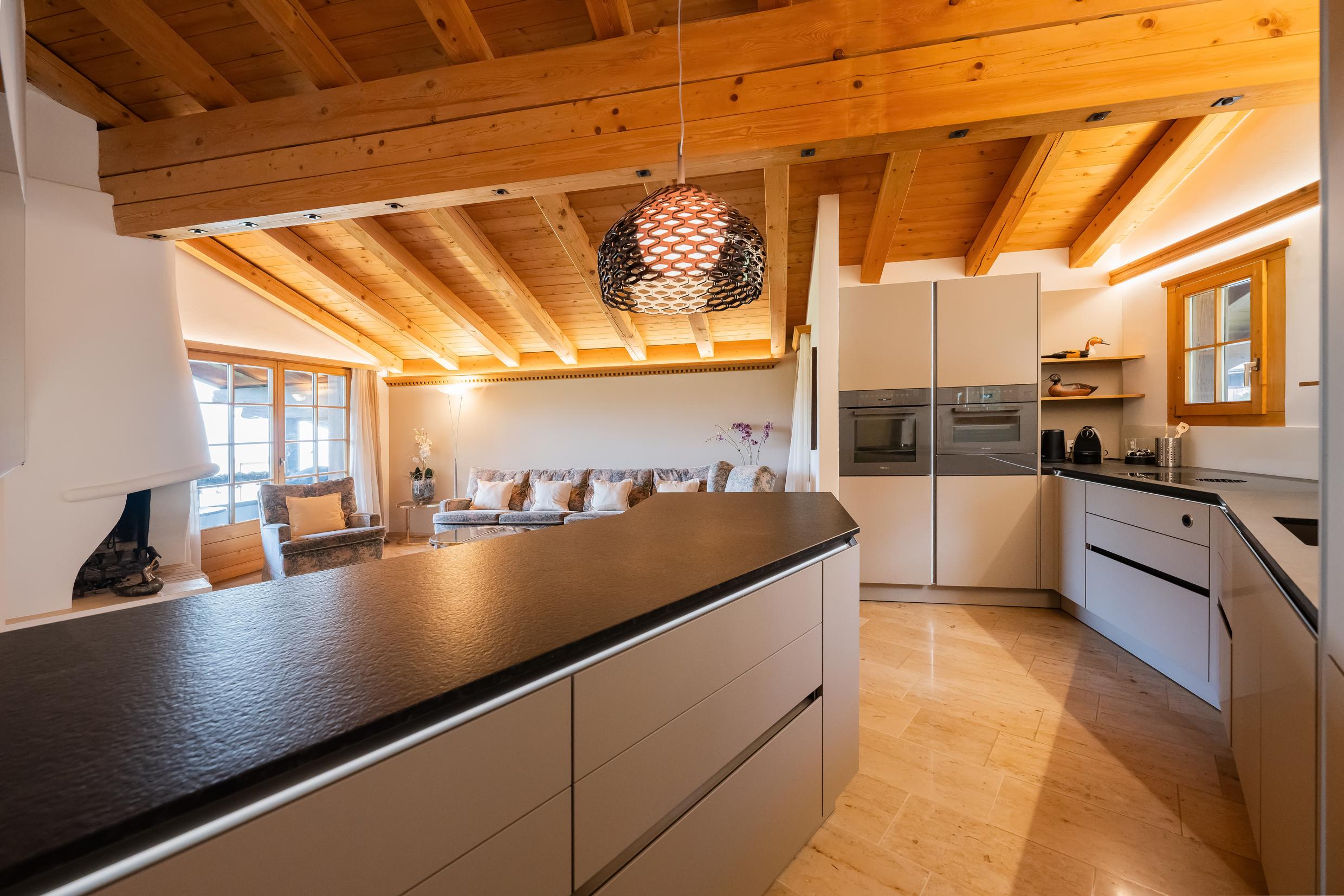 Appartement de 6 ½ pièces sur 2 étages au premier étage d'une maison de 3 familles ; idéal pour max. 7 personnes (env. 230m²) ; 2 places de parking dans un abri ; situation calme au milieu de la zone de détente Bünda (piste de ski de fond, téléski Bünda, chemin de randonnée d'hiver) accessible en quelques pas, idéal pour les familles ; 3 magnifiques balcons avec meubles de balcon ; 1 étage OG : nouvelle cuisine ouverte spacieuse (2023) avec cuisinière vitrocéramique (induction), hotte aspirante Bora, tous les appareils de cuisine nécessaires, lave-vaisselle, four, steamer Komi, réfrigérateur avec compartiment congélateur, bouilloire électrique, grille-pain, machine à café Nespresso ; Salon avec cheminée, TV, réfrigérateur à vin, coin salon spacieux avec canapé et fauteuils, salle à manger confortable avec banquette ; 2 chambres à coucher avec chacune 1 lit double (2 matelas) ; douche moderne avec WC et lavabo (2022) ; salle de bain avec WC, lavabo, baignoire ; 2ème étage avec ascenseur. Etage : séjour avec canapé, TV, WiFi, 1 chambre à coucher avec 1 lit double (2 matelas), 1 chambre à coucher avec 1 lit français ; salle de bain/WC ; 1 chambre à coucher avec 1 salle de bain/WC ; duvent nordique, linge de lit et de toilette, linges de cuisine ; appartement non-fumeur ; animaux domestiques ne sont pas autorisés !