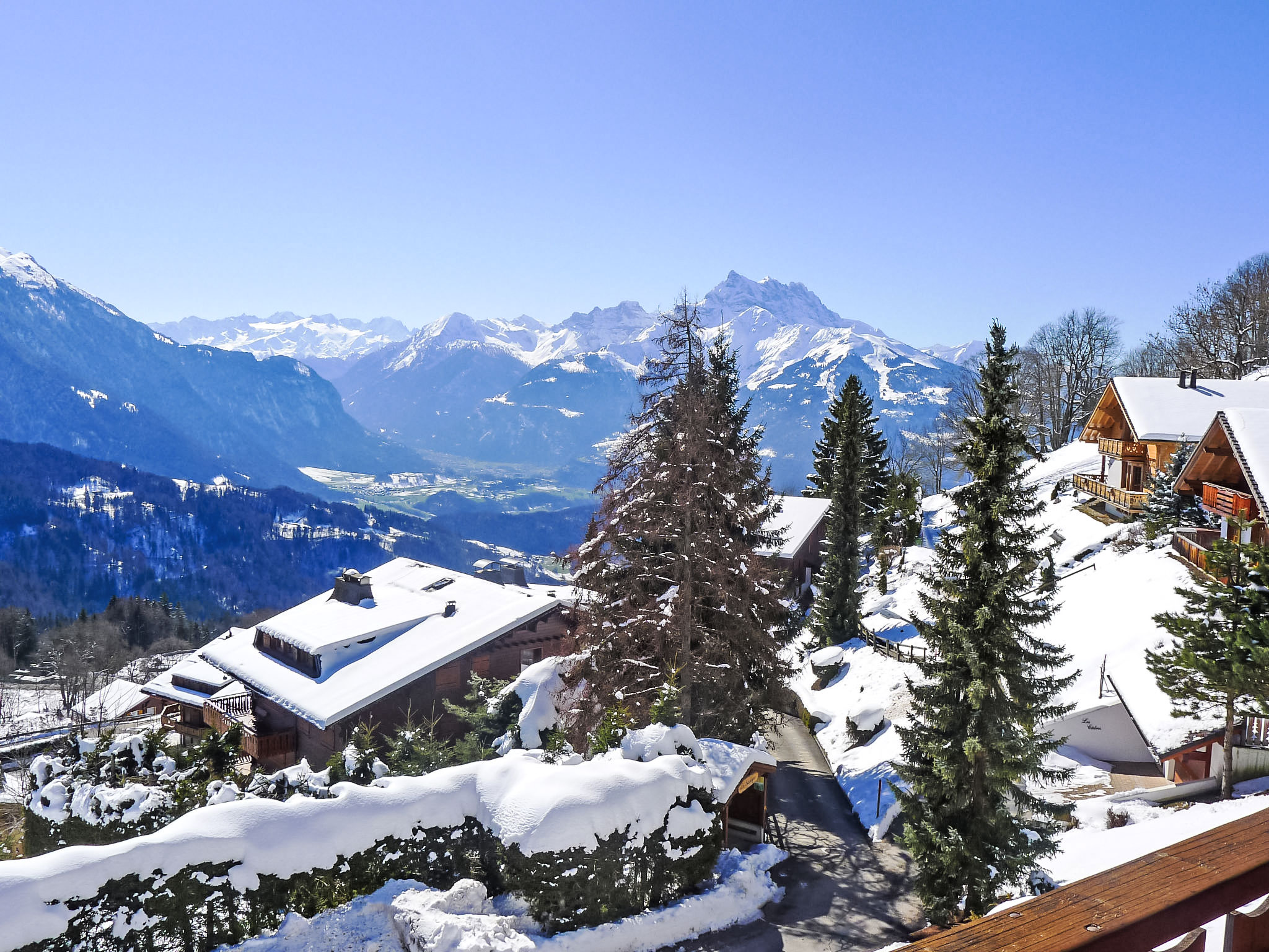 Chalet "Les Aiguille d'Argent", de 4 étages. En bordure de la localité, à 1.5 km du centre de Villars-sur-Ollon, situation tranquille, ensoleillée, surélevée, dans une impasse, orientée sud. Infrastructures de la Maison: sauna (en sus). Ascenseur, local pour les skis, chauffage central, lave-linge (en sus), sèche-linge (en commun, en sus). En hiver, merci de prévoir des chaînes. Magasins 1.7 km, magasin d'alimentation 600 m, restaurant 400 m, boulangerie 500 m, arrêt de bus, gare ferroviaire "Villars-sur-Ollon" 2.1 km, piscine couverte 1.6 km, centre thermal "Lavey-les-Bains" 19 km. Port plaisance 25 km, terrain de golf (18 trous) 8 km, tennis couvert 2.8 km, centre sportif 2.8 km, train de montagne 2.1 km, télécabine 1.8 km, pistes de ski 1.6 km. Arrêt du ski-bus 400 m, école de ski 2 km, école de ski d'enfants 2.8 km, patinoire 1.6 km. Service de navette gratuite desservant le domaine skiable Villars.