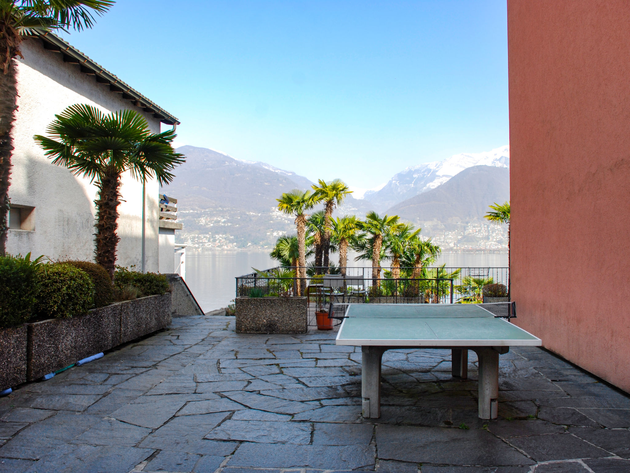 Vira à 16 km de Locarno: Grande petite résidence confortable "Vira Lago", de 4 étages, année de construction 1960, rénovée en 1998, environnée par les arbres et prés. 38 appartements dans la même entité. Dans la localité Vira, situation centrale, animée, ensoleillée, à 10 m du lac, accès direct à la plage, sur une route principale. En commun: terrain, beau jardin sur plusieurs niveaux entretenu, pré (clôturé), piscine couverte rectangulaire (10 x 6 m, profondeur 120 - 200 cm, disponibilité saisonnière: 15.Avr. - 30.Sep.) avec marches intérieures. Douche/WC dans l'espace piscine, douche extérieure, ping-pong, jardinet, pergola, meubles de jardin, espace baignade. Infrastructures de la Maison: salle fitness, solarium (en sus). Chauffage central, lave-linge (en sus), sèche-linge (en commun, en sus). Accès en voiture jusqu'à la maison. Parking public 10 m en sus. Restaurant 20 m, arrêt de bus "Vira paese" 25 m, gare ferroviaire "Vira" 1 km, plage de graviers 100 m, lac Lago Maggiore (Privatstrand) 70 m. Tennis 50 m, golf miniature 4.1 km, chemins de randonnées pédestres depuis la maison 10 m. Attractions à proximité: Monte Verità, Ascona, Madonna del Sasso, Locarno-Orselina, Castelli di Bellinzona, Falconeria Locarno, Ronco sopra Ascona, Isole di Brissago, Mercato Luino (IT). Les lacs connus sont facilement accessibles: Lago Maggiore, Lago di Lugano, Lago di Como. Région de randonnées: Alpe di Neggia, Indemini, Monti di Vira und Fosano, Monte Tamaro, Magadinoebene, Naturreservat.