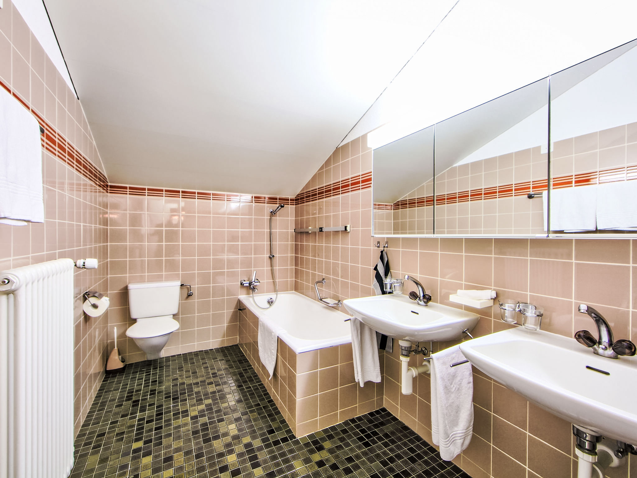 L'immeuble est situé à proximité immédiate du téléphérique du Torrent. Résidence "Ringstrasse (Utoring)". Dans la localité, à 500 m du centre, à 20 m du domaine skiable. Infrastructures de la Maison: bar, salon, ping-pong, salle de jeux, ascenseur, réduit pour bicyclettes, local pour les skis, chauffage central, lave-linge, sèche-linge (en sus). Service boulangerie et service boissons. Accès en voiture jusqu'à la maison (route de montagne). En hiver, merci de prévoir des chaînes, en hiver 4x4 recommandé. Place de parking près de la maison, parking public couvert à 50 m, en sus. Magasin d'alimentation, supermarché, restaurant 500 m, arrêt de bus "Leukerbad, Bristol" 250 m, piscine 500 m, centre thermal 300 m. Tennis 500 m, téléphérique, télécabine, remontées mécaniques, pistes de ski 20 m. Piste de luge, ski de fond 500 m, patinoire 1 km. Les domaines skiables de renommée sont facilement accessibles: Leukerbad Torrent 20 m. Région de randonnées: Gemmi 1 km. La maison se situe sur le versant boisé sud-ouest, directement à côté du téléphérique du Torrent. Seulement un petit escalier sépare la maison de la station en aval. Parking : hiver : place de parking pour 35CHF/semaine, box (garage) pour 70CHF/semaine, été : place de parking gratuite, box (garage) pour 35CHF/semaine. La location comprend la "Leukerbad Plus Card". Celle-ci permet l'utilisation gratuite du bus "Ringjet", l'accès gratuit au domaine de ski pour débutants "Snowpark Sportarena (Erli)", l'accès gratuit au centre sportif (badminton, tennis, squash, billard, tennis de table, patin à glace, football, futsal, mini-golf, etc), 15% de réduction sur le prix d'achat d'un pass pour le ski et la natation. Et 10% de réduction sur les abonnements et pass pour accéder aux thermes et emprunter les trains de montagne.