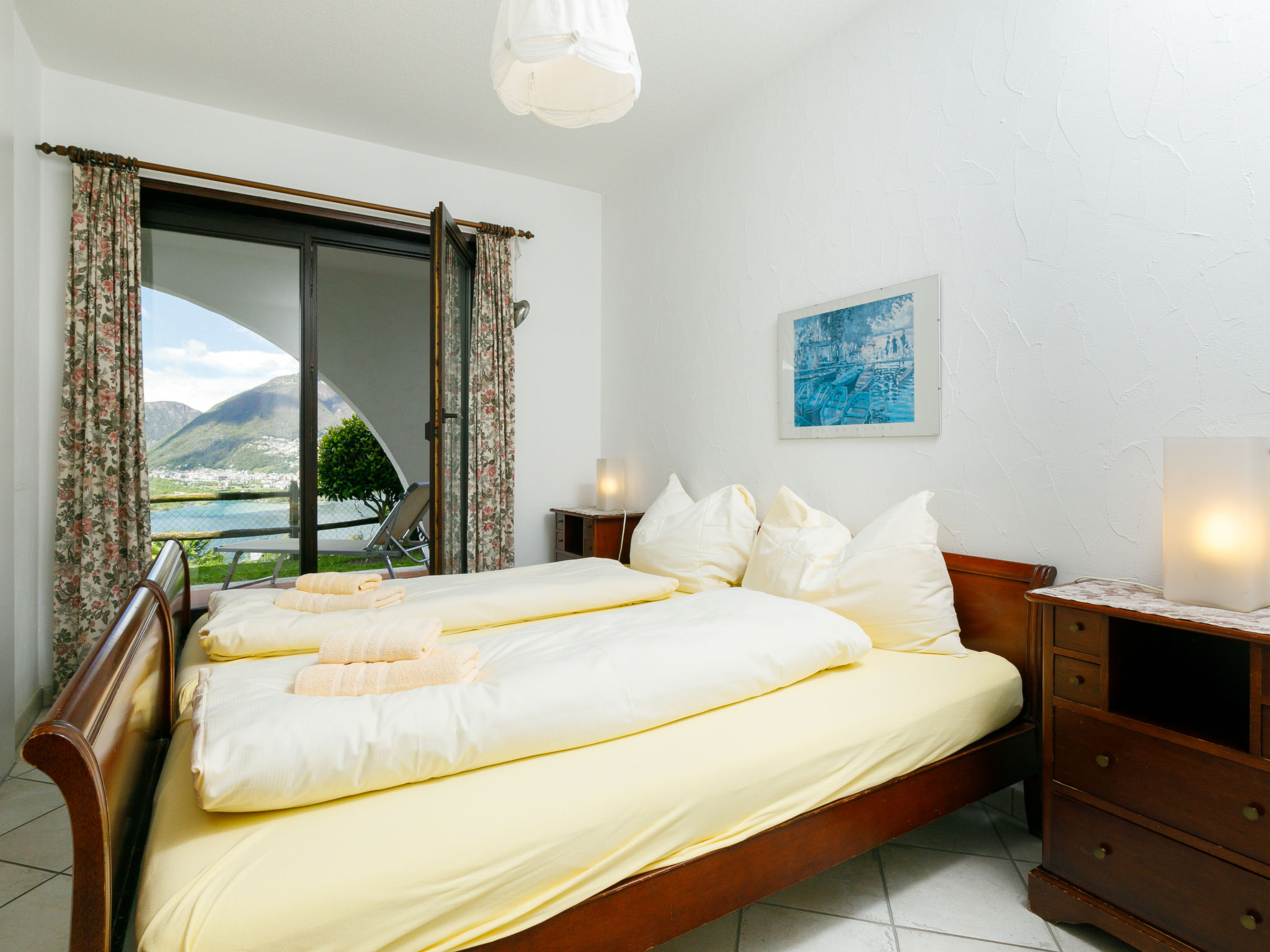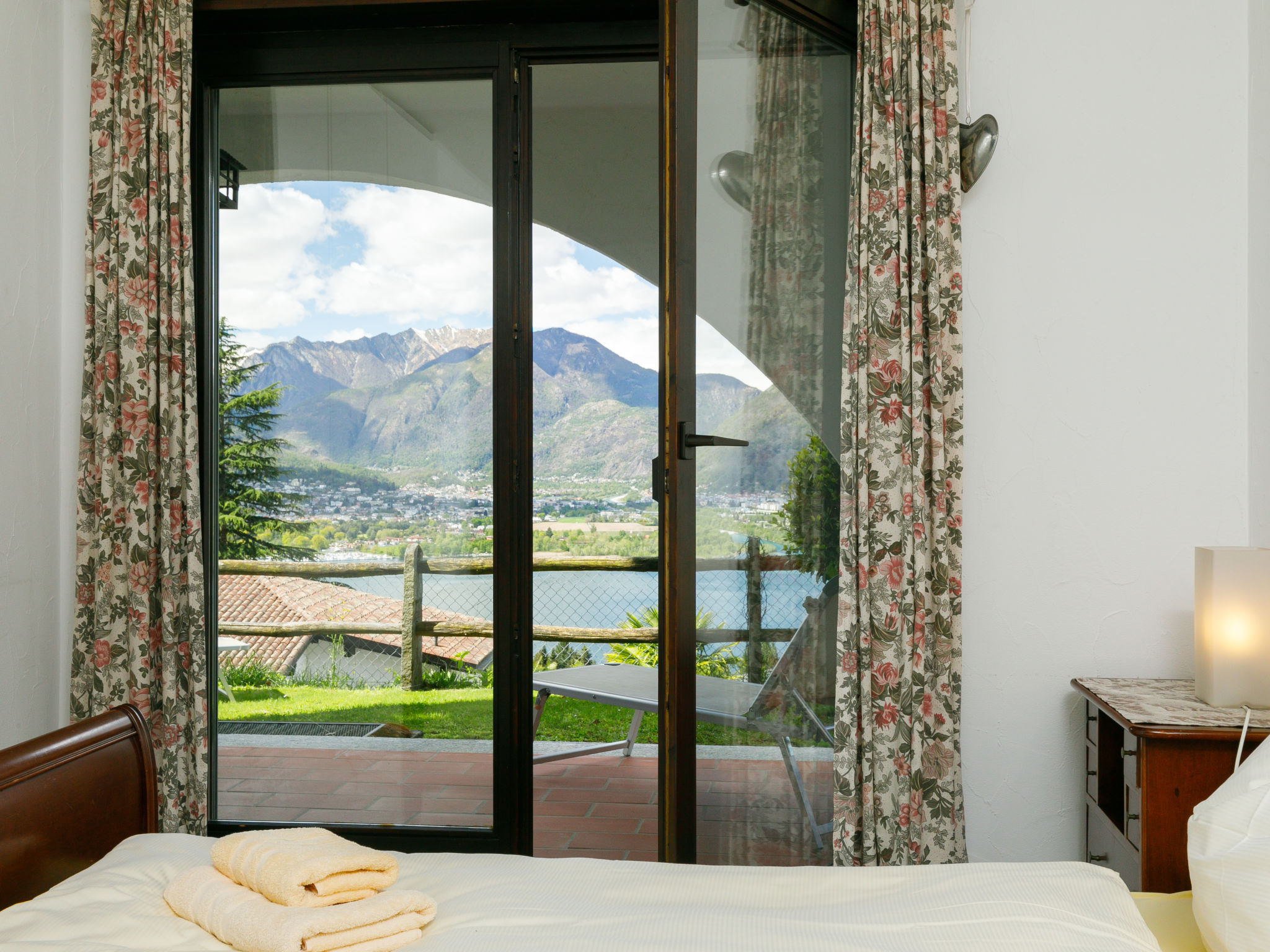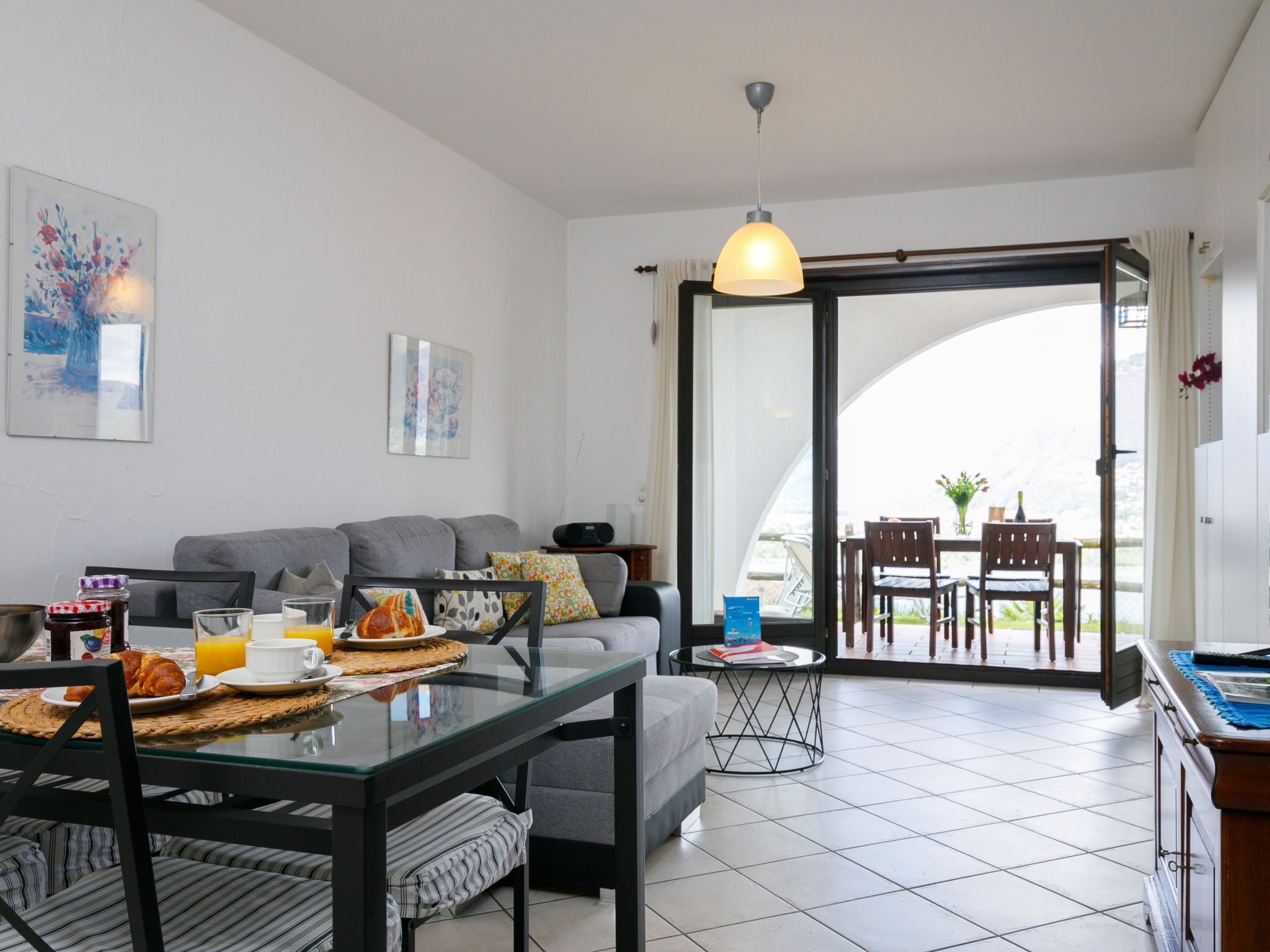 "Residenza Miralago Apt. B13", apt 2 pièces 73 m2, situation sud-ouest. Clair, aménagement confortable et plaisant: séjour/salle à manger ouvert avec table pour les repas et TV (satellite) (écran plat). Sortie sur la terrasse. 1 chambre avec 2 lits (90 cm, longueur 200 cm). Sortie sur la terrasse. Petite cuisine (4 plaques de cuisson, four). Douche/WC. Chauffage. Jardinet partiellement couvert, situation sud et situation ouest. Meubles de terrasse. Très belle vue panoramique sur le lac, les montagnes et les alentours. Veuillez noter: logement non-fumeur. NL-00003588