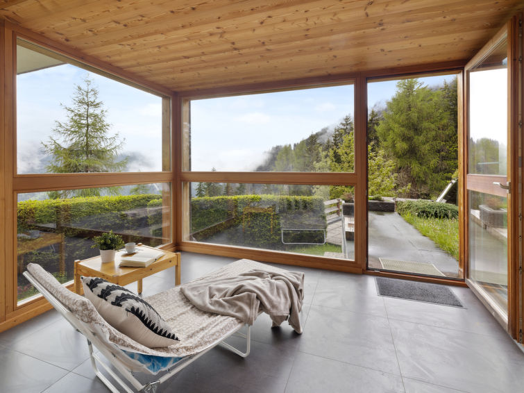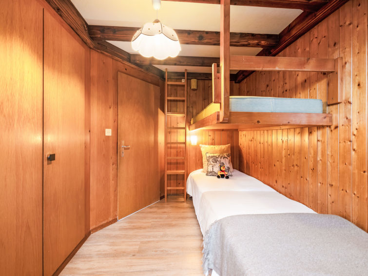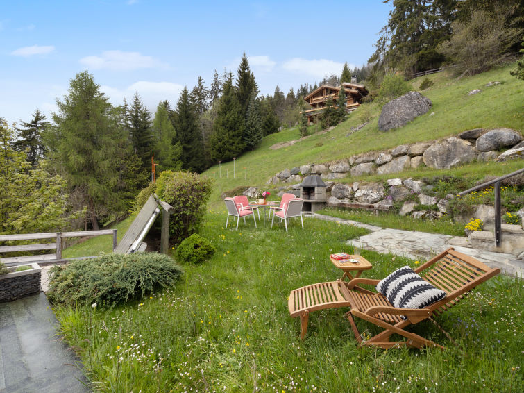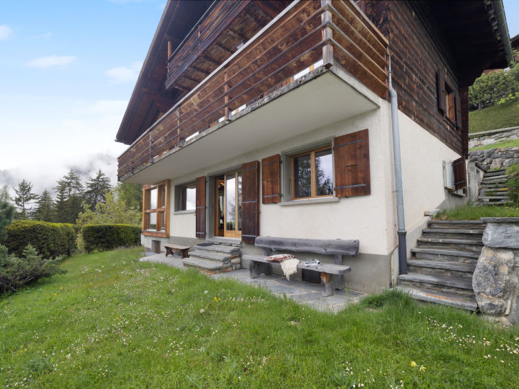 "Haimavati", apt 3 pièces 60 m2, au rez-de-chaussée, situation sud. Partiellement rénové en 2019, aménagement fonctionnel et agréable: séjour/salle à manger. Sortie sur le jardin. 1 chambre avec 1 grand-lit (1 x 160 cm, longueur 200 cm). 1 chambre avec 2 lits (90 cm, longueur 200 cm). Coin cuisine (four, 3 plaques vitrocéramiques, micro-ondes, service à fondue (fondue au fromage)). Salle de bains. Petit jardin. Meubles de terrasse, barbecue, jardin d'hiver. Vue panoramique sur les montagnes et la vallée. A disposition: Internet (Connexion WIFI, gratuit). Veuillez noter: logement non-fumeur.