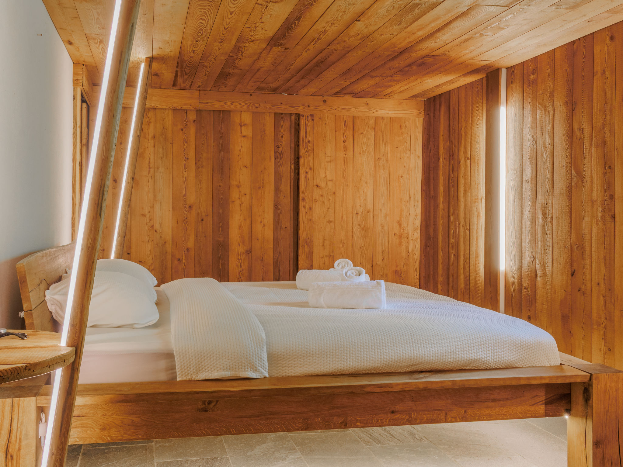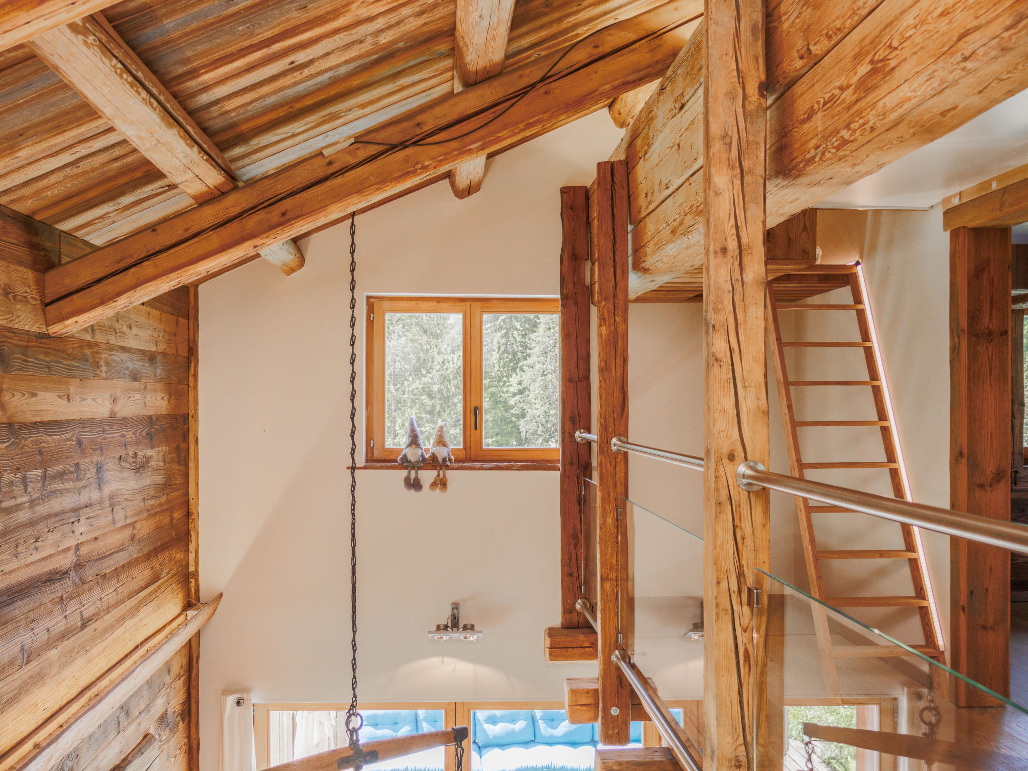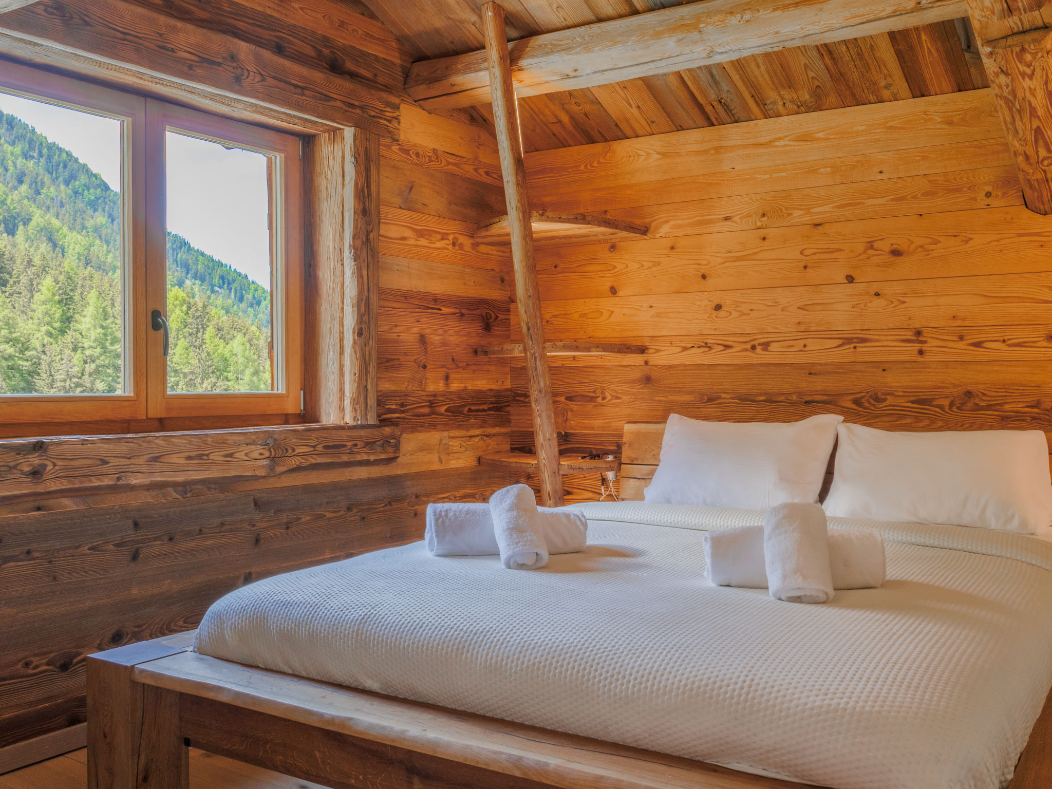 "Chalet Gaea", chalet 5 pièces 140 m2 sur 3 niveaux, situation nord-est. Logement idéal pour 6 adultes + 3 enfants. Partiellement mansardé, aménagement très confortable et agréable: entrée. Séjour/salle à manger avec poêle suédois et Home cinéma. Sortie sur la terrasse. Cuisine ouverte (four, lave-vaisselle, 4 plaques à induction, grille-pain, bouilloire électrique, micro-ondes, congélateur, cafetière électrique, Capsules pour machine à café (Nespresso) (NON INCLUSES), appareil à raclette, service à fondue (fondue au fromage)). Bain/douche/WC. À l'étage inférieur: 1 chambre avec 1 grand-lit (180 cm, longueur 200 cm), bain/douche/WC. À l'étage supérieur: 1 chambre avec 1 lit (90 cm, longueur 200 cm), 1 grand-lit (160 cm, longueur 200 cm). (échelle) petite galerie mansardée, ouverte, hauteur plafond 120 - 145 cm avec 1 lit (90 cm, longueur 200 cm). 1 chambre, sans armoire avec 1 divan-lit double (140 cm, longueur 200 cm). Sous le toit: (échelle) galerie mansardée, ouverte, hauteur plafond 48 - 135 cm avec 1 lit (90 cm, longueur 200 cm). Grande terrasse. Meubles de terrasse, barbecue, chaises longues. Très belle vue sur les montagnes. A disposition: lave-linge, sèche-linge, sèche-cheveux. Internet (Connexion WIFI, gratuit). Place de parking (3 Voitures). Veuillez noter: non adapté aux enfants de moins de 8 ans. Logement non-fumeur. 2 braséros dont un couvert. Au lieu d'une chambre fermée, des espaces de couchage sont situés dans une zone ouverte (galerie, alcôve...).