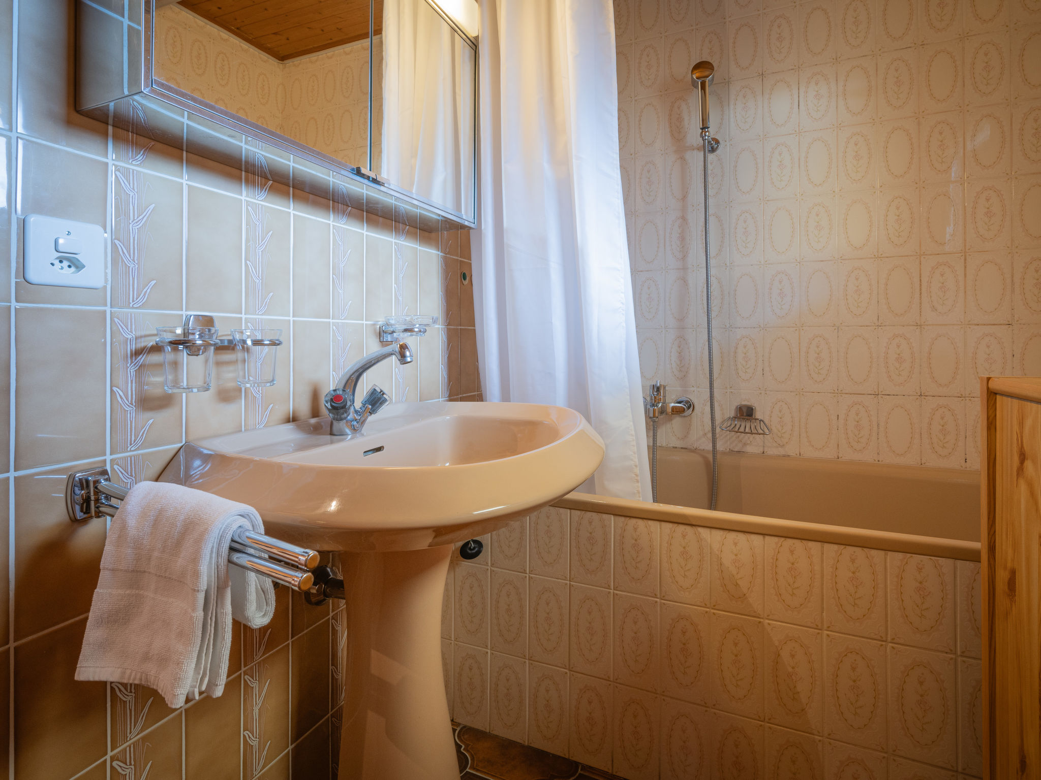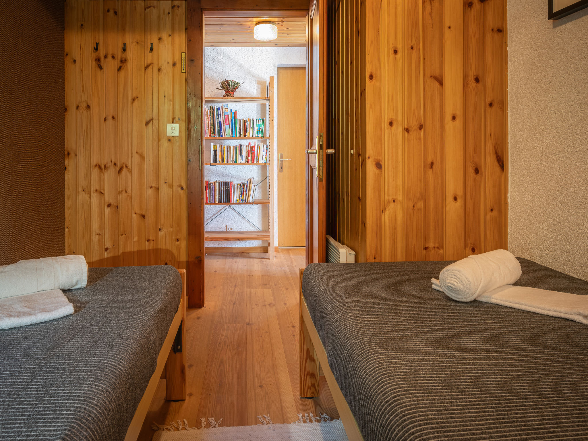 "Mélèze", apt 3 pièces au rez-de-chaussée, situation sud-ouest. Aménagement confortable: entrée. Séjour/salle à manger avec 1 divan-lit (130 cm), cheminée, TV (câblée), chaîne stéréo et DVD. Sortie sur le balcon. 2 chambres, chaque chambre avec: 2 lits (90 cm, longueur 200 cm). Cuisine ouverte (4 plaques de cuisson, four, lave-vaisselle, cafetière électrique, Capsules pour machine à café (Nespresso) (NON INCLUSES), appareil à raclette, service à fondue (fondue chinoise, fondue au fromage)). Bain/WC. Meubles de terrasse, barbecue (portable), chaises longues (2), réduit. Très belle vue sur les montagnes. A disposition: lave-linge, sèche-linge. Internet (Connexion WIFI, gratuit). Veuillez noter: logement non-fumeur. Maximum 1 animal/ chien de petite taille autorisé.