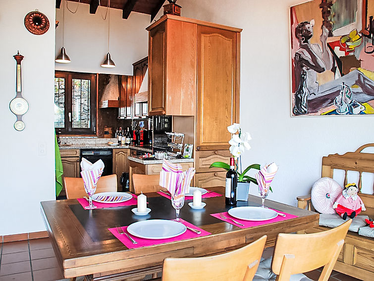 "Cas'Anita", apt 4 pièces 100 m2 sur 2 niveaux au 2ème étage, situation sud. Spacieux et clair, aménagement confortable et de bon goût: grand séjour/salle à manger ouvert avec cheminée, table pour les repas, TV (câblée), écran plat et radio. Sortie sur le balcon. 1 chambre double avec 1 lit double (160 cm, longueur 200 cm). Sortie sur la terrasse. Cuisine ouverte (four, lave-vaisselle, 4 plaques vitrocéramiques, cafetière électrique, Capsules pour machine à café (Nespresso) (NON INCLUSES)). Douche/WC. À l'étage inférieur: 1 chambre double avec 1 lit double (160 cm, longueur 200 cm). Sortie sur le balcon. 1 chambre avec 1 lit gigogne (2 pers. 2 x 90 cm, longueur 200 cm). Sortie sur le balcon. Bain/WC. Balcon, situation sud, petite terrasse. Mobilier de balcon. Superbe vue panoramique sur le lac, les montagnes, les alentours et la localité. A disposition: lave-linge, sèche-linge, fer à repasser, sèche-cheveux. Internet (Connexion WIFI, gratuit). Veuillez noter: logement non-fumeur. Maximum 2 animaux/chiens de petite taille autorisés. NL: IN ELABORAZIONE