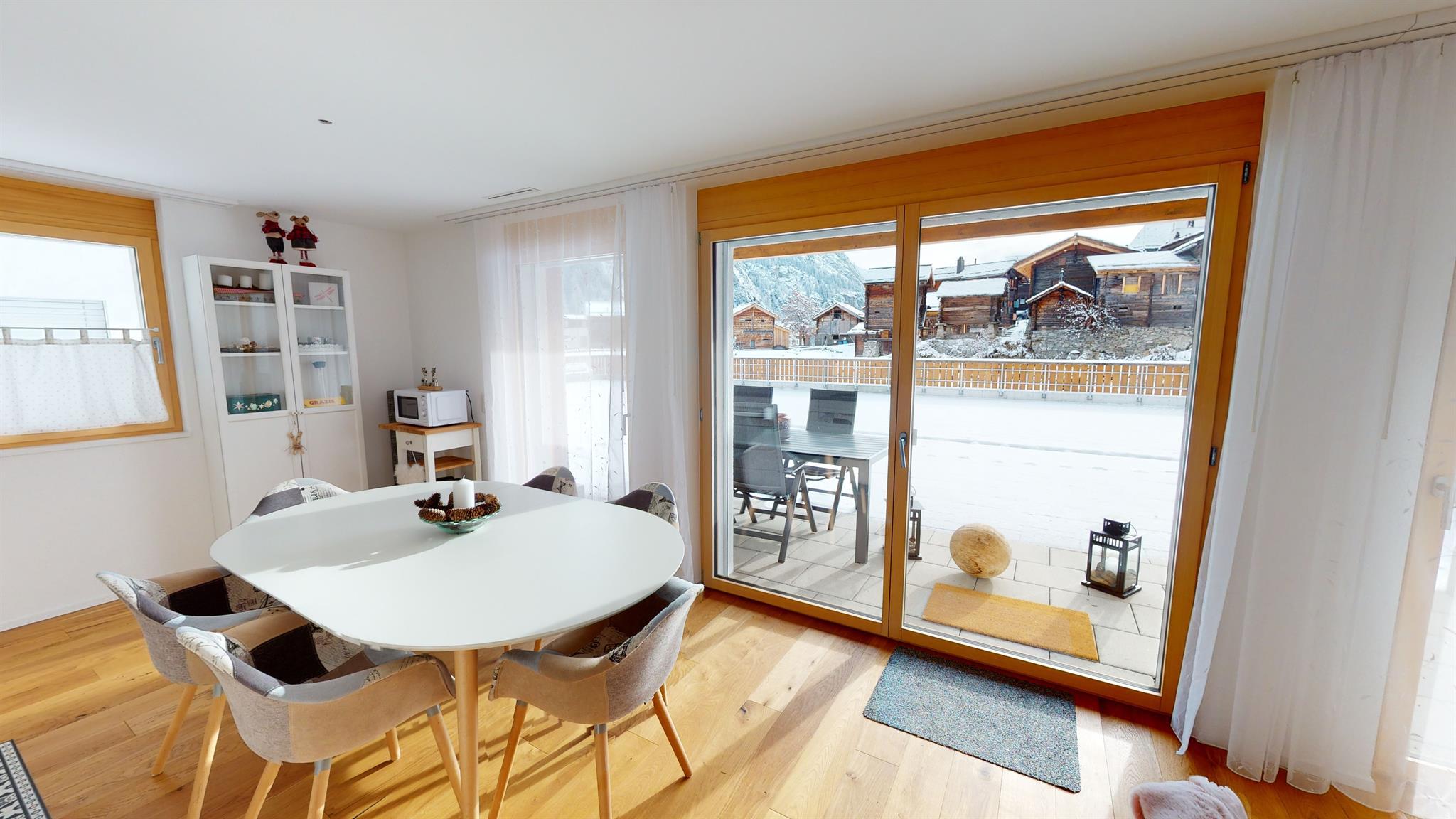 Standort: Ejia 139, im Dorfzentrum Blatten ca. 50m neben der Seilbahntalstation, sehr schöne Aussicht auf die Viertausender der Mischabelgruppe und das alte Dorf Blatten
