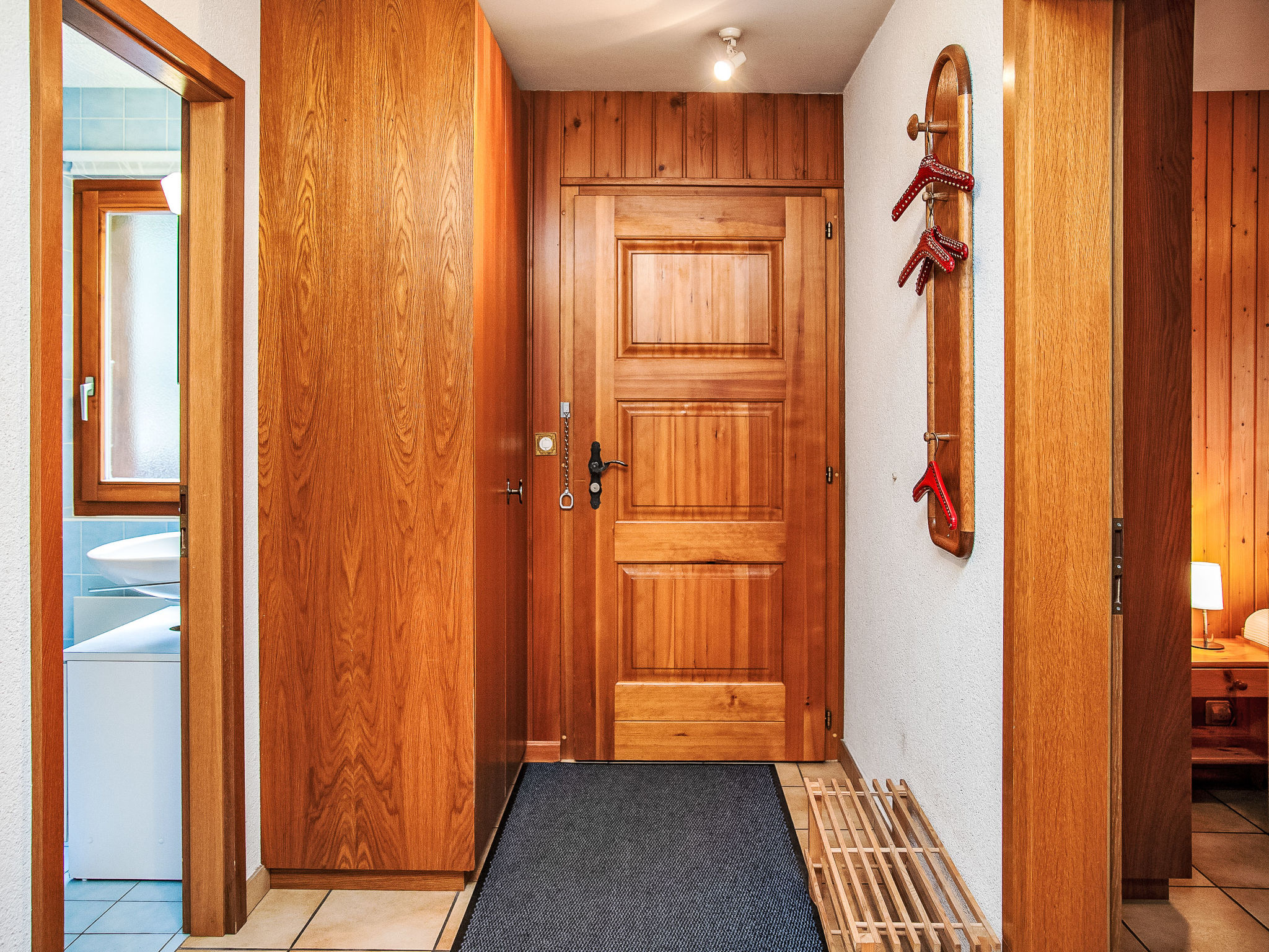 Résidence accueillante "Roc Lyv", de 3 étages. Dans le quartier de Biolles, dans une impasse, orientée sud-ouest. Infrastructures de la Maison: ping-pong, baby foot, lave-linge, sèche-linge, étendoir à linge. Accès en voiture jusqu'à la maison. En hiver, merci de prévoir des chaînes. Magasin d'alimentation 1.2 km, restaurant 500 m, café, arrêt de bus "Transformateur" 900 m, centre thermal 500 m. Terrain de golf (18 trous) 25 km, tennis 500 m, remontées mécaniques 1.9 km. Arrêt du ski-bus 100 m, école de ski 1.2 km, ski de fond 2.5 km. Veuillez noter: voiture recommandée. Équipement pour bébés sur demande (en sus). Ski-bus gratuit. Service de navette gratuite desservant le domaine skiable d'Ovronnaz.