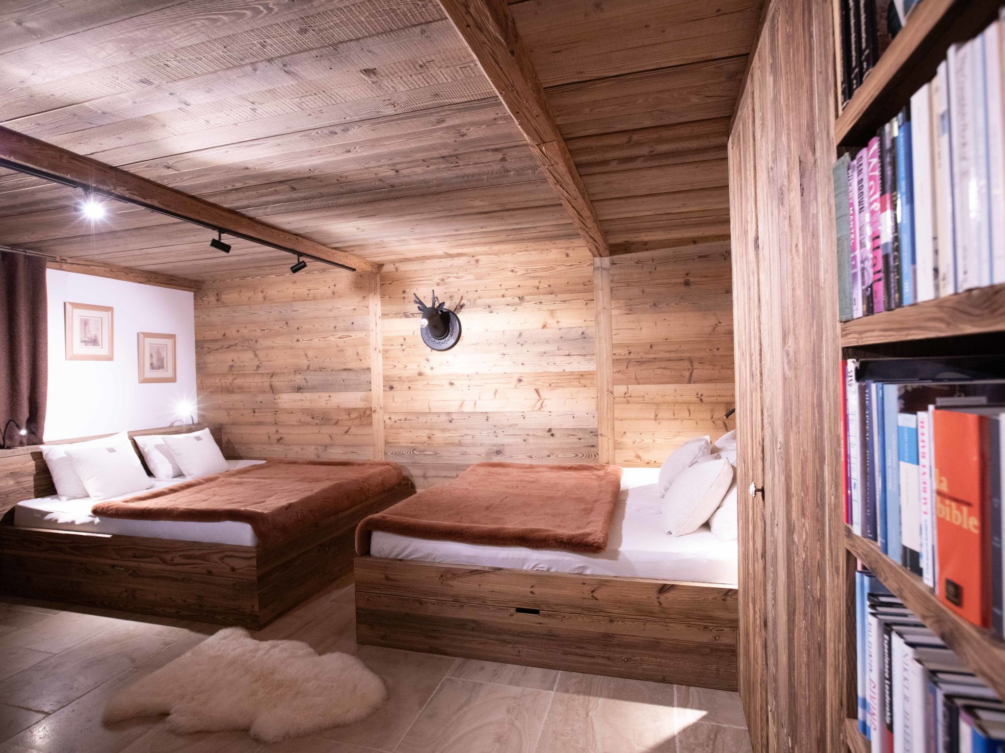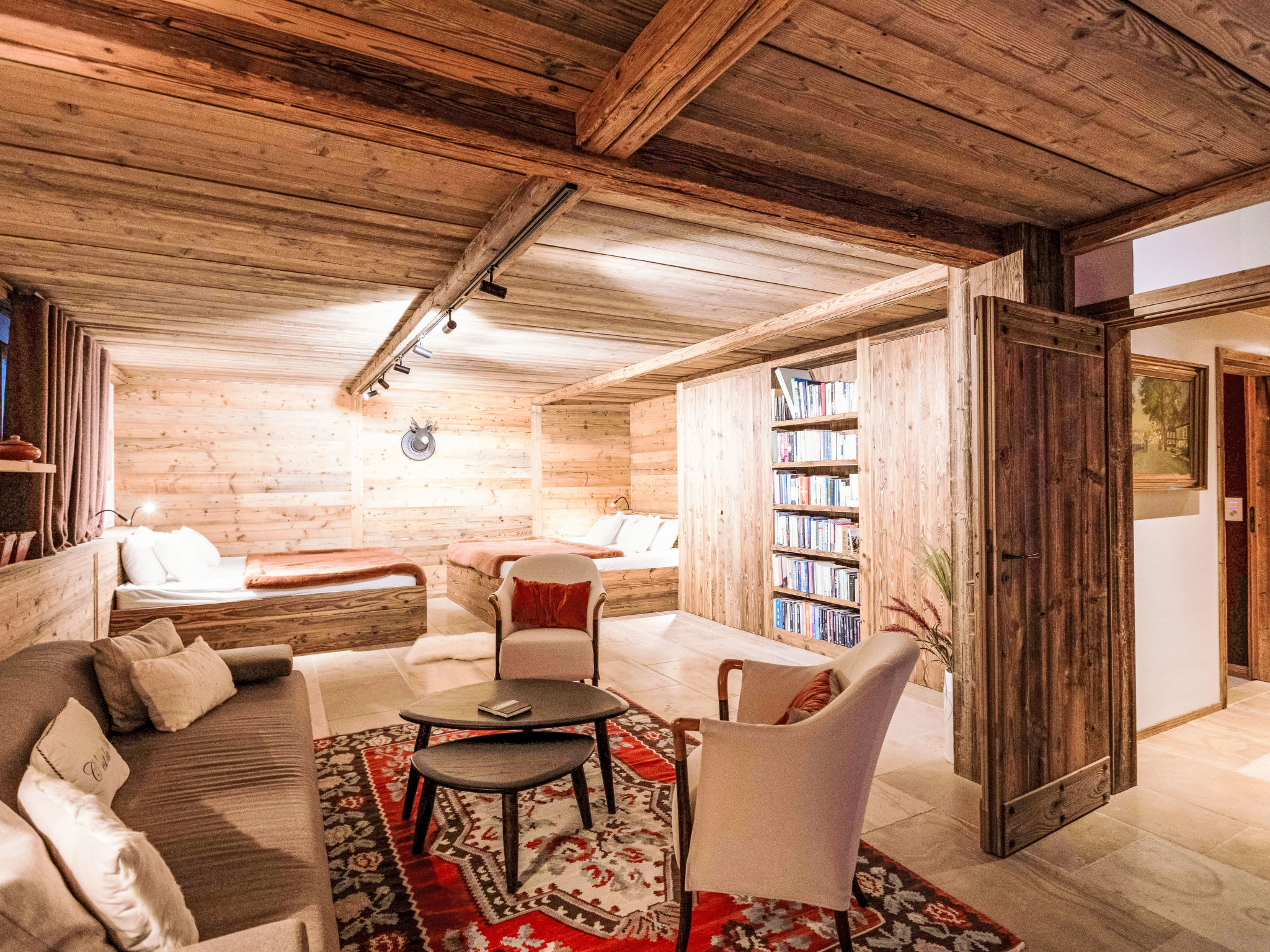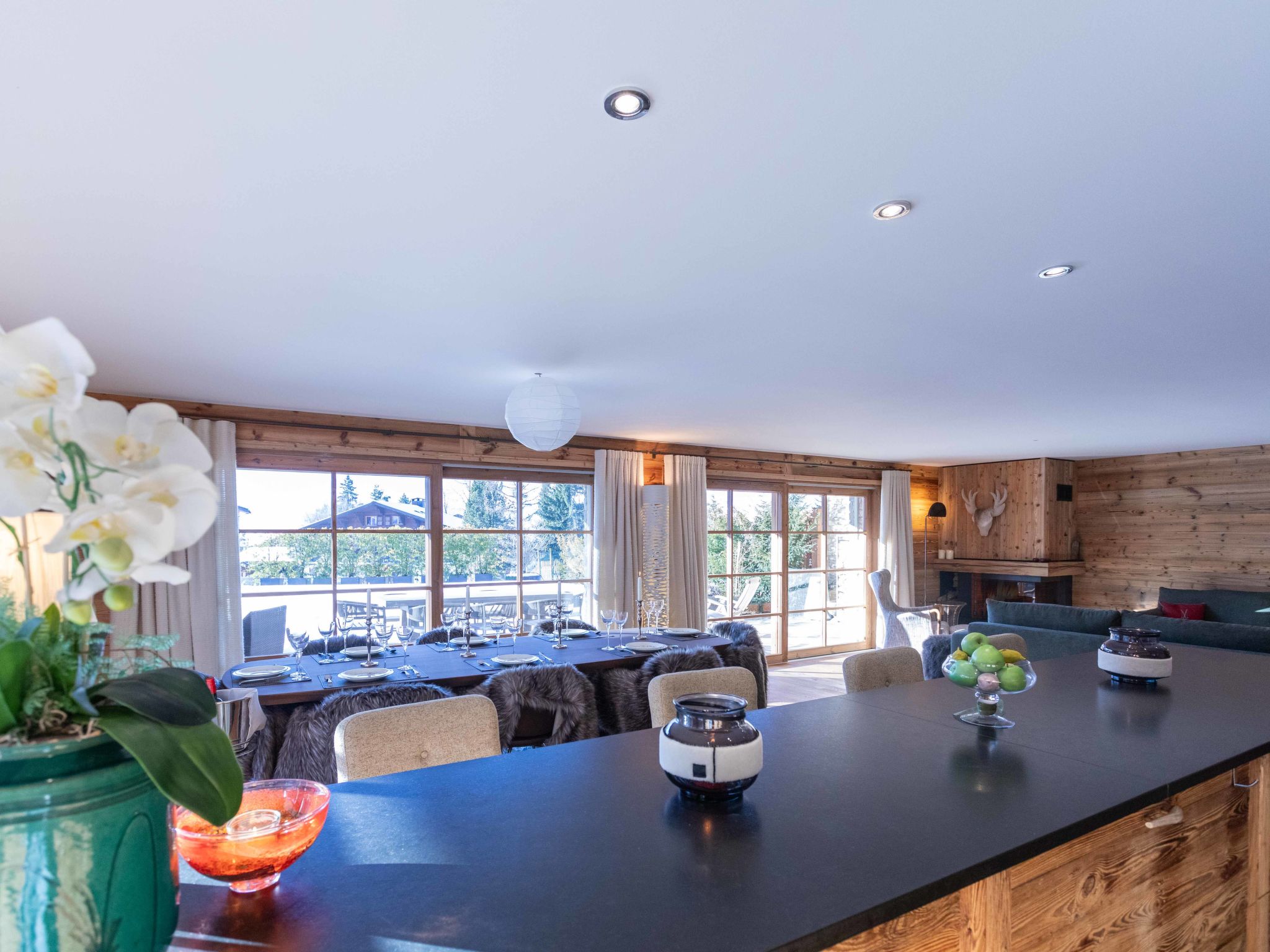 "Domaine du Roc 1 /2", apt 6 pièces 280 m2 sur 2 niveaux, au rez-de-chaussée, situation sud. Logement idéal pour 6 adultes + 4 enfants. Spacieux, aménagement luxueux et de bon goût: grand séjour/salle à manger avec cheminée, table pour les repas, bain à remous et TV (écran plat). Sortie sur le jardin, orientée sud. 1 chambre avec 1 grand-lit (1 x 180 cm, longueur 200 cm), douche/WC. Sortie sur le jardin, orientée est. 1 chambre avec 1 grand-lit (1 x 180 cm, longueur 200 cm), bain/douche/WC. Sortie sur le jardin, orientée est. 1 chambre avec 1 grand-lit (1 x 180 cm, longueur 200 cm), douche/WC. Cuisine ouverte (lave-vaisselle, 4 plaques à induction, grille-pain, bouilloire électrique, micro-ondes, congélateur, cafetière électrique, Capsules pour machine à café (Nespresso) (NON INCLUSES), ilot de cuisine). WC séparé. À l'étage inférieur: 1 chambre avec 2 grands-lits (2 x 180 cm, longueur 200 cm). Grande salle de jeux avec Home cinéma. Douche/WC. Grand jardin, situation sud et situation est. Meubles de terrasse. Belle vue sur les montagnes. A disposition: lave-linge, sèche-linge, sauna, lit bébé. Internet (Connexion WIFI, gratuit). Place de parking No 4 (1 Voiture). Veuillez noter: logement non-fumeur.