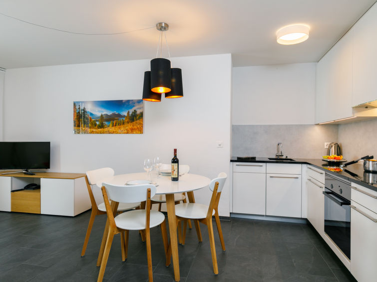 Petite résidence accueillante "Residenza Chesa Margun", 1'815 m au dessus du niveau de la mer, environnée par les arbres et prés. 7 maisons dans la résidence. Dans le quartier de Surlej, situation tranquille, ensoleillée, surélevée sur un versant, à 5 m de la forêt, à 1 km du lac, à 200 m du domaine skiable, dans une impasse, orientée sud. En commun: pré. Espace de jeux pour les enfants (toboggan, balançoire). Infrastructures de la résidence: réception, restaurant, bar, Connexion WIFI, ascenseur, réduit pour bicyclettes, local pour les skis, chauffage central, lave-linge (en sus), sèche-linge (en commun, en sus). Service boulangerie. Accès en voiture jusqu'à la maison. En hiver 4x4 recommandé. Garage en commun. Dimension: hauteur 203 cm. Borne de recharge électrique. Magasins 2 km, boulangerie 250 m, location de bicyclettes 100 m, arrêt de bus "Surlej Foppas" 210 m, centre thermal "Samedan" 14 km. Terrain de golf (8 trous) 7 km, ecole de surf 3 km, tennis 3 km, centre sportif 3 km, chemins de randonnées pédestres depuis la maison 100 m, téléphérique 500 m, téléski, télésiège 200 m, location de ski 100 m. Arrêt du ski-bus 20 m, école de ski, école de ski d'enfants, ski de fond 200 m, patinoire 3 km. Les domaines skiables de renommée sont facilement accessibles: Corvatsch 500 m. Les lacs connus sont facilement accessibles: Silvaplanasee 1 km. Région de randonnées: Panoramaweg 1 km, Via Engiadina 1 km. Veuillez noter: possibilité de pêche (autorisation nécessaire). Ski-bus gratuit. Service de navette gratuite desservant le domaine skiable Silvaplana-Surlej-Corvatsch Bahn. Veuillez noter: D’autres appartements sont également proposés à la location dans cette maison de vacances. La propriété référencée CH7513.600 est située sur le même terrain. Toutes les maisons/appartements sont aménagés individuellement. La résidence se situe à environ 100m sous le train de Corvatsch. Les appartements côté Sud ont la vue sur les montagnes, les appartements côté Nord ont la vue sur la forêt. Salle de jeux avec différents jeux pour les enfants de différents âges. Vous avez la possibilité de louer l'appartement à partir de 3 jours (en dehors de la haute saison). Nous proposons : prix spécial pour le SPA à Samedan. Renseignements supplémentaires à la réception. Vendredi soir : ski pendant la Covratsch-Snownight (piste illuminée). Forfait (en sus) nécessaire. La maison dispose d'une station de chargement pour voitures électriques.