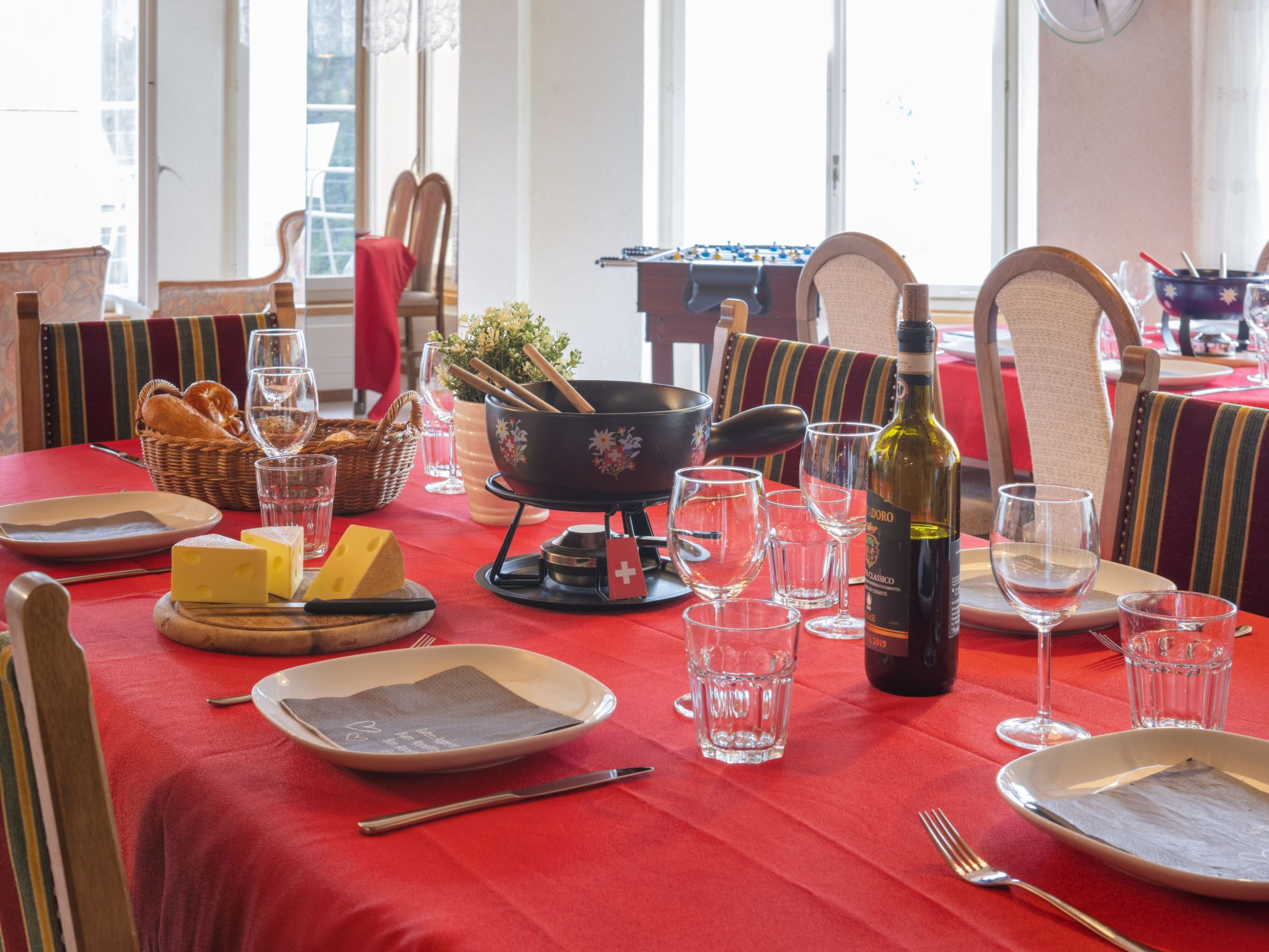 "Bristol Apt.A", apt 4 pièces 160 m2, rez-de-chaussée surélevé. Spacieux et clair, aménagement confortable et plaisant: grand séjour/salle à manger avec TV (câblée) et écran plat. Sortie sur le balcon. 1 chambre avec 1 lit double (2 x 90 cm, longueur 190 cm). 1 grande chambre avec 2 lits (90 cm, longueur 190 cm), 1 lit double (120 cm, longueur 200 cm). 1 grande chambre avec 4 lits (90 cm, longueur 200 cm). Grande cuisine ouverte (4 plaques vitrocéramiques, grille-pain, bouilloire électrique, micro-ondes, cafetière électrique, Capsules pour machine à café (Nespresso) (NON INCLUSES), appareil à raclette, service à fondue (fondue au fromage)) avec bar. Bain/WC, douche/WC. Moquette. Petit balcon. Mobilier de balcon. Superbe vue panoramique sur les montagnes. A disposition: lave-linge, sèche-linge, fer à repasser, chaise haute pour enfant, lit bébé jusqu'à 2 ans (en sus), sèche-cheveux. Internet (Connexion WIFI, gratuit). Veuillez noter: adapté(e) aux familles. Logement non-fumeur.